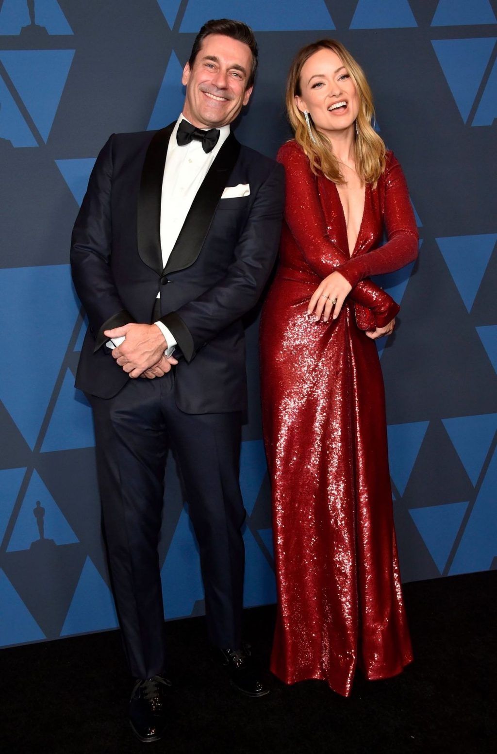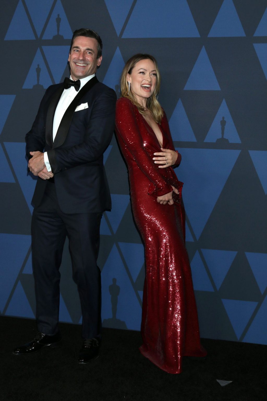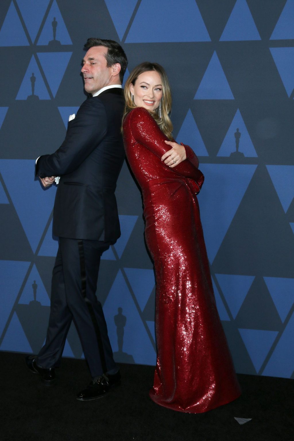 L’actrice Olivia Wilde éblouit dans une robe rouge moulante avec un décolleté plongeant en dînant avec des amis au Chateau Marmont à Hollywood, le 28/10/2019.