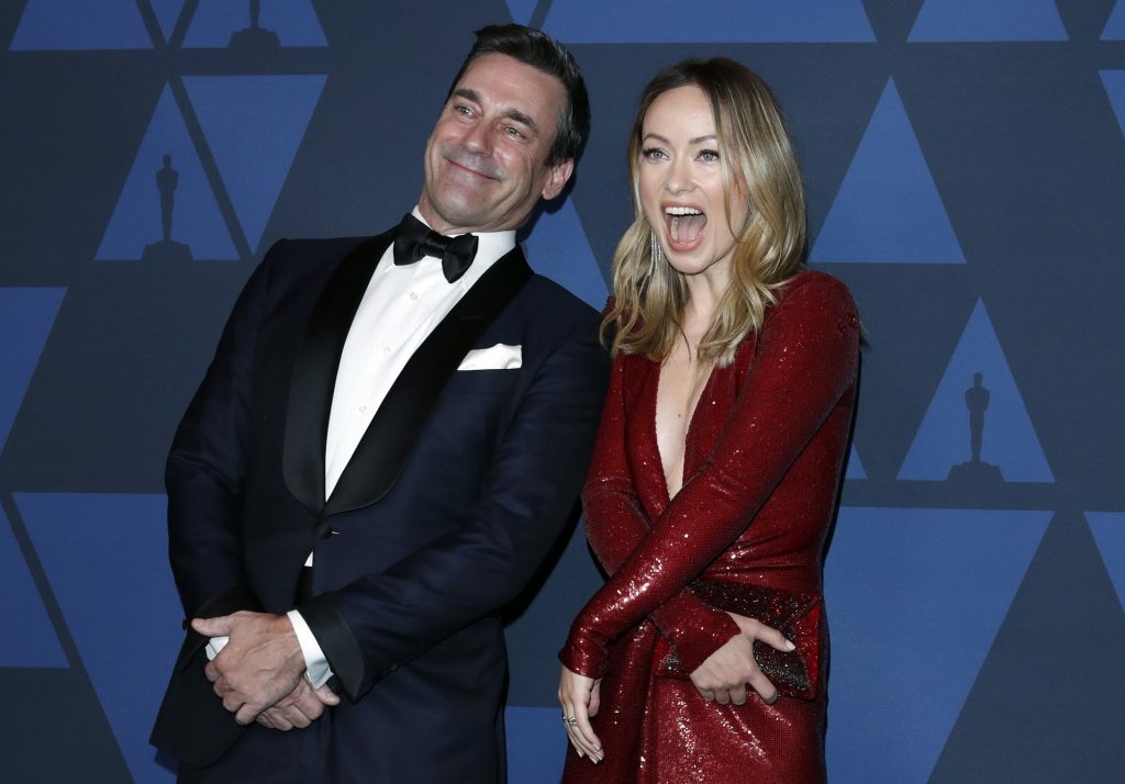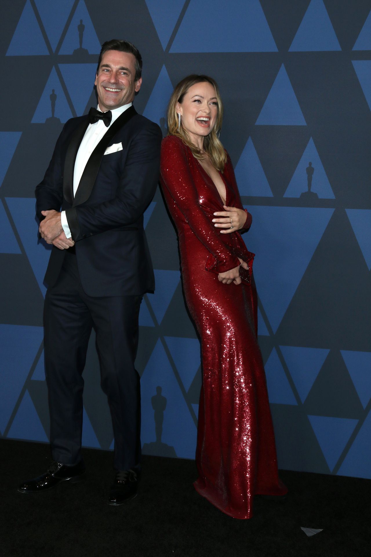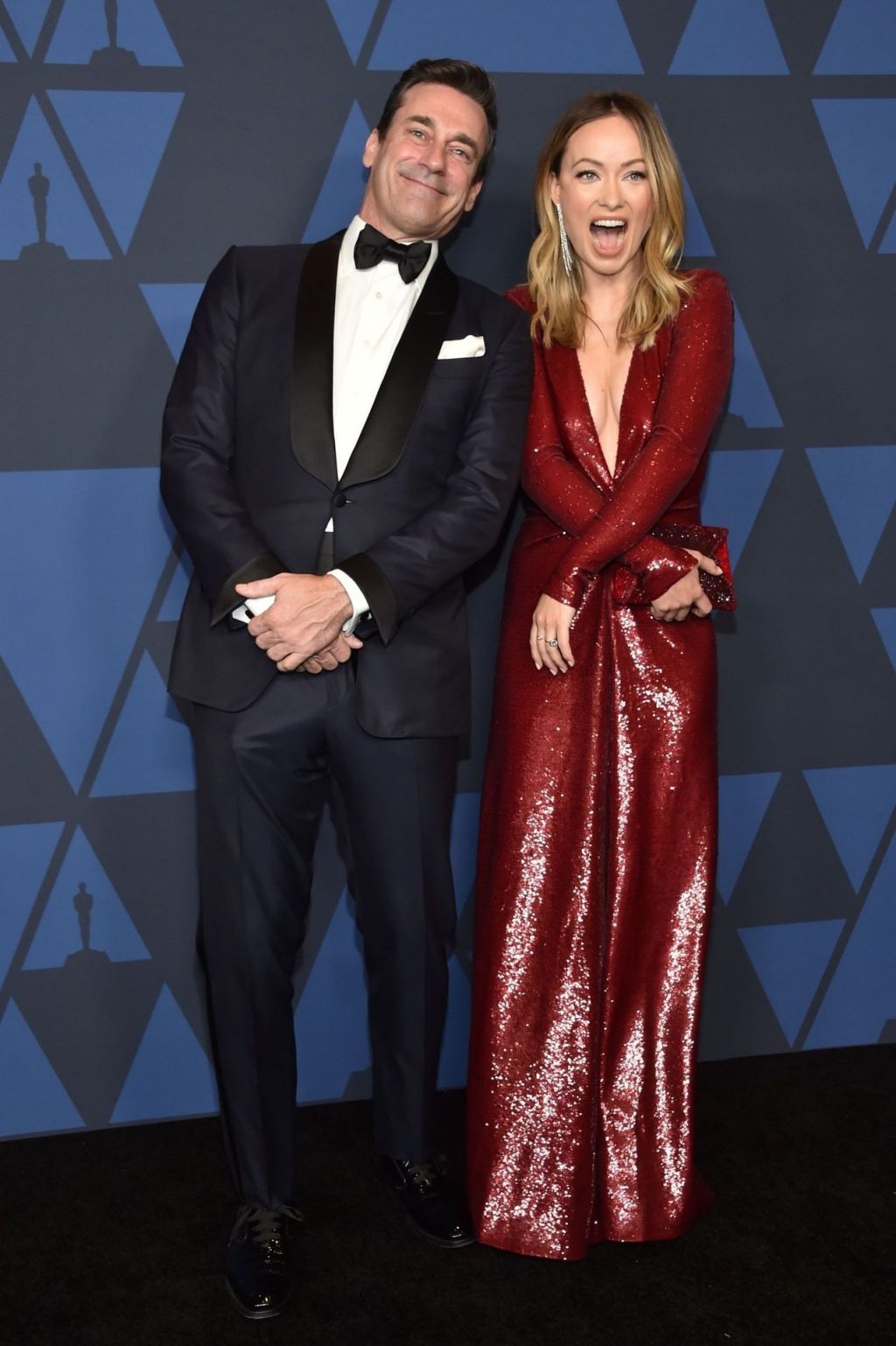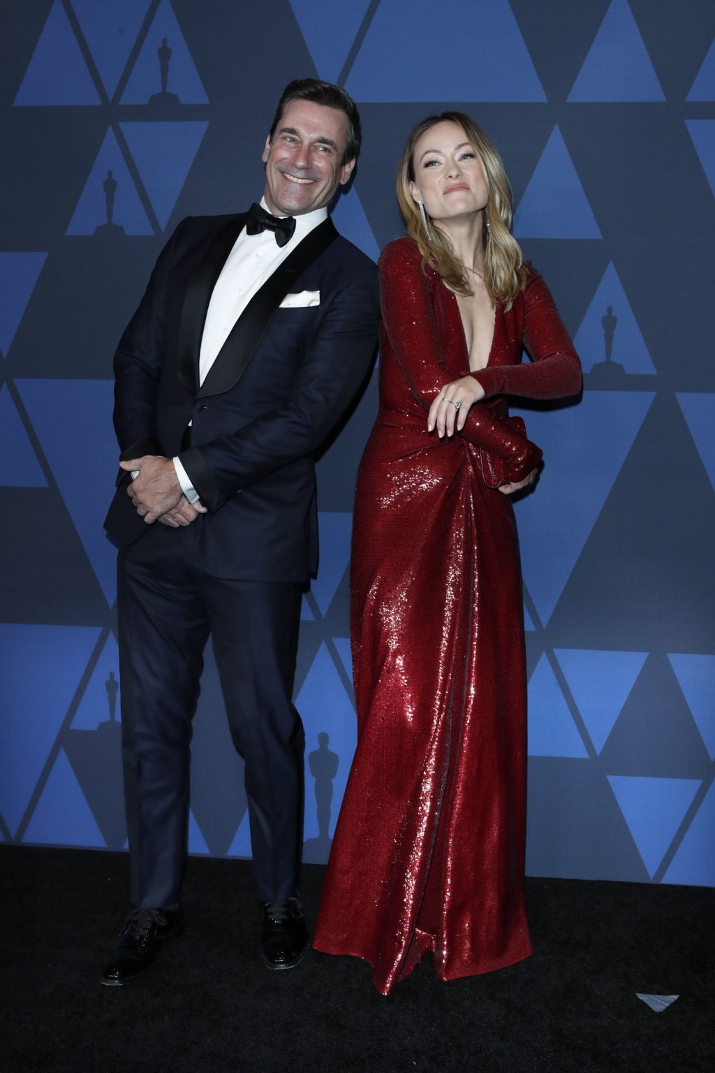 L’actrice Olivia Wilde éblouit dans une robe rouge moulante avec un décolleté plongeant en dînant avec des amis au Chateau Marmont à Hollywood, le 28/10/2019.