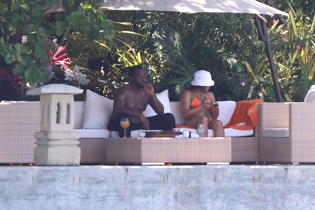 Diddy, 50 ans, semblait fumer une cigarette roulée pendant cette journée de détente au soleil. Diddy a rompu avec Lori, la fille de Steve Harvey, en octobre après trois mois de relation.