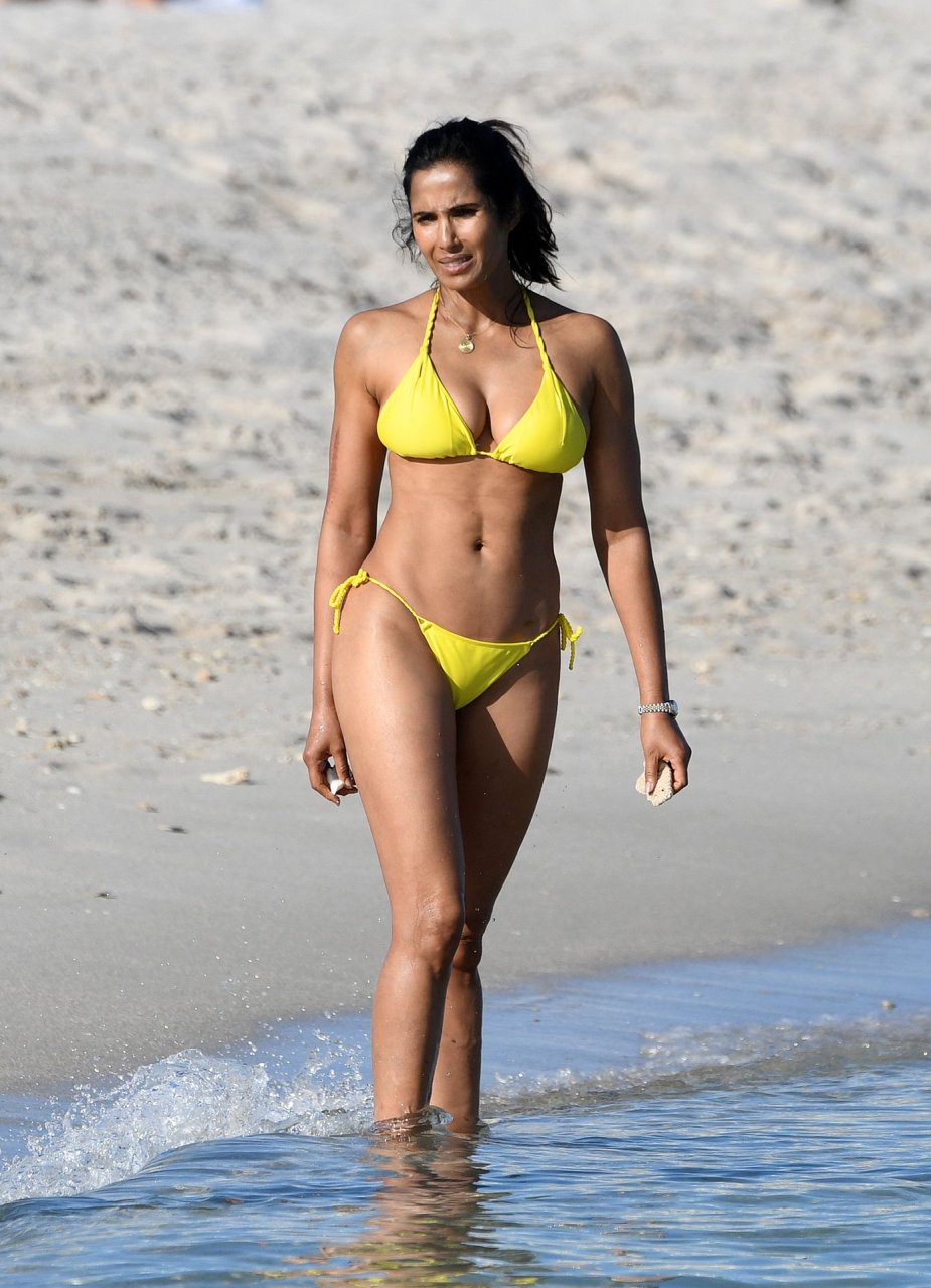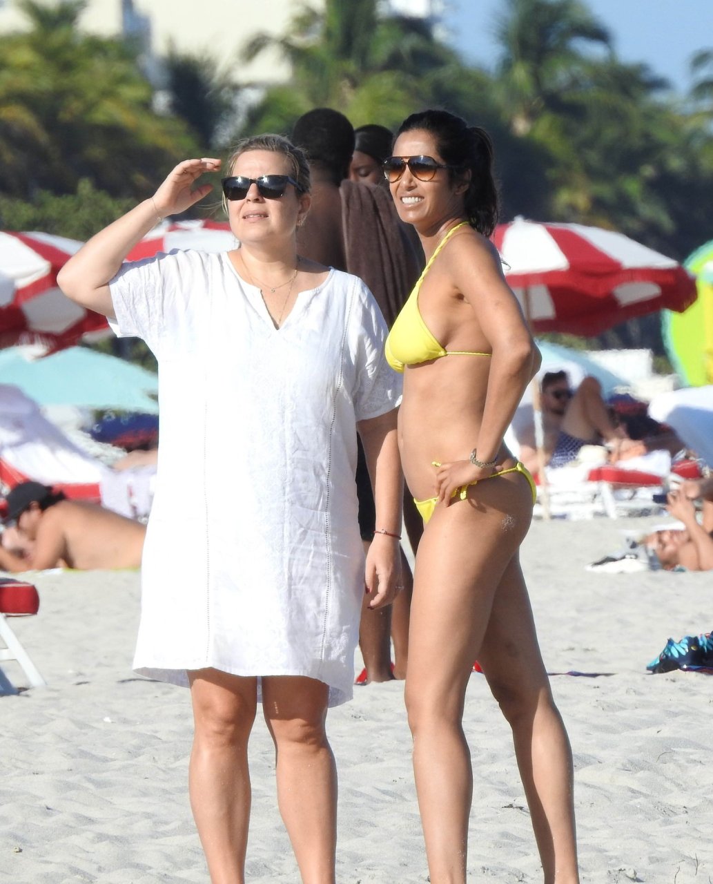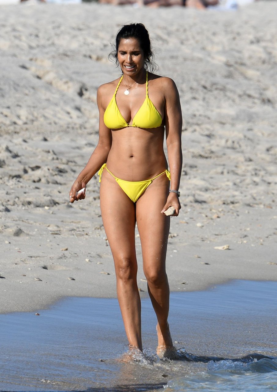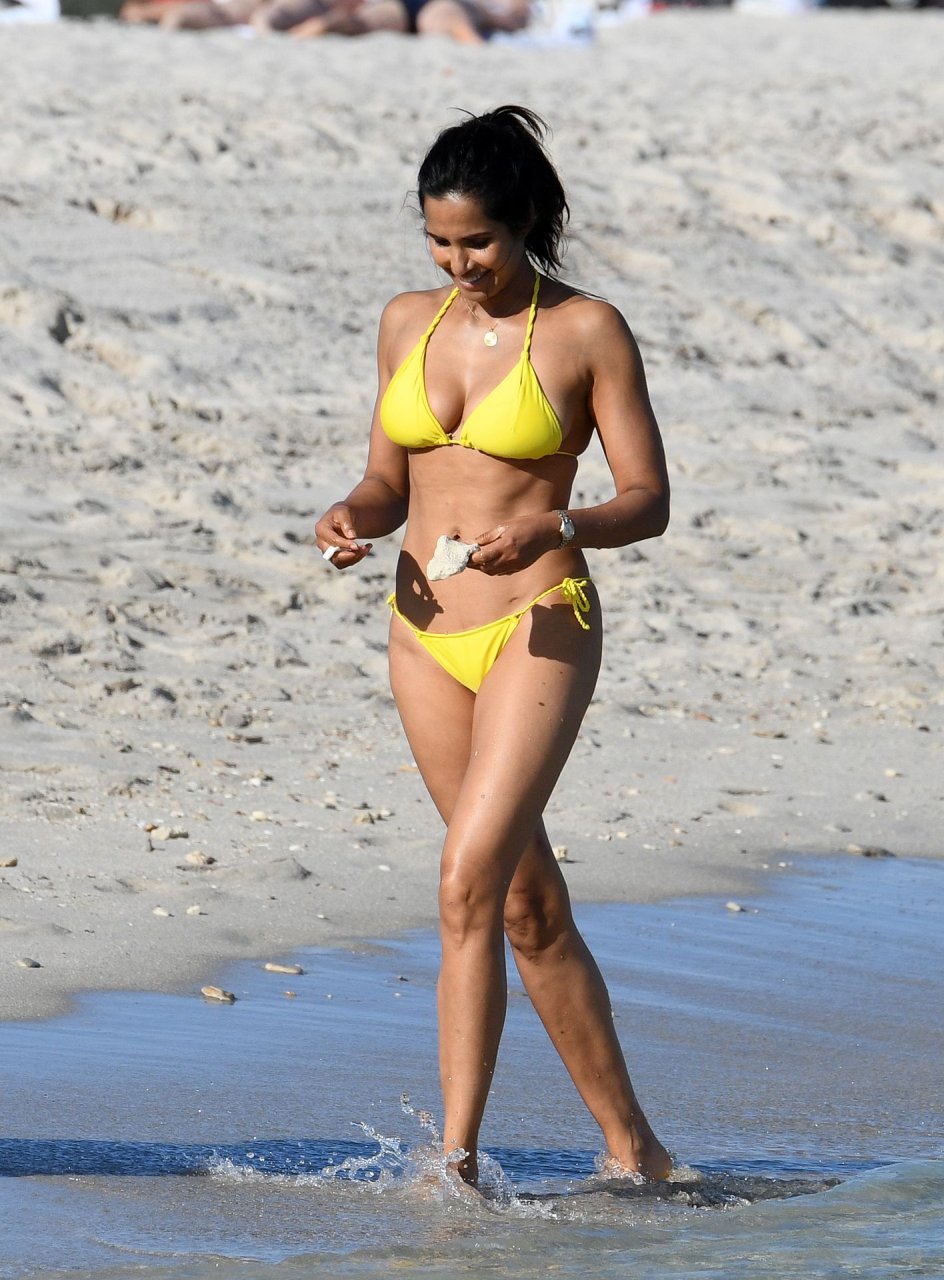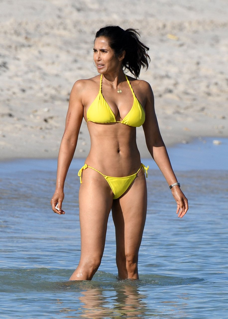 Modèle, actrice et animatrice TV, Padma Lakshmi exhibe son corps fantastique en bikini tout en se baignant dans l’océan lors de vacances à Miami, le 01/05/2019. La star du réseau TV de 48 ans portait un bikini jaune vif qui mettait en valeur ses courbes alors qu’elle gambadait et riait avec une amie avant de se diriger vers une cabane VIP pour un peu d’ombre et de repos.