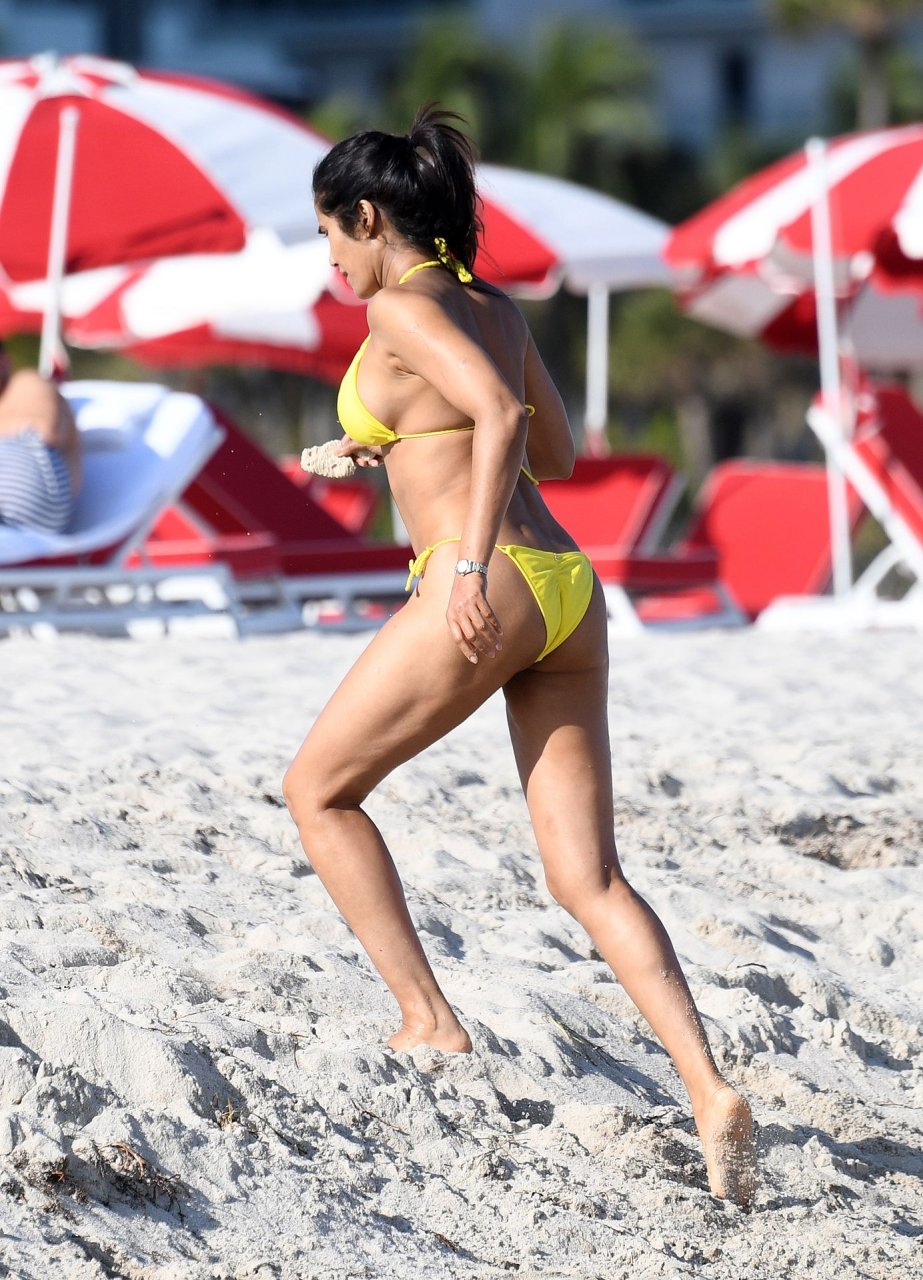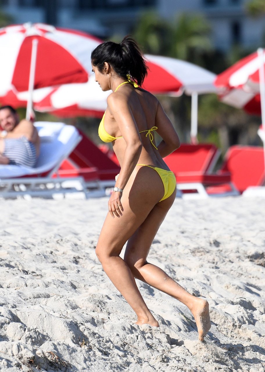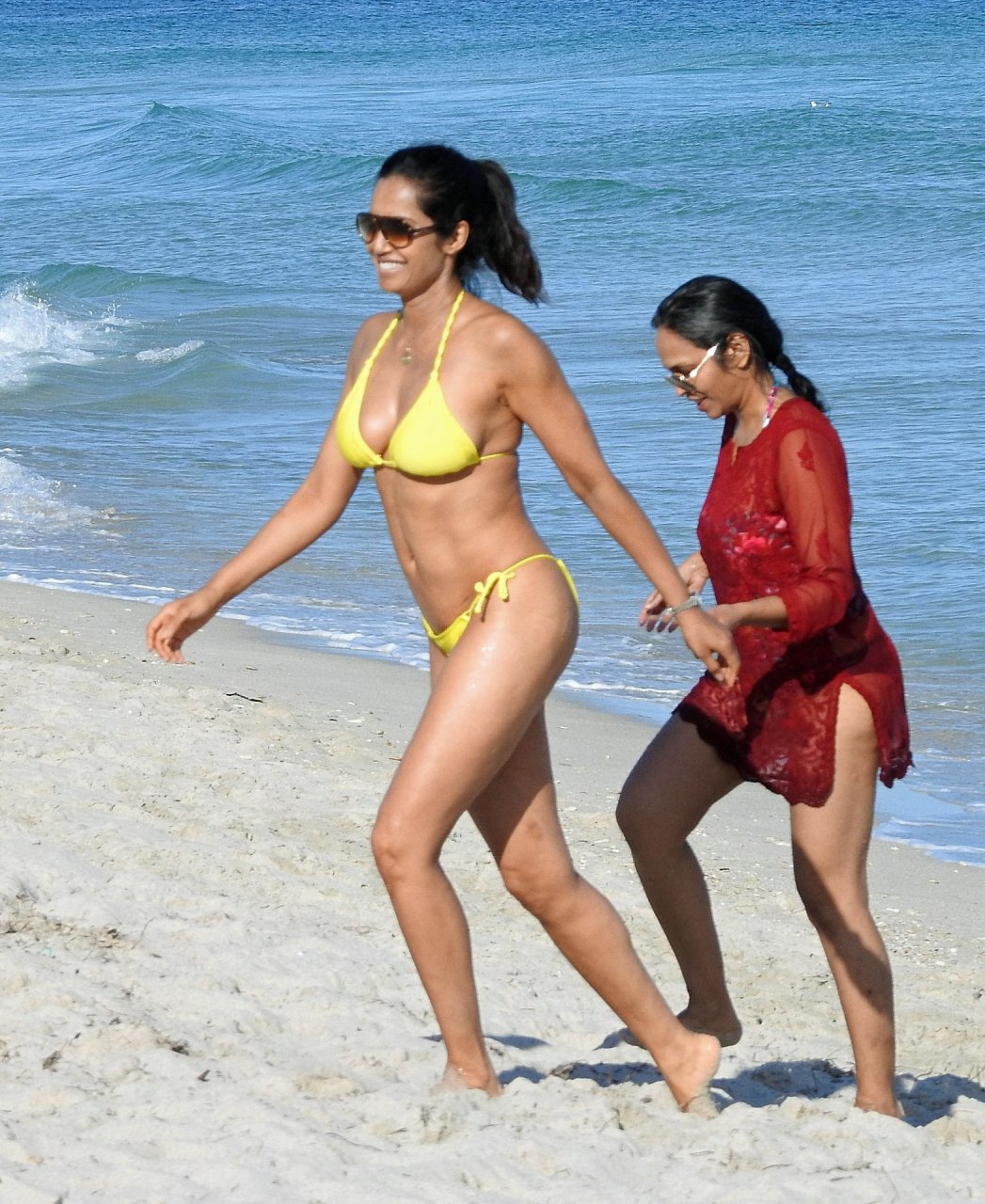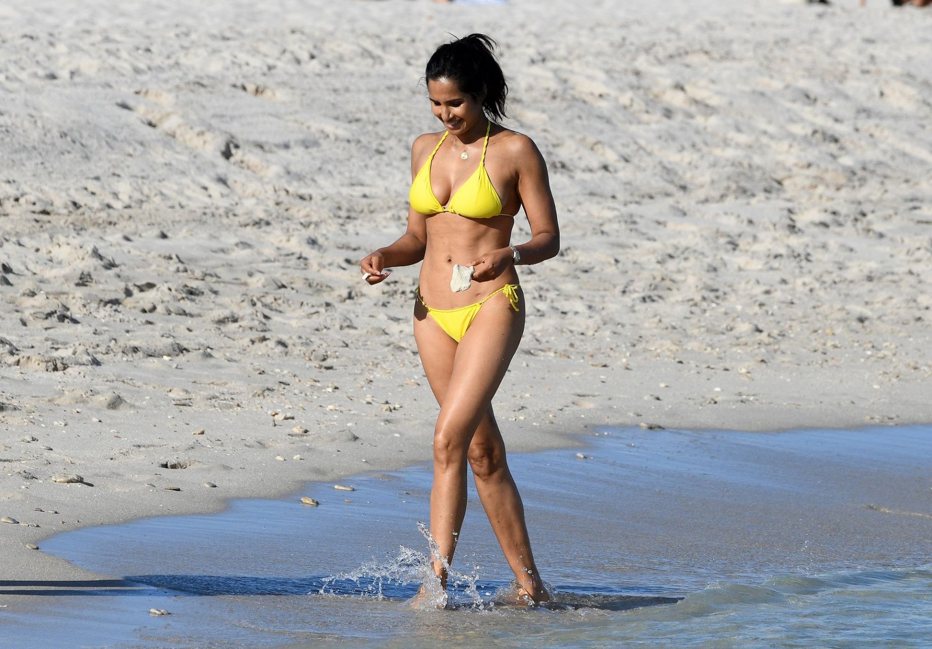 Modèle, actrice et animatrice TV, Padma Lakshmi exhibe son corps fantastique en bikini tout en se baignant dans l’océan lors de vacances à Miami, le 01/05/2019. La star du réseau TV de 48 ans portait un bikini jaune vif qui mettait en valeur ses courbes alors qu’elle gambadait et riait avec une amie avant de se diriger vers une cabane VIP pour un peu d’ombre et de repos.