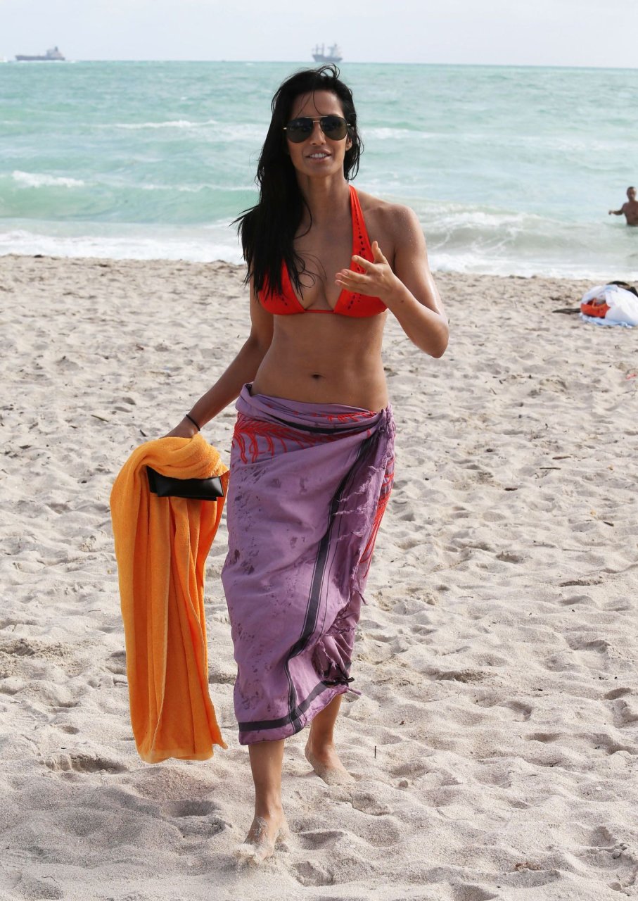 Padma Lakshmi a été vue en bikini orange profitant d’une journée à la plage à Miami, le 12/08/2013. Bien sûr, toutes les femmes indiennes ne correspondent pas à l’idéal de beauté, mais Padma Lakshmi est l’une des femmes les plus sexy. Malgré son âge, elle est tout simplement magnifique, et le bikini met parfaitement en valeur sa silhouette.
