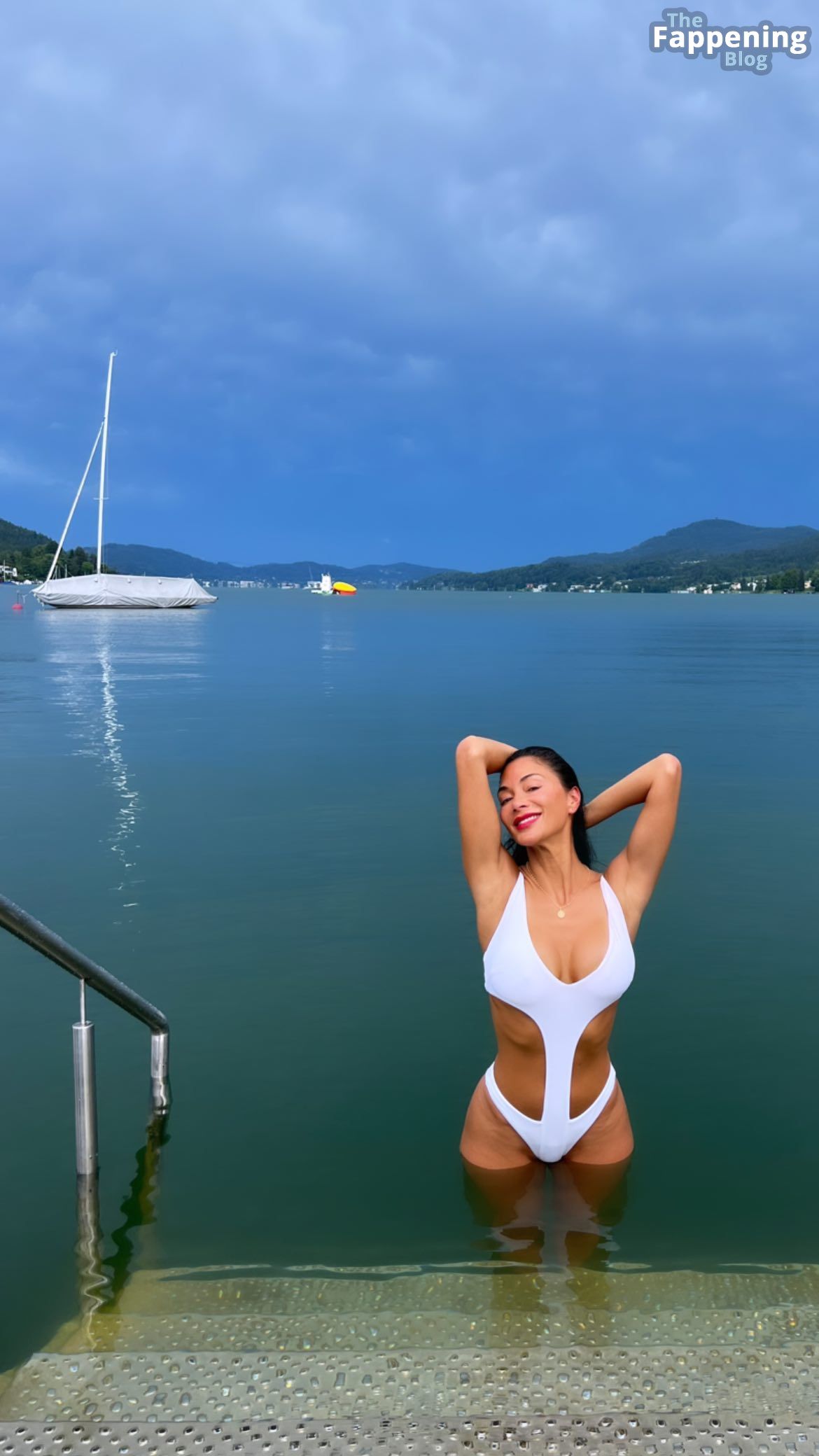 La star du Fappening Nicole Scherzinger éblouit en maillot de bain blanc montrant sa belle silhouette pendant ses vacances.