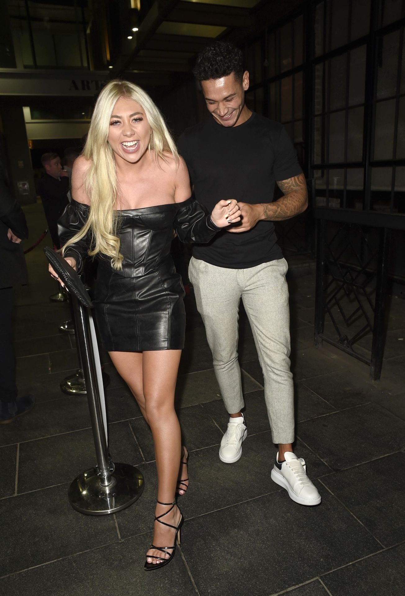 Les gagnants de l’hiver de “Love Island”, Paige Turley et Finley Tapp, profitent d’une soirée en tête-à-tête au Peter Street Kitchen dans le centre-ville de Manchester, le 03/05/2020.