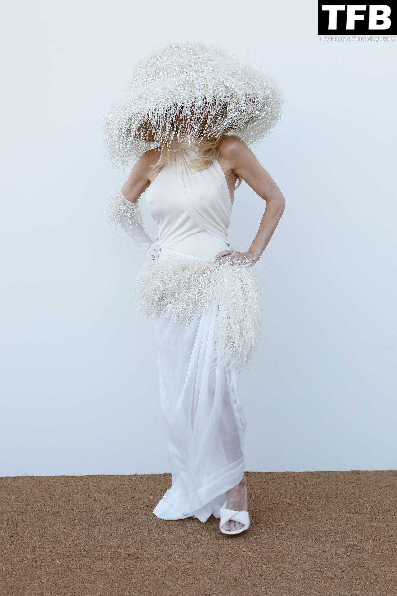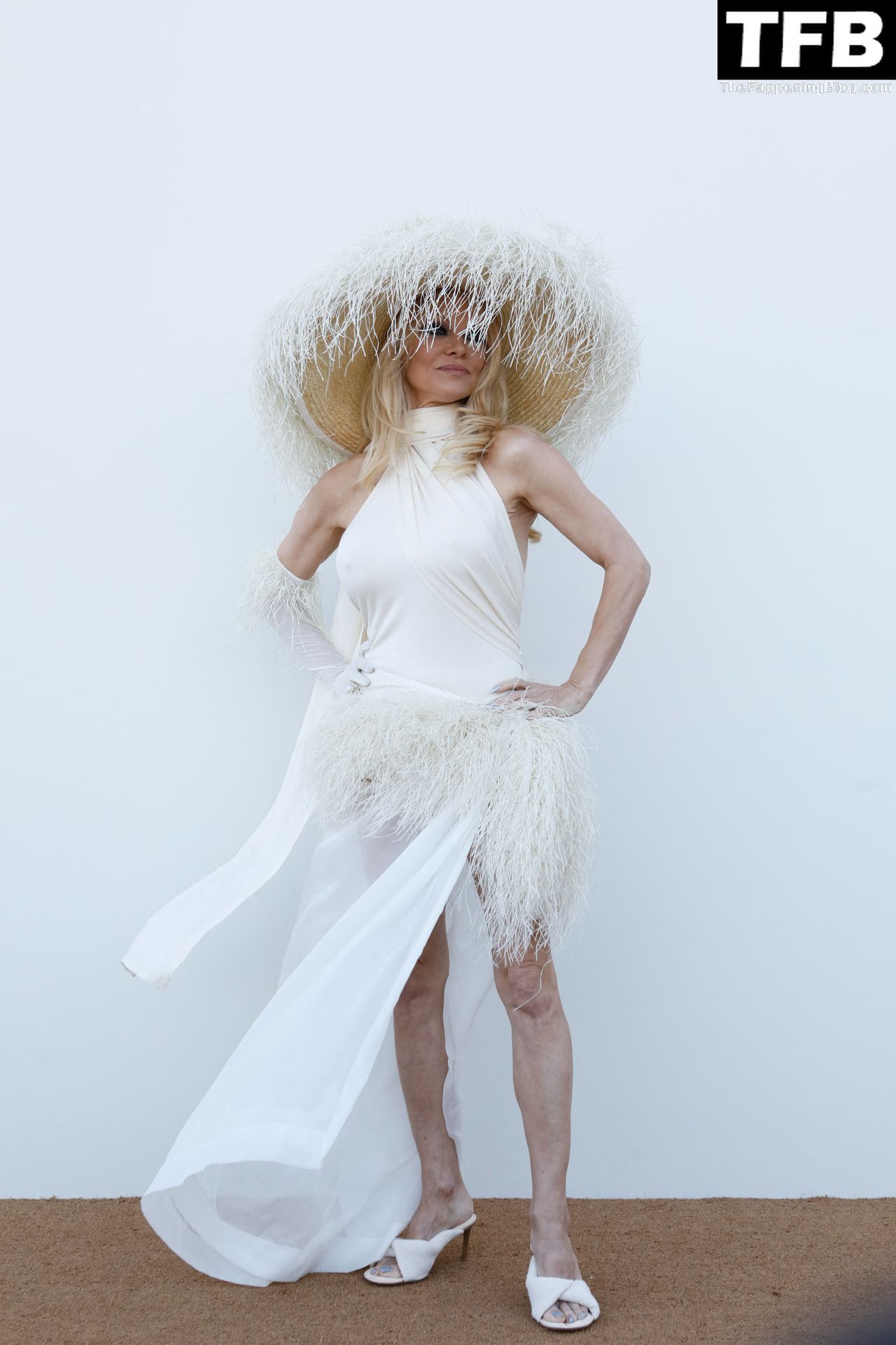 L’actrice et mannequin américaine Pamela Anderson (55 ans) assiste au défilé “Le Raphia” de Jacquemus à Le Bourget, France, le 12/12/2022.