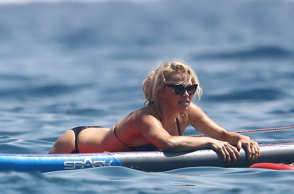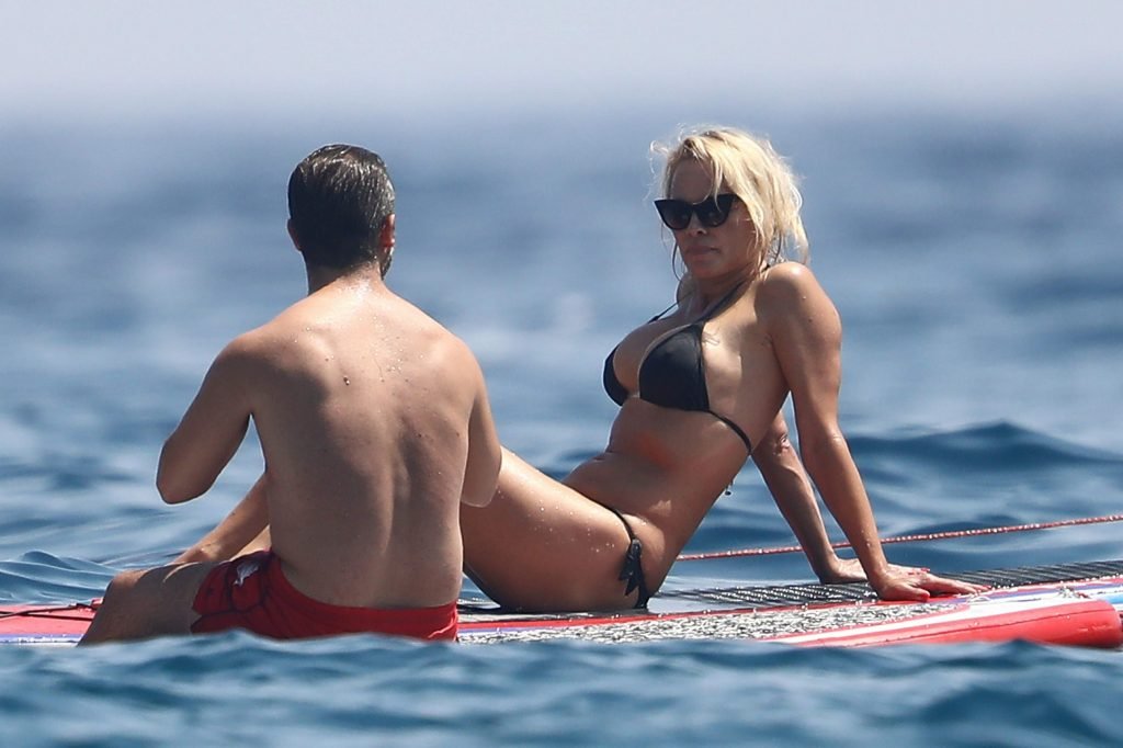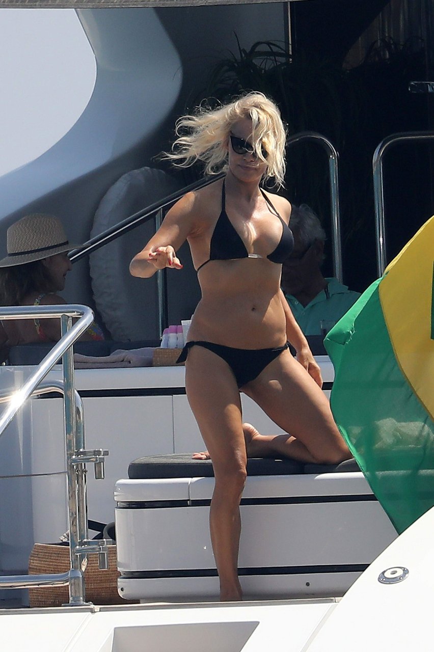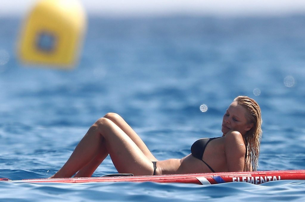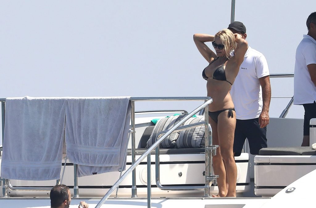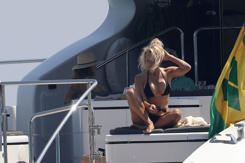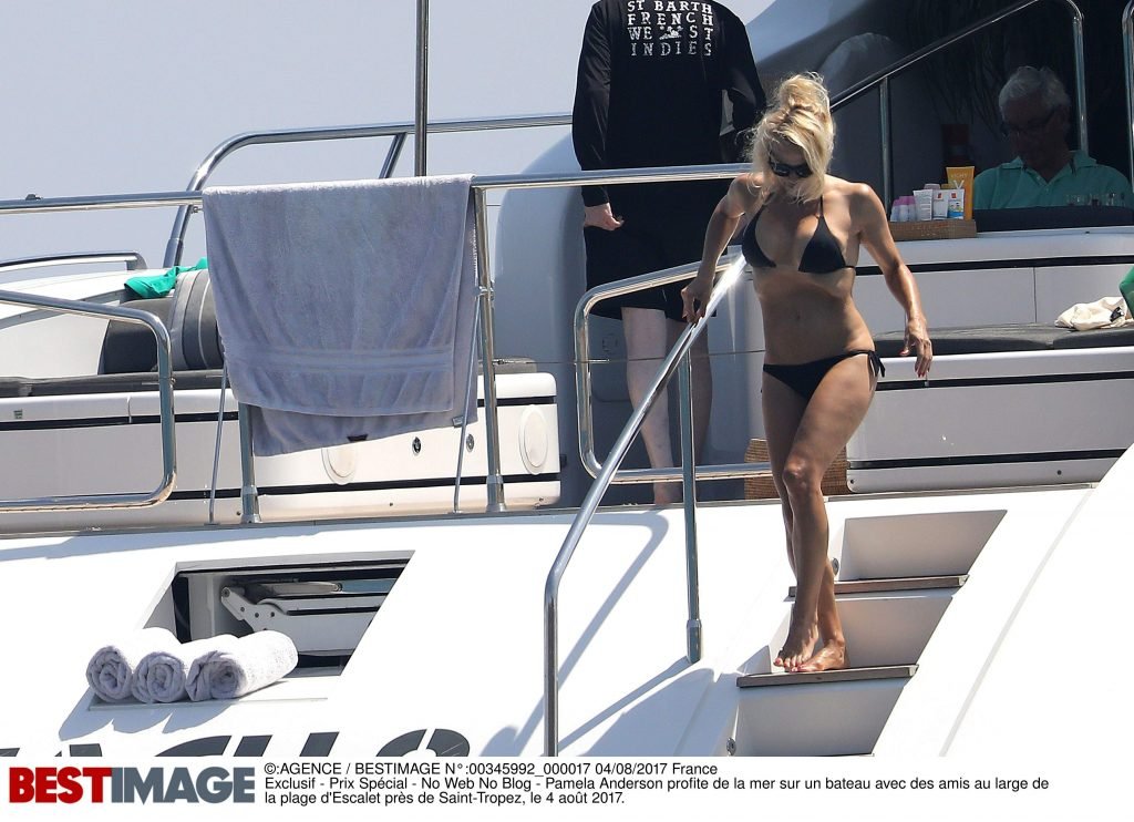 Pamela Anderson montre son corps chaud dans un bikini noir en vacances en France, 04/08/2017. Pamela Anderson est une actrice canado-américaine (Alerte à Malibu, 2017), mannequin, activiste. Âge – 50.