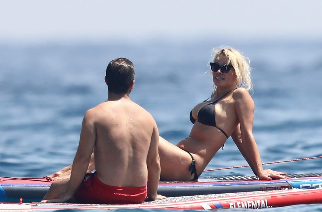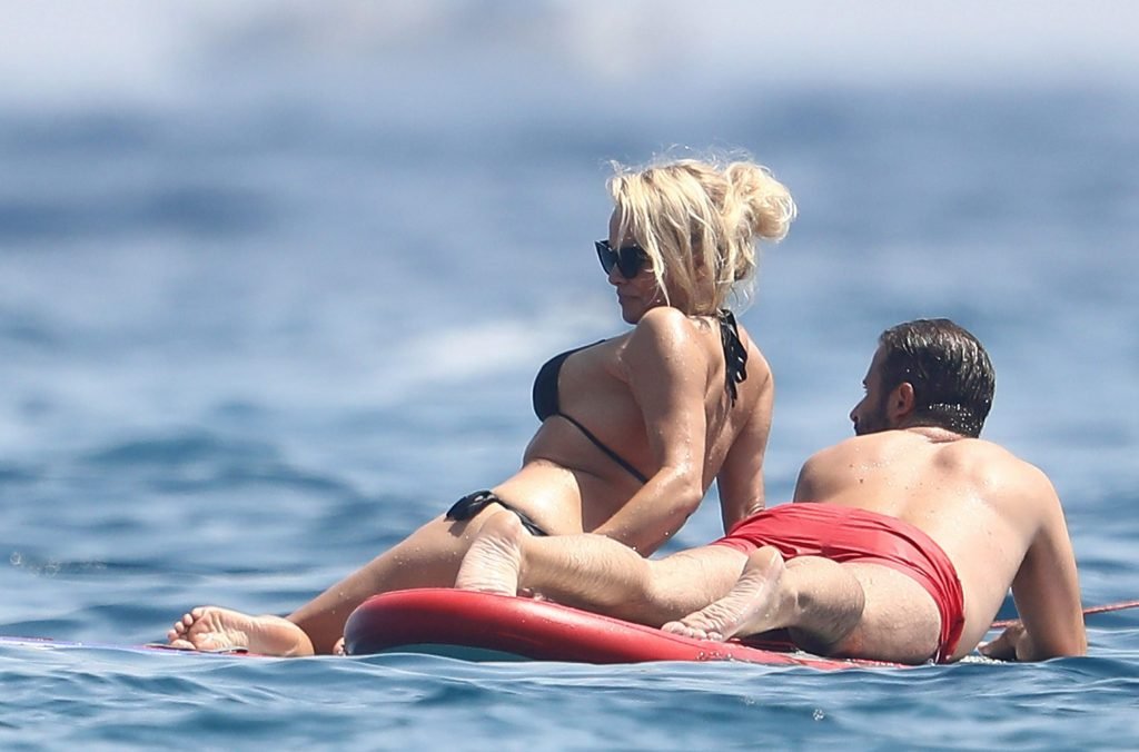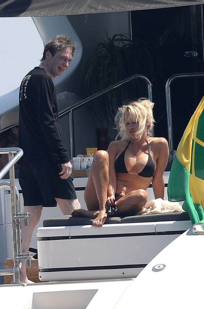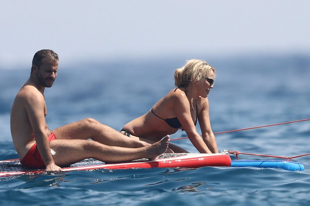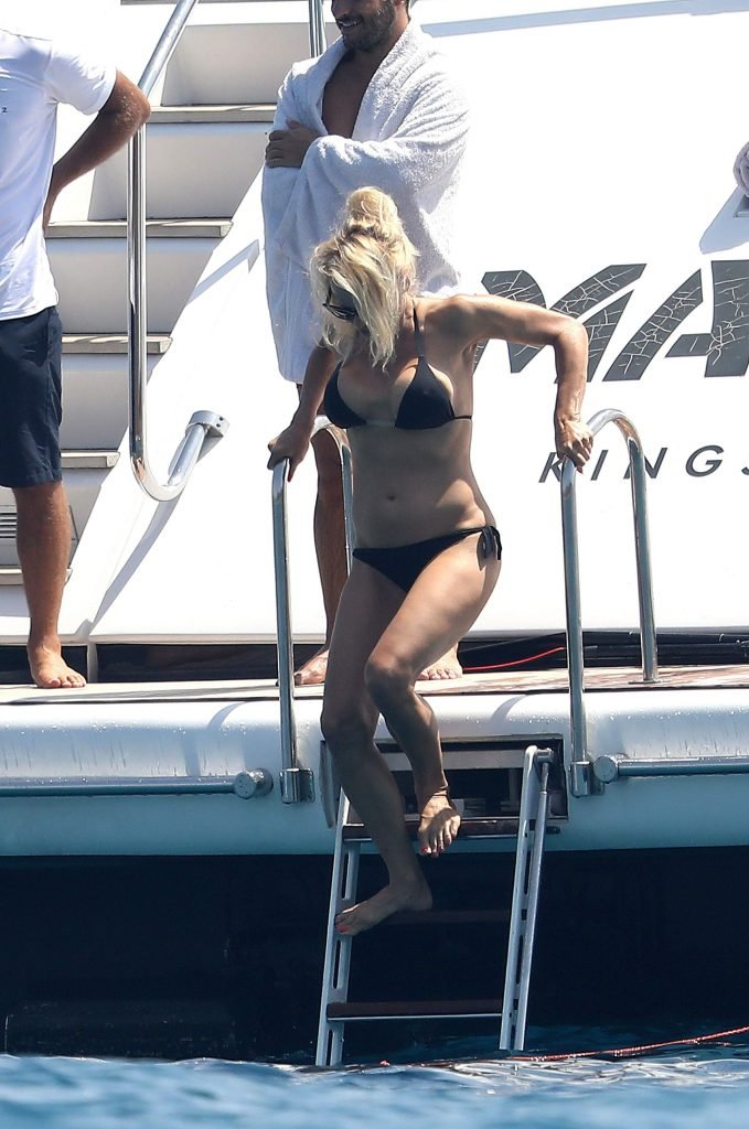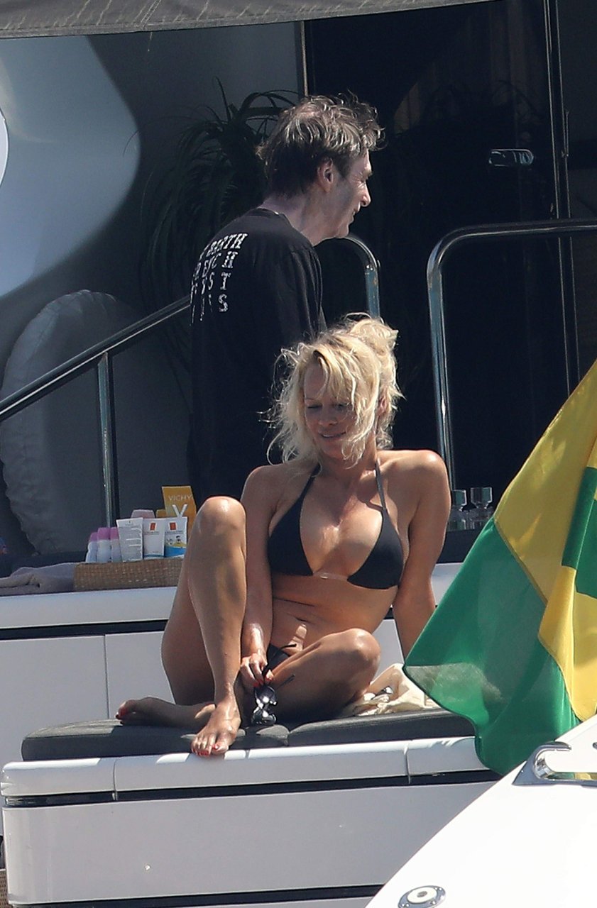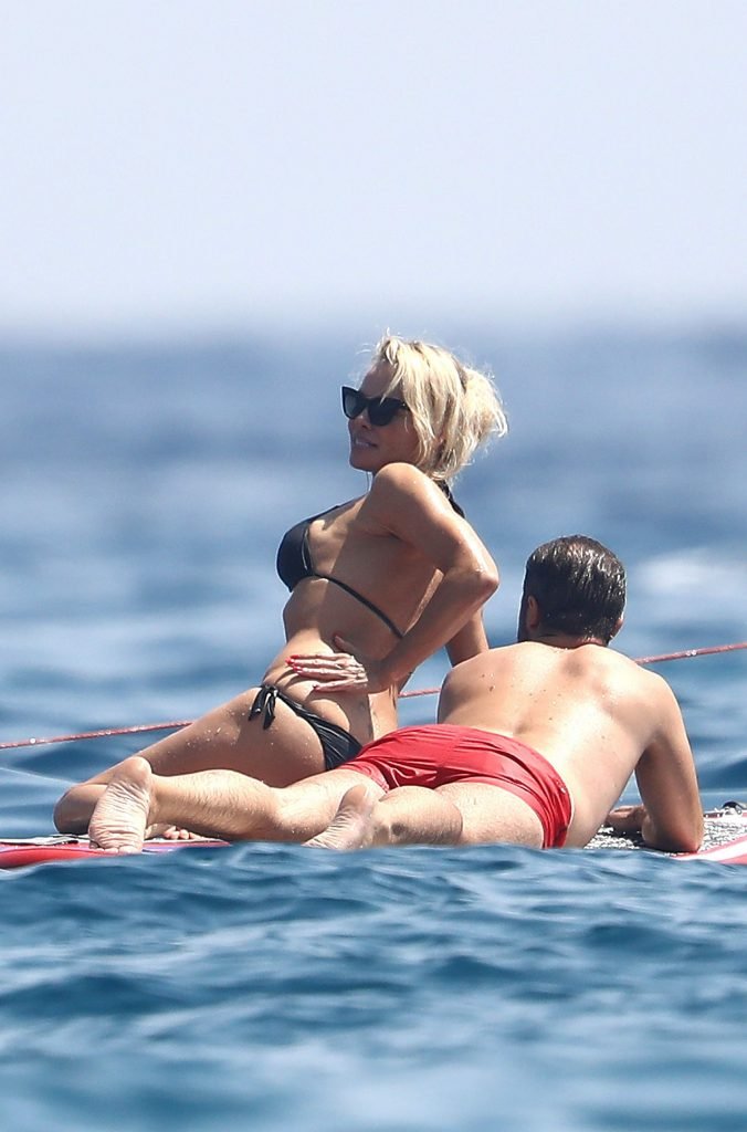 Pamela Anderson montre son corps chaud dans un bikini noir en vacances en France, 04/08/2017. Pamela Anderson est une actrice canado-américaine (Alerte à Malibu, 2017), mannequin, activiste. Âge – 50.