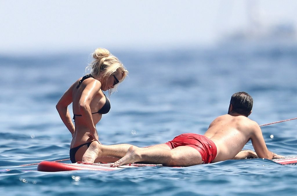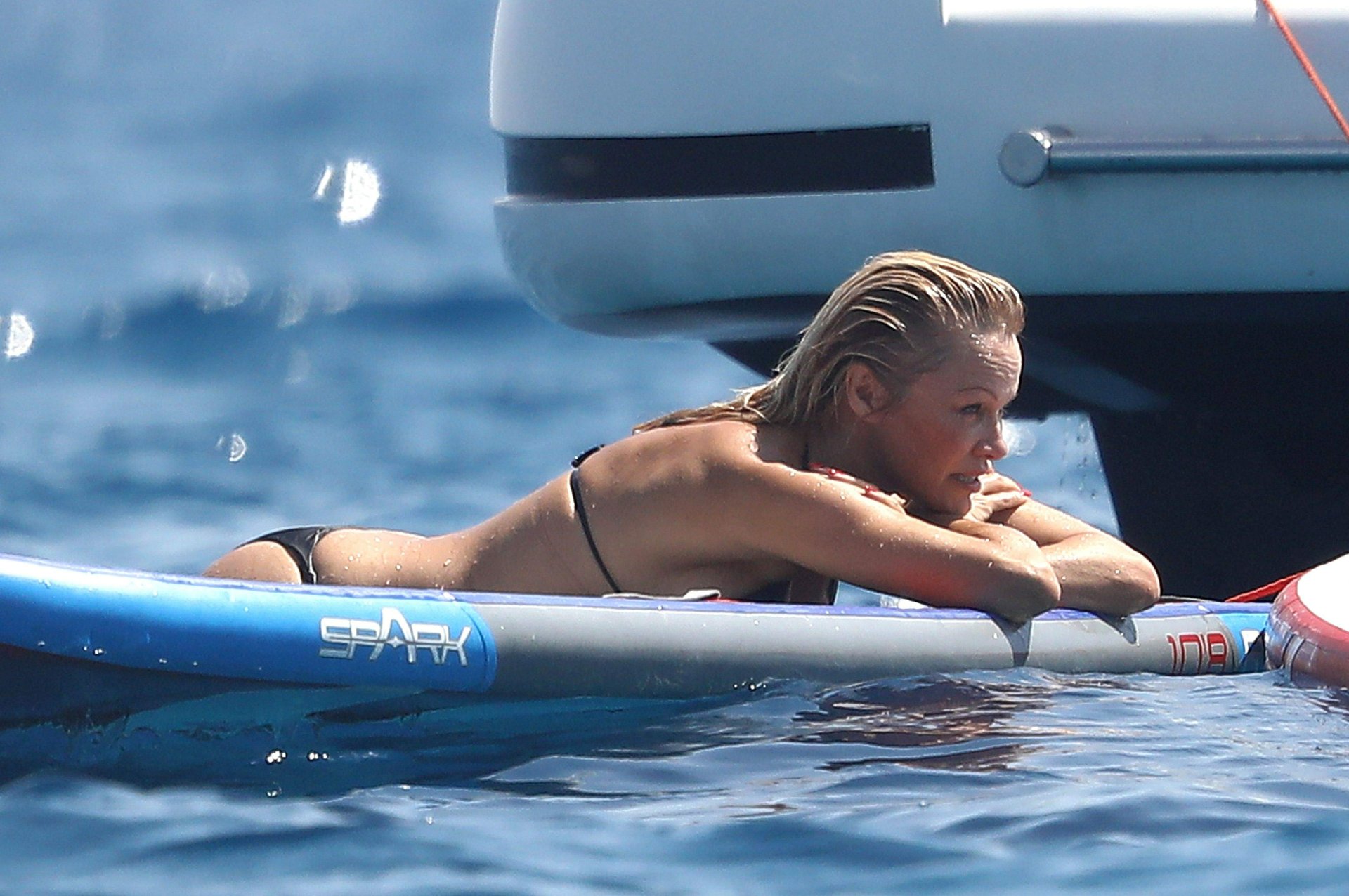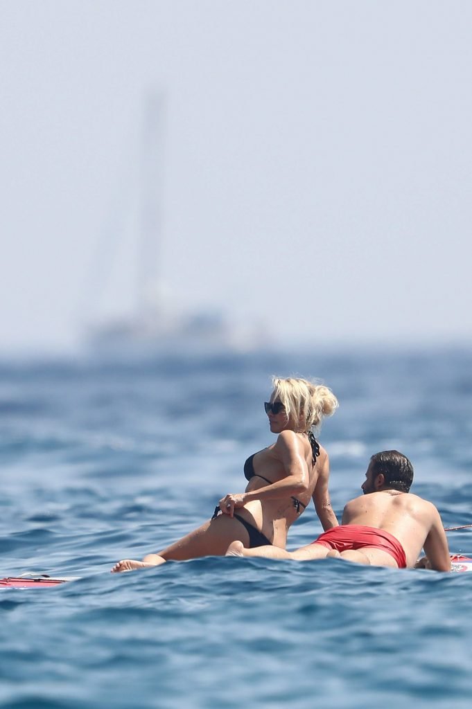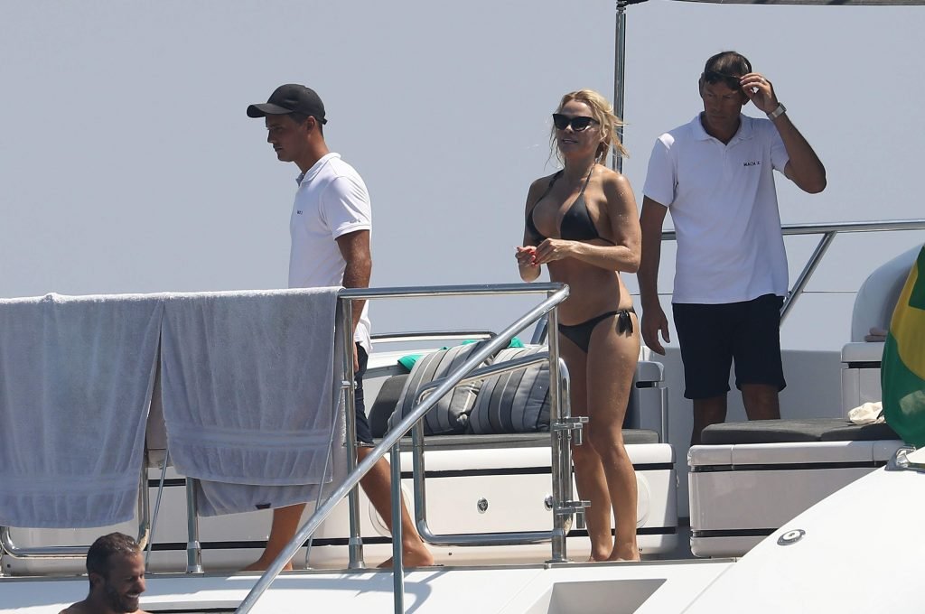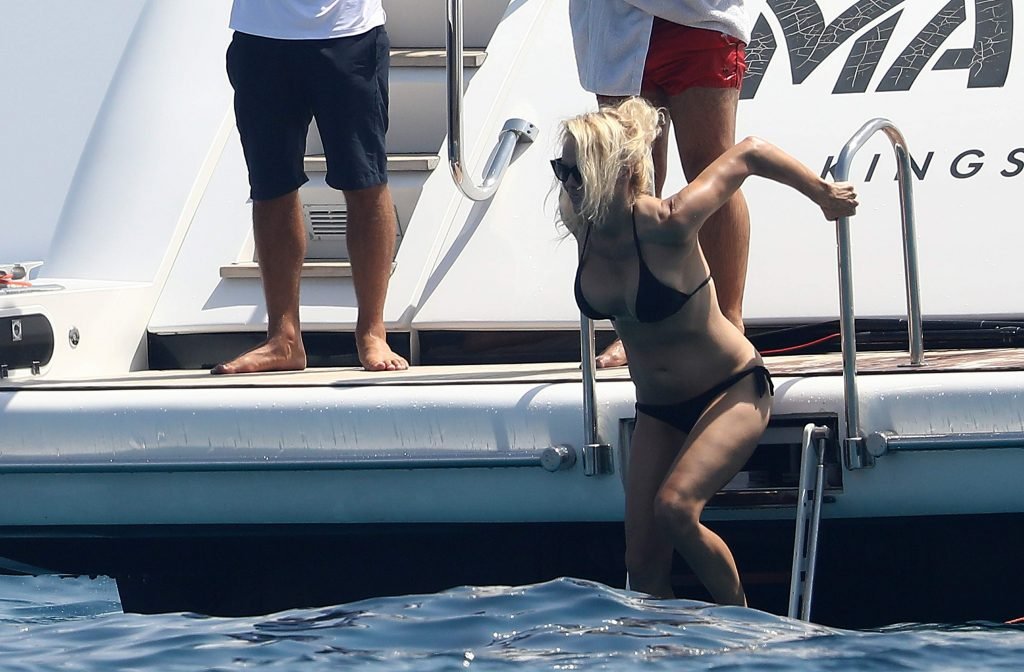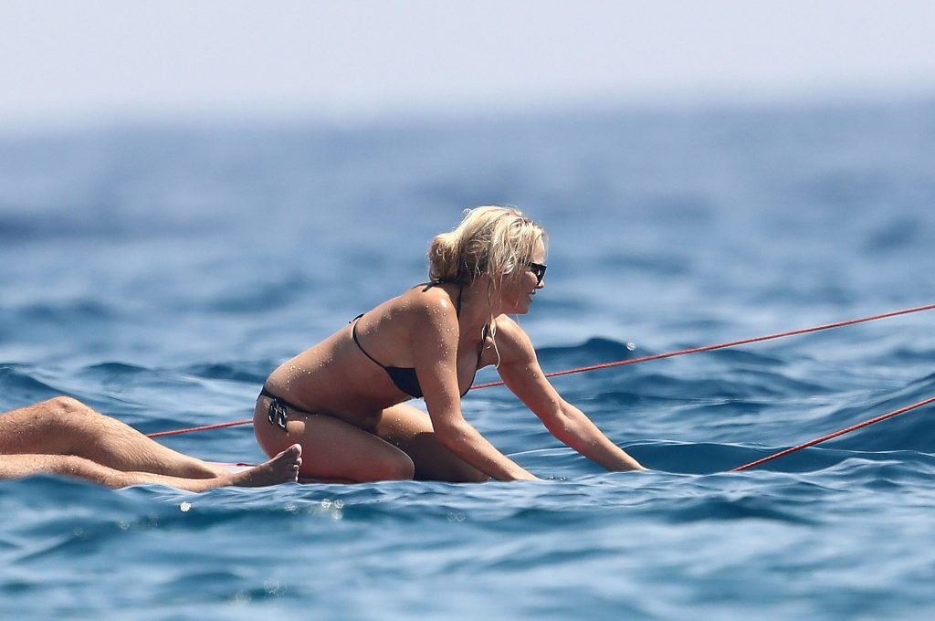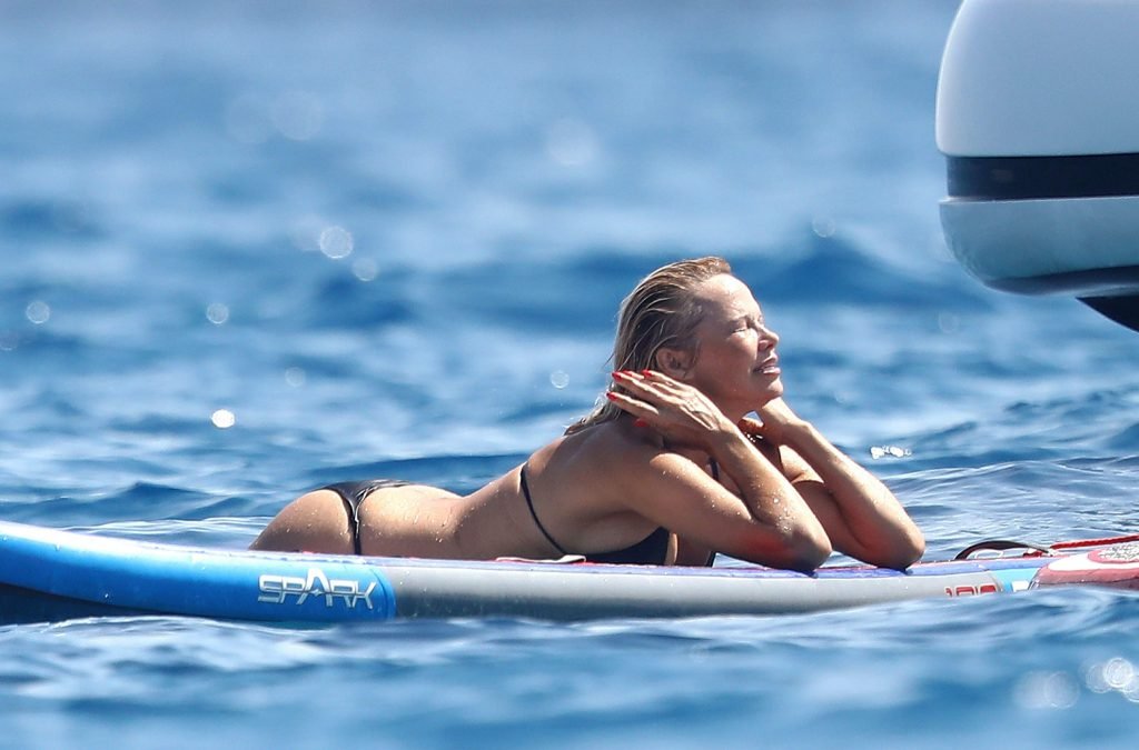 Pamela Anderson montre son corps chaud dans un bikini noir en vacances en France, 04/08/2017. Pamela Anderson est une actrice canado-américaine (Alerte à Malibu, 2017), mannequin, activiste. Âge – 50.