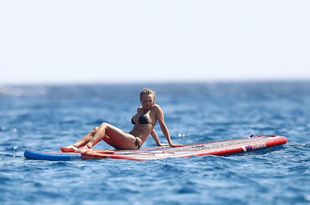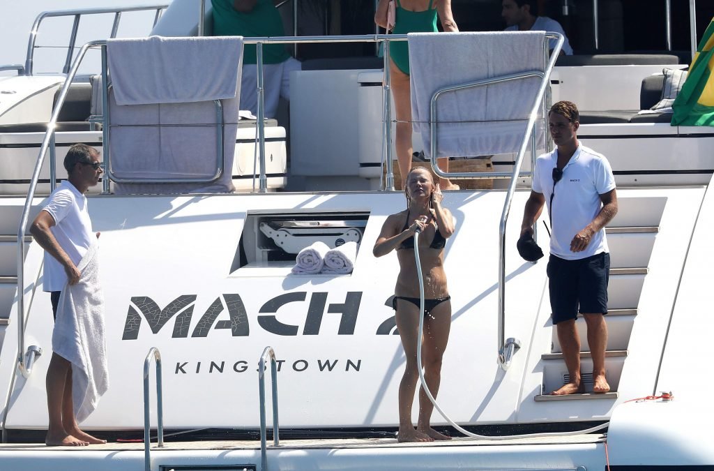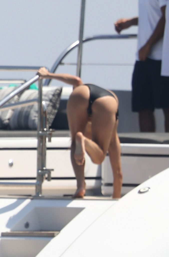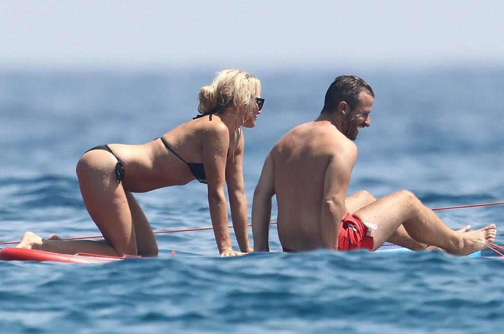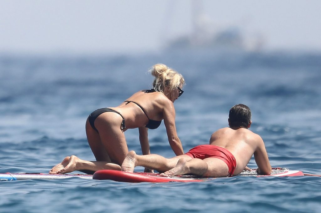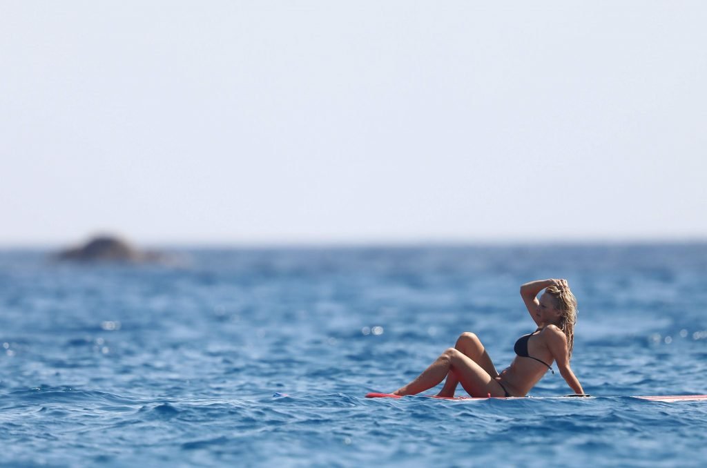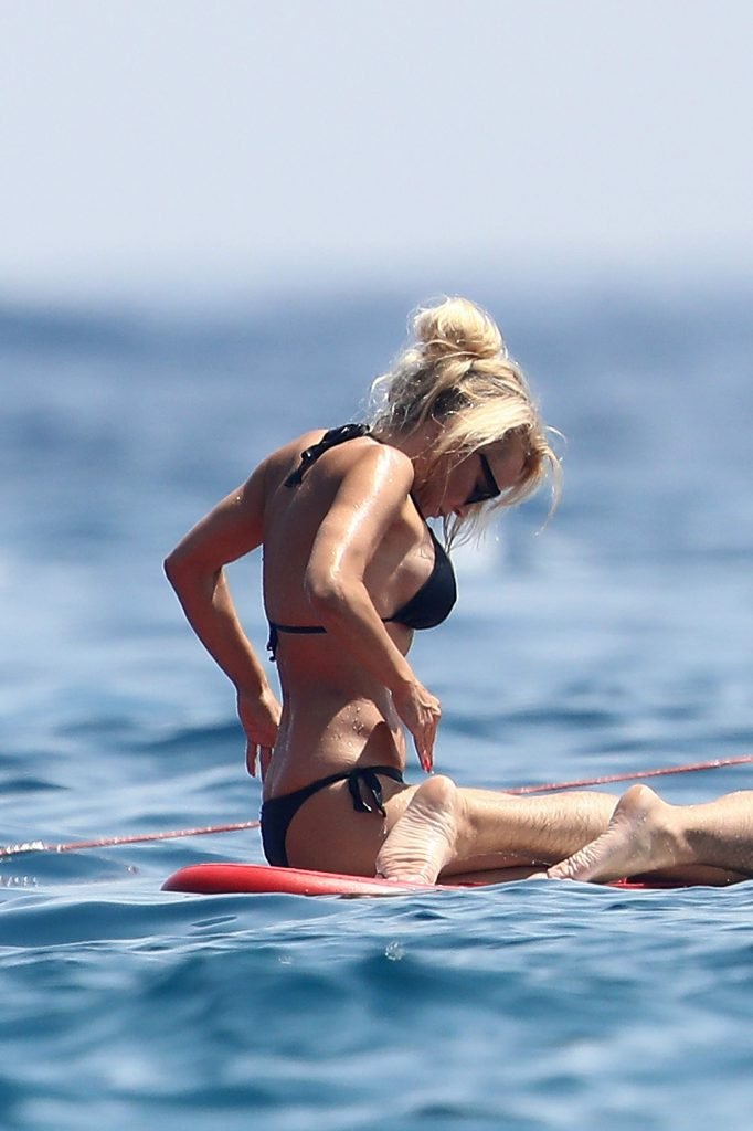 Pamela Anderson montre son corps chaud dans un bikini noir en vacances en France, 04/08/2017. Pamela Anderson est une actrice canado-américaine (Alerte à Malibu, 2017), mannequin, activiste. Âge – 50.