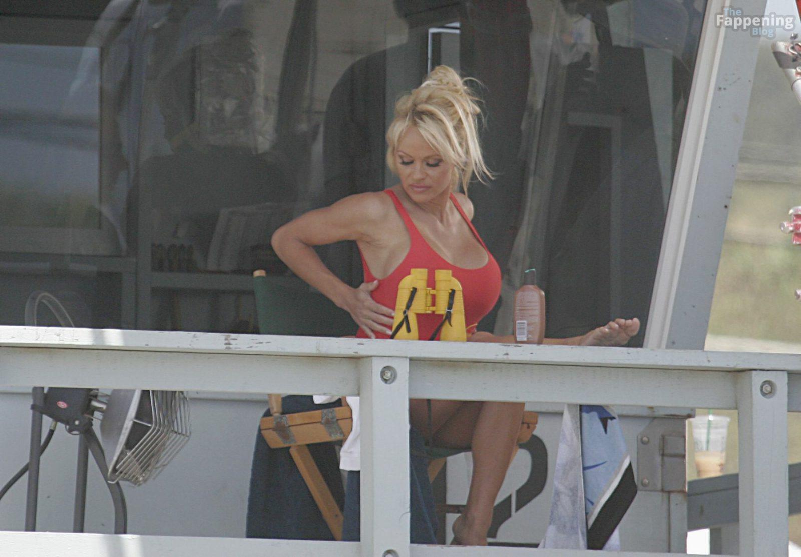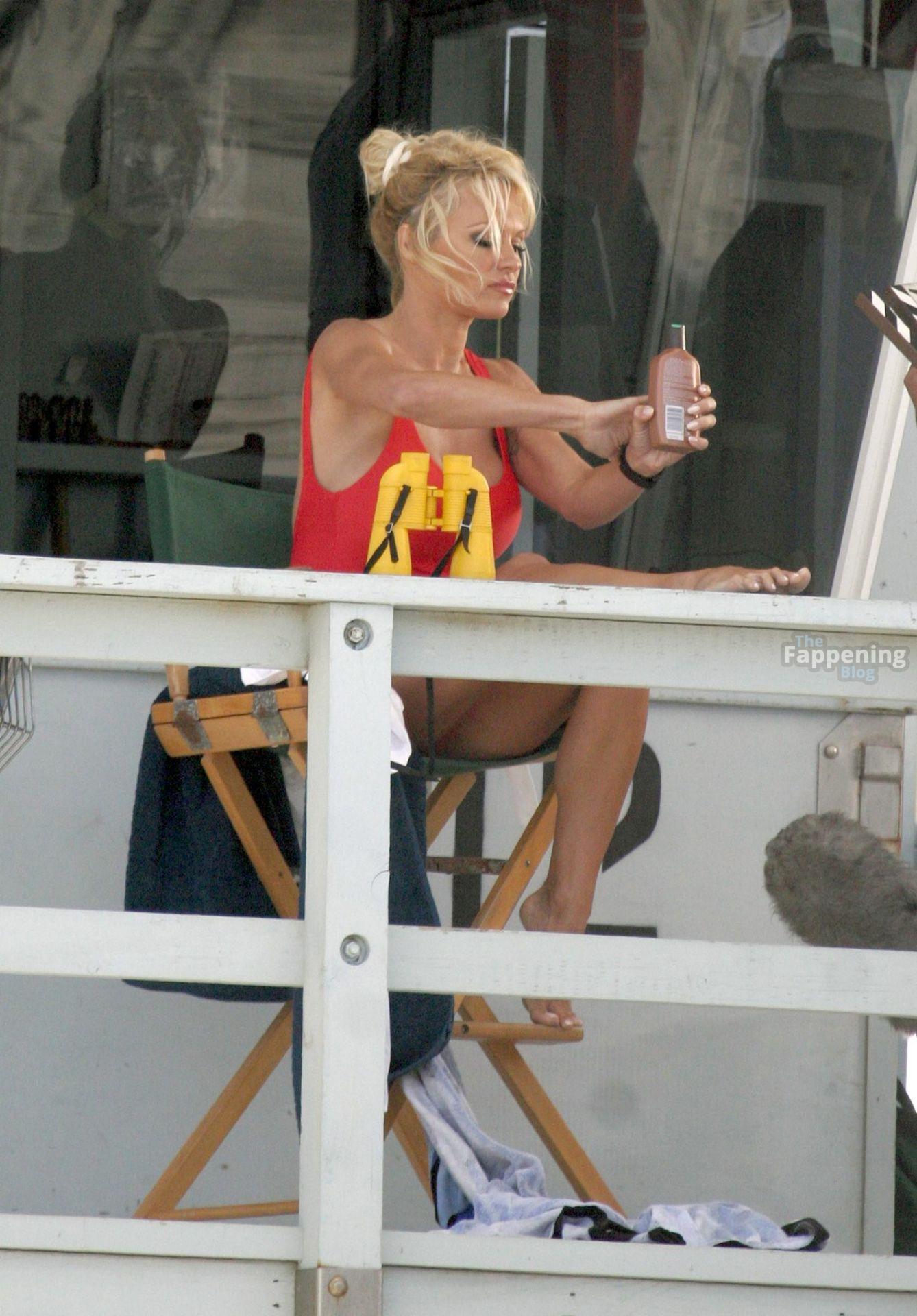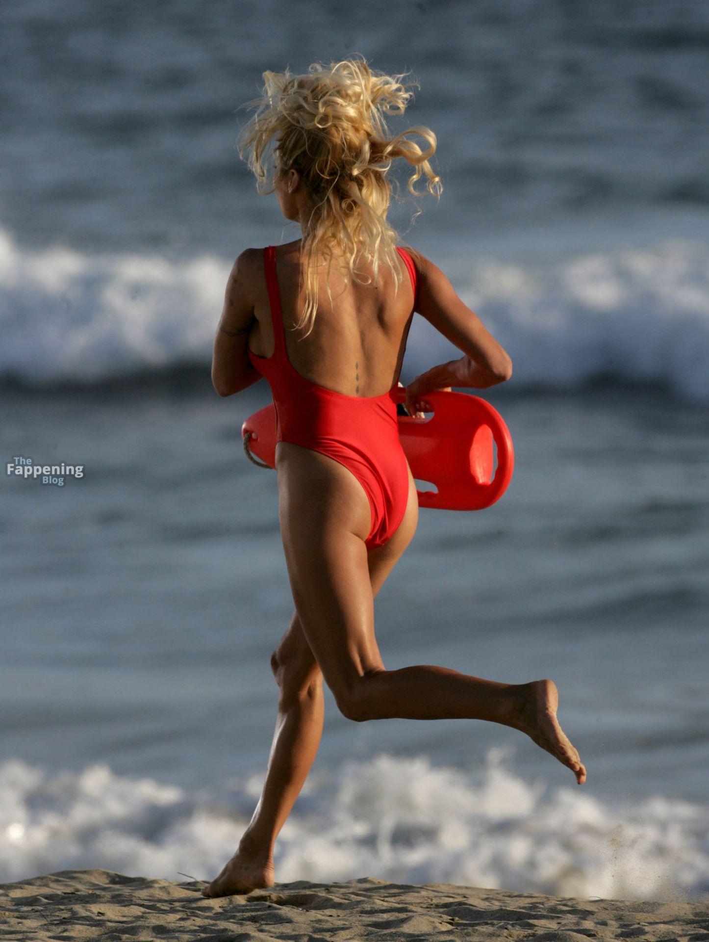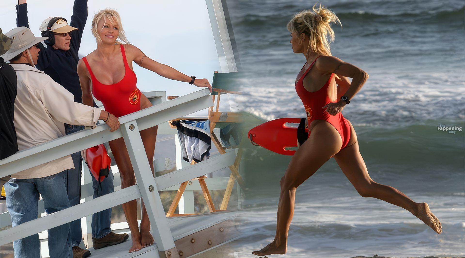 Pamela Anderson dans ce shooting de sauveteuse de 2007 était torride. Maillot une pièce rouge, poitrine généreuse, peau bronzée par le soleil, et cette course emblématique au ralenti.