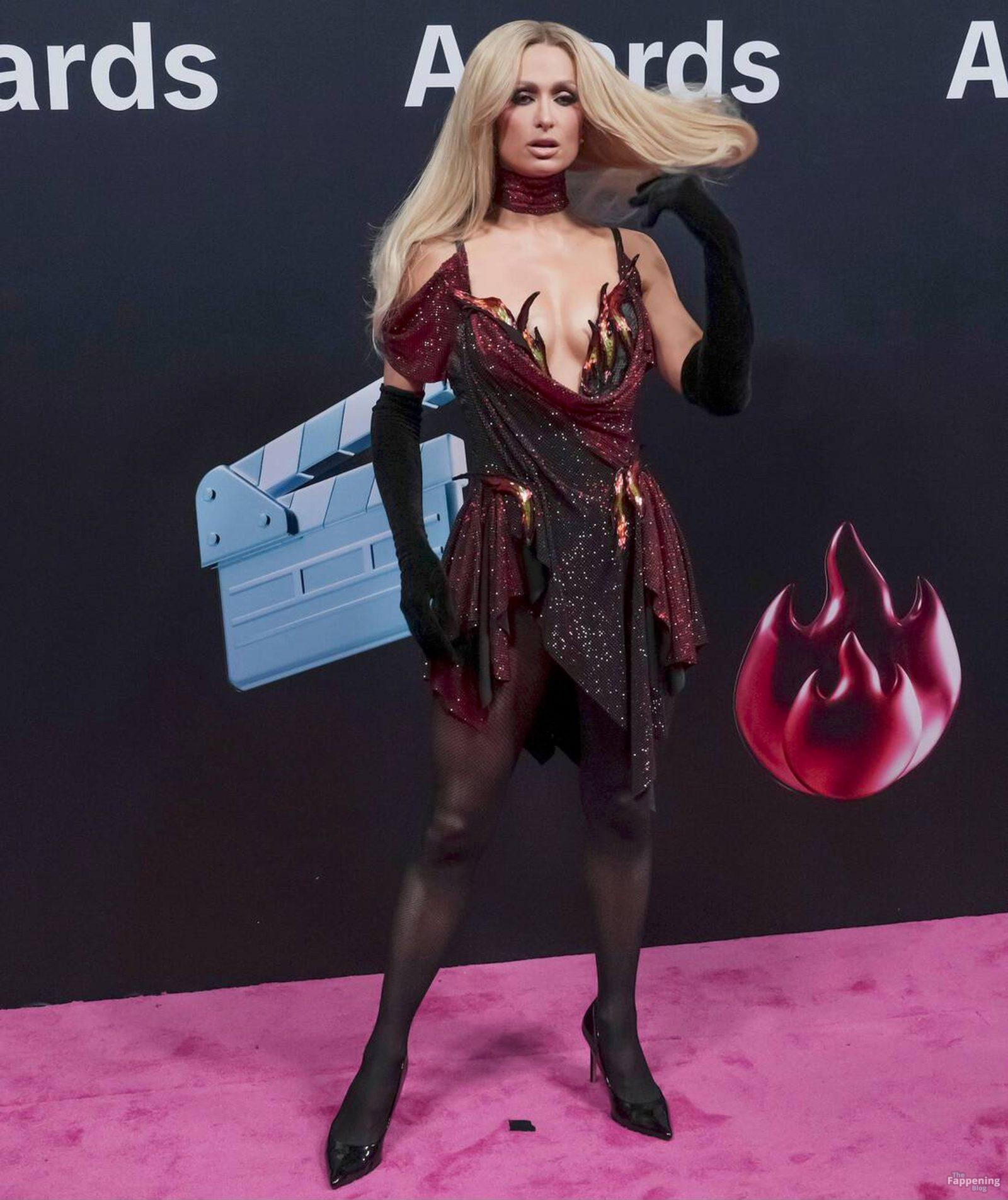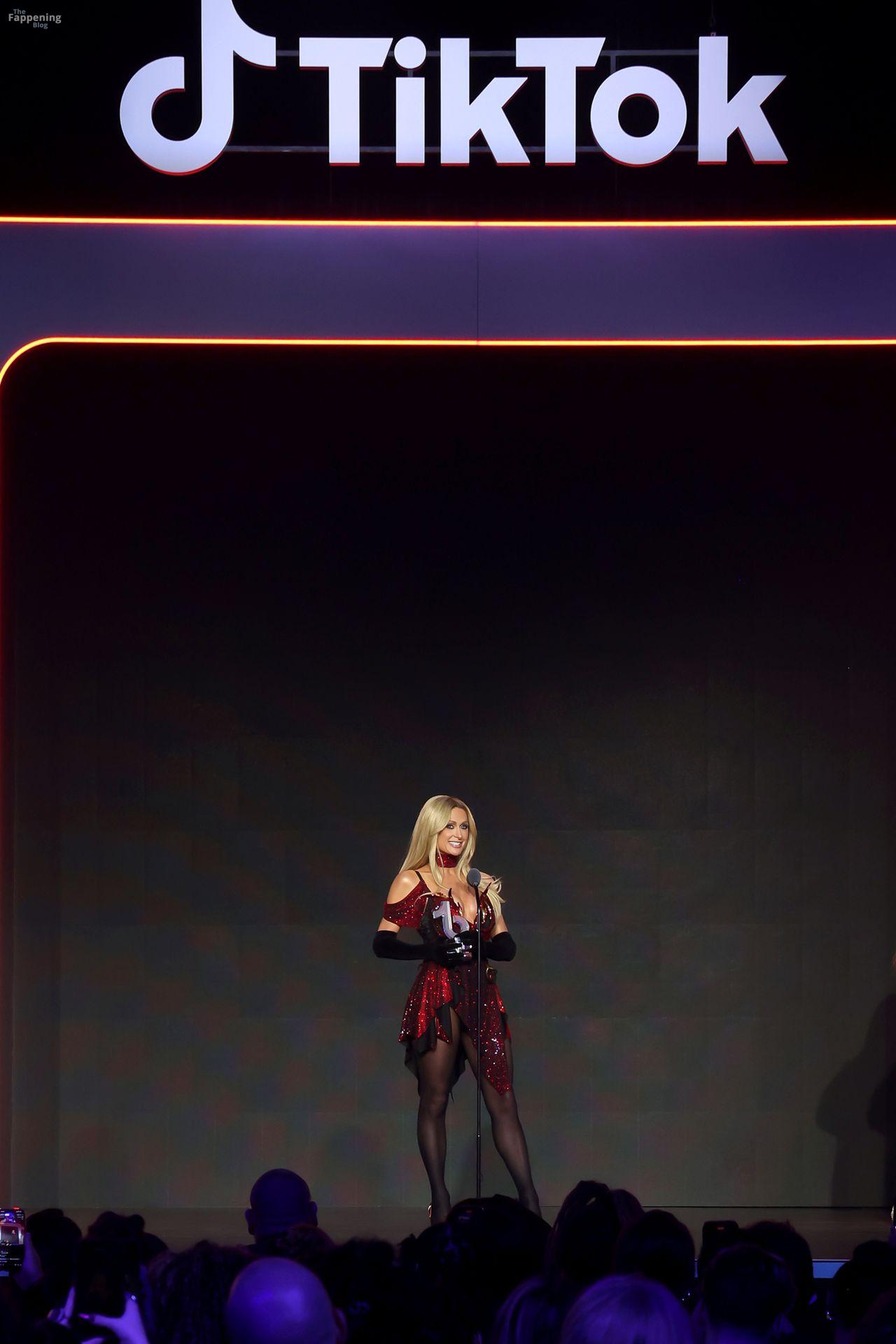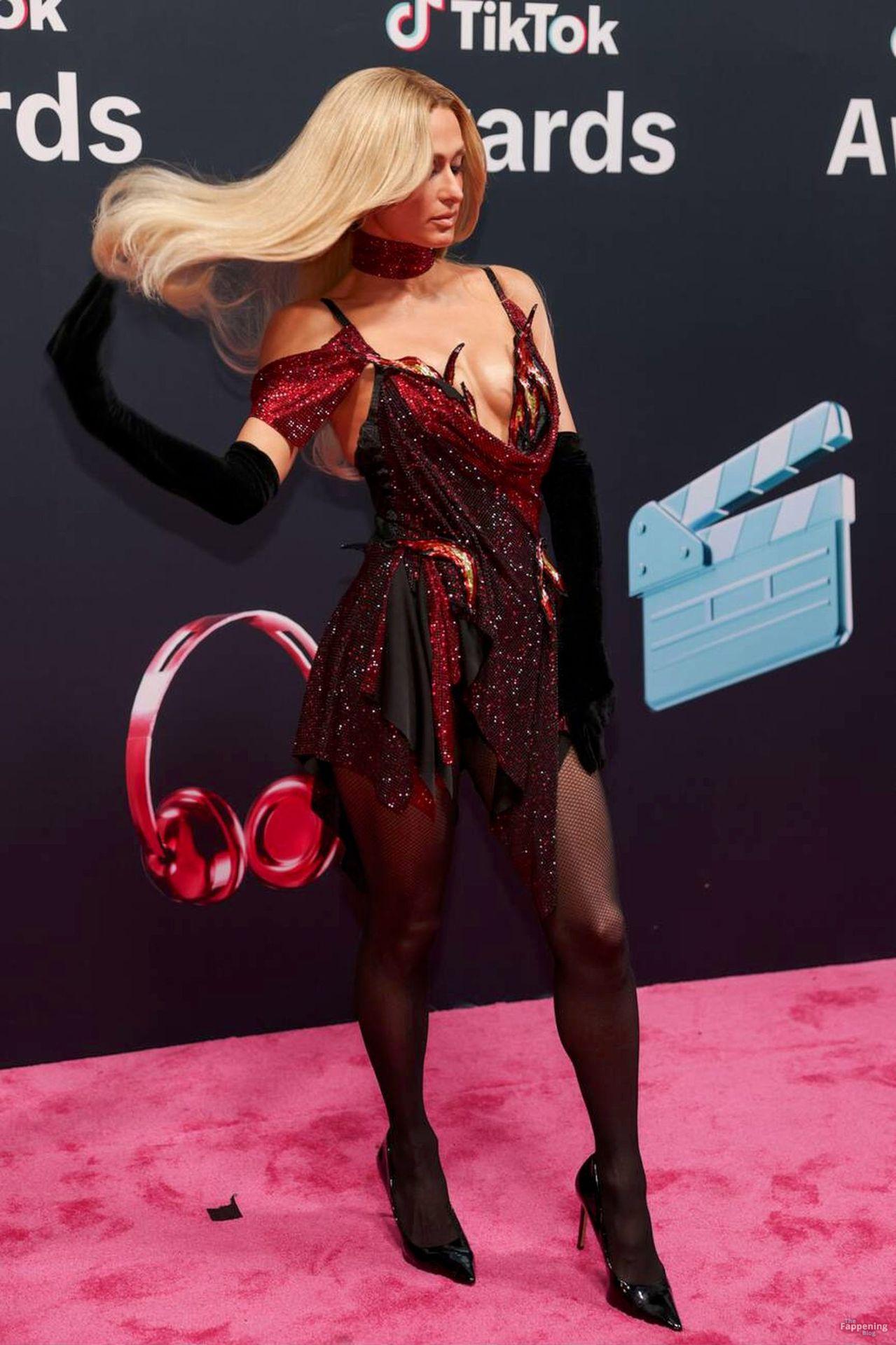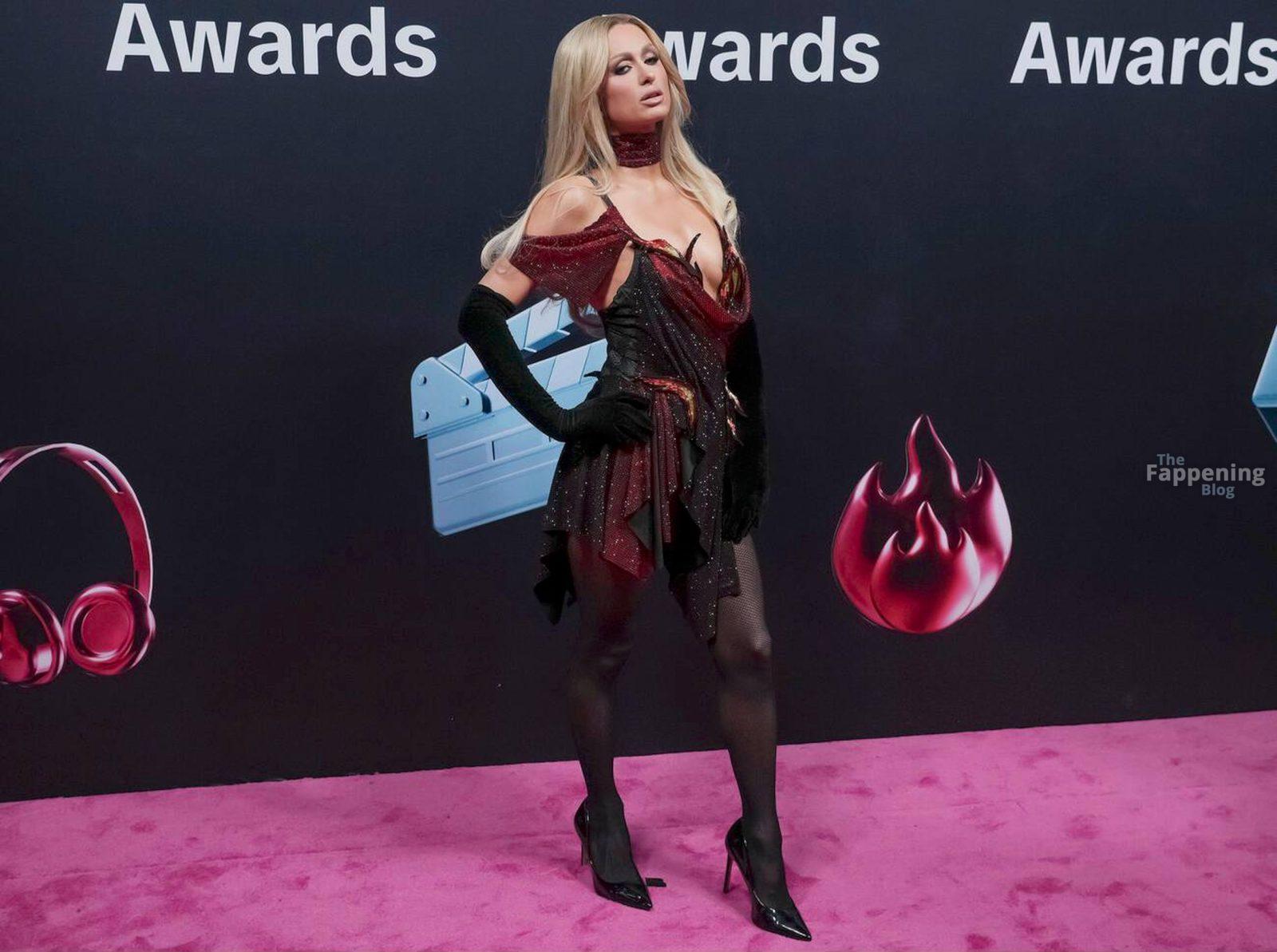 Paris Hilton montre ses jambes sexy et sa poitrine dans une robe rouge brûlante aux TikTok Awards 2025.