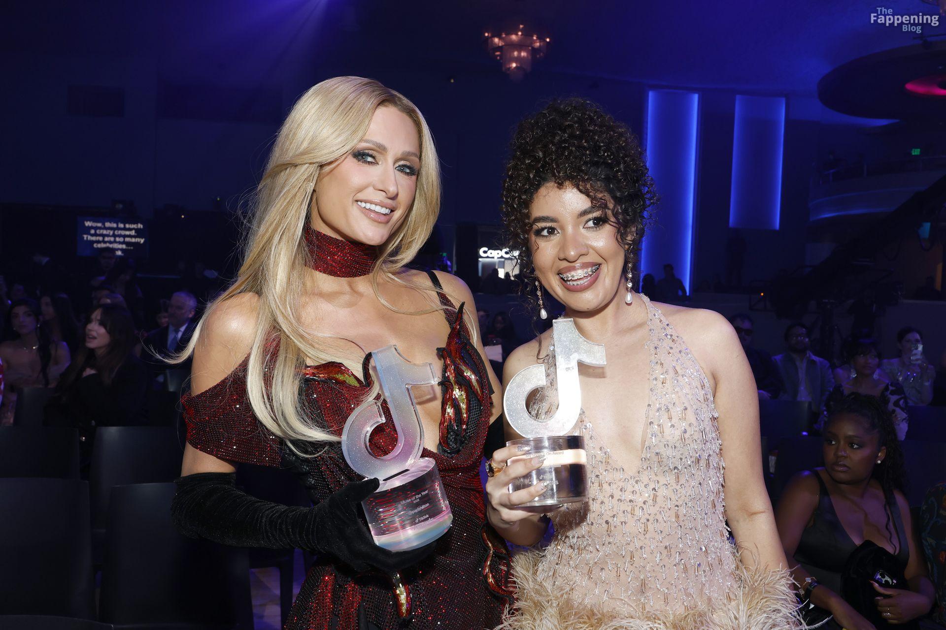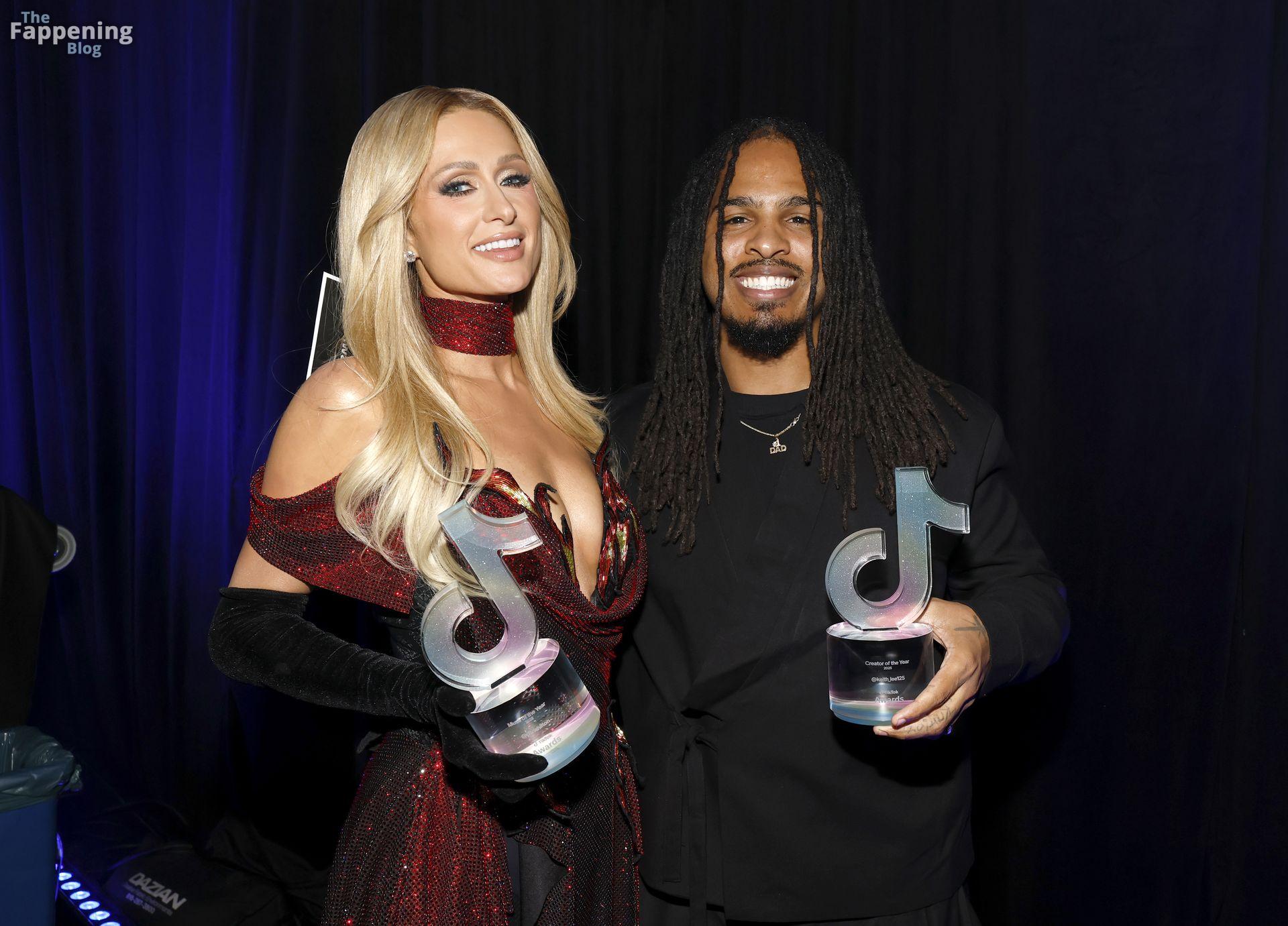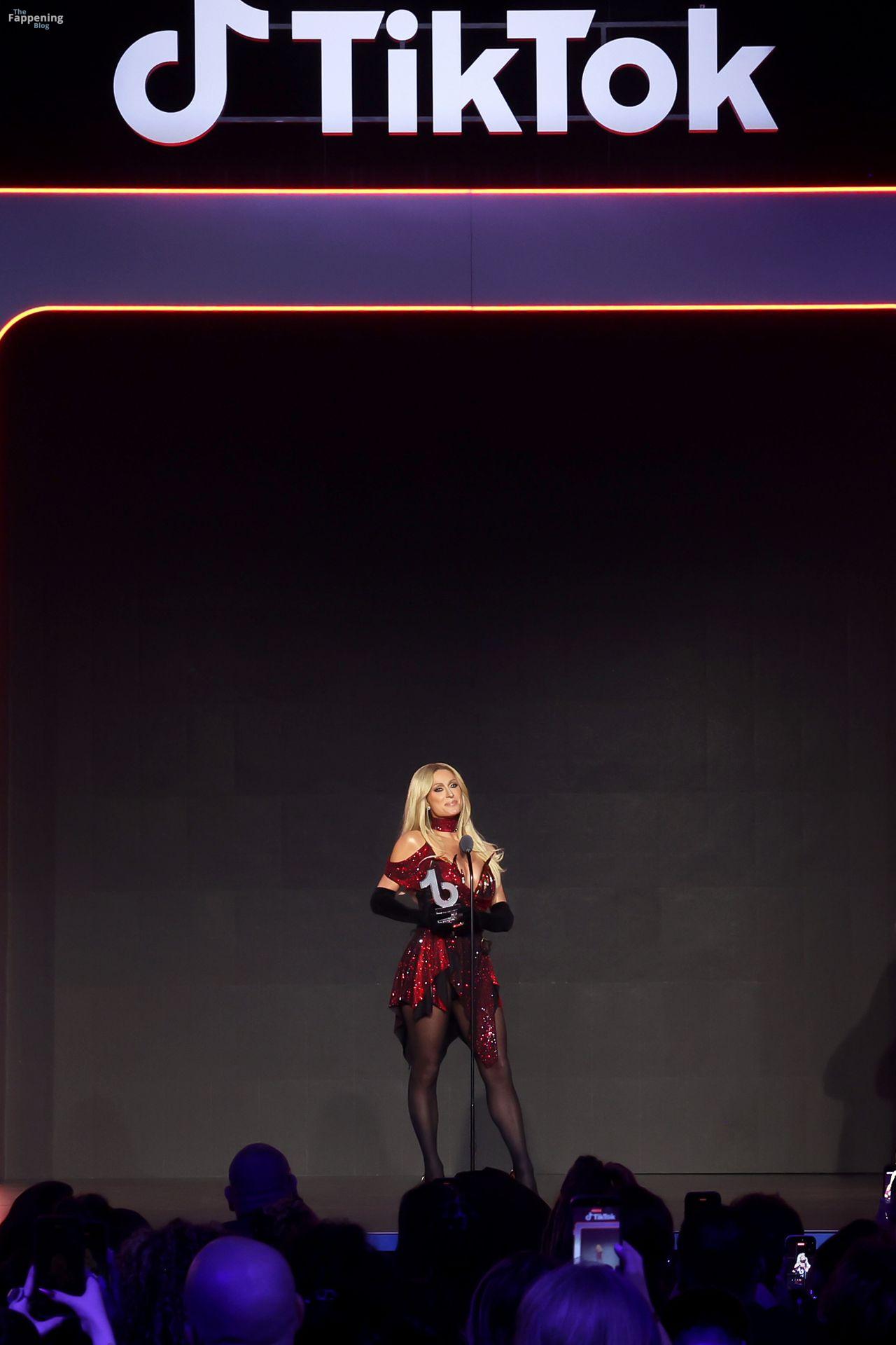 Paris Hilton montre ses jambes sexy et sa poitrine dans une robe rouge brûlante aux TikTok Awards 2025.