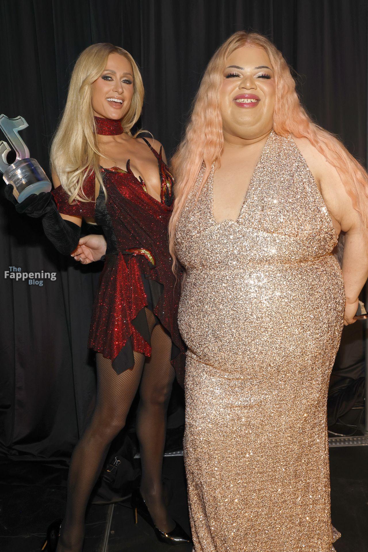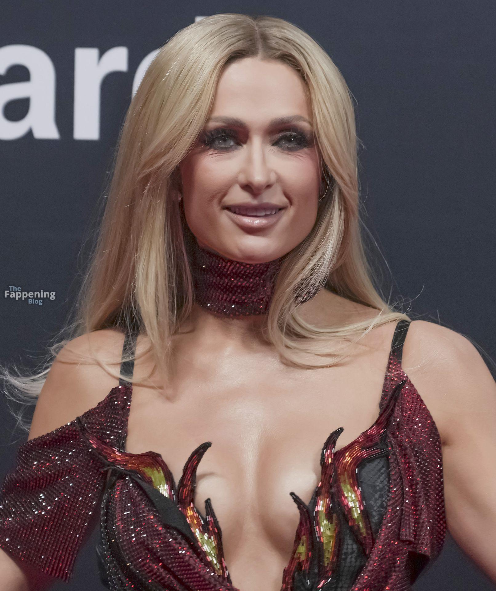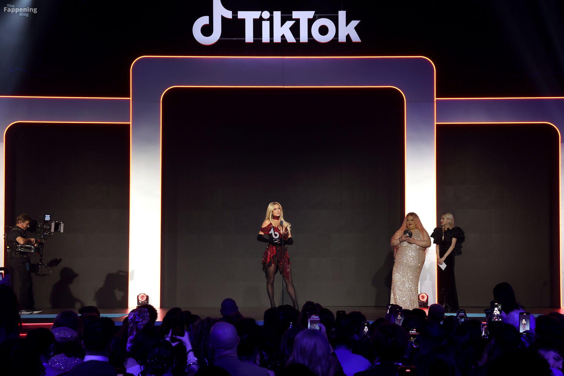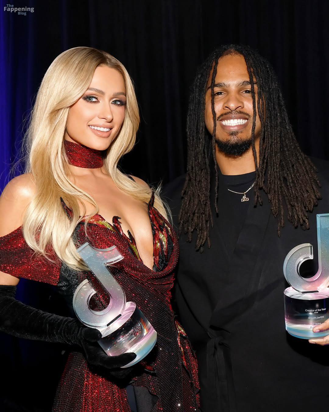Paris Hilton montre ses jambes sexy et sa poitrine dans une robe rouge brûlante aux TikTok Awards 2025.
