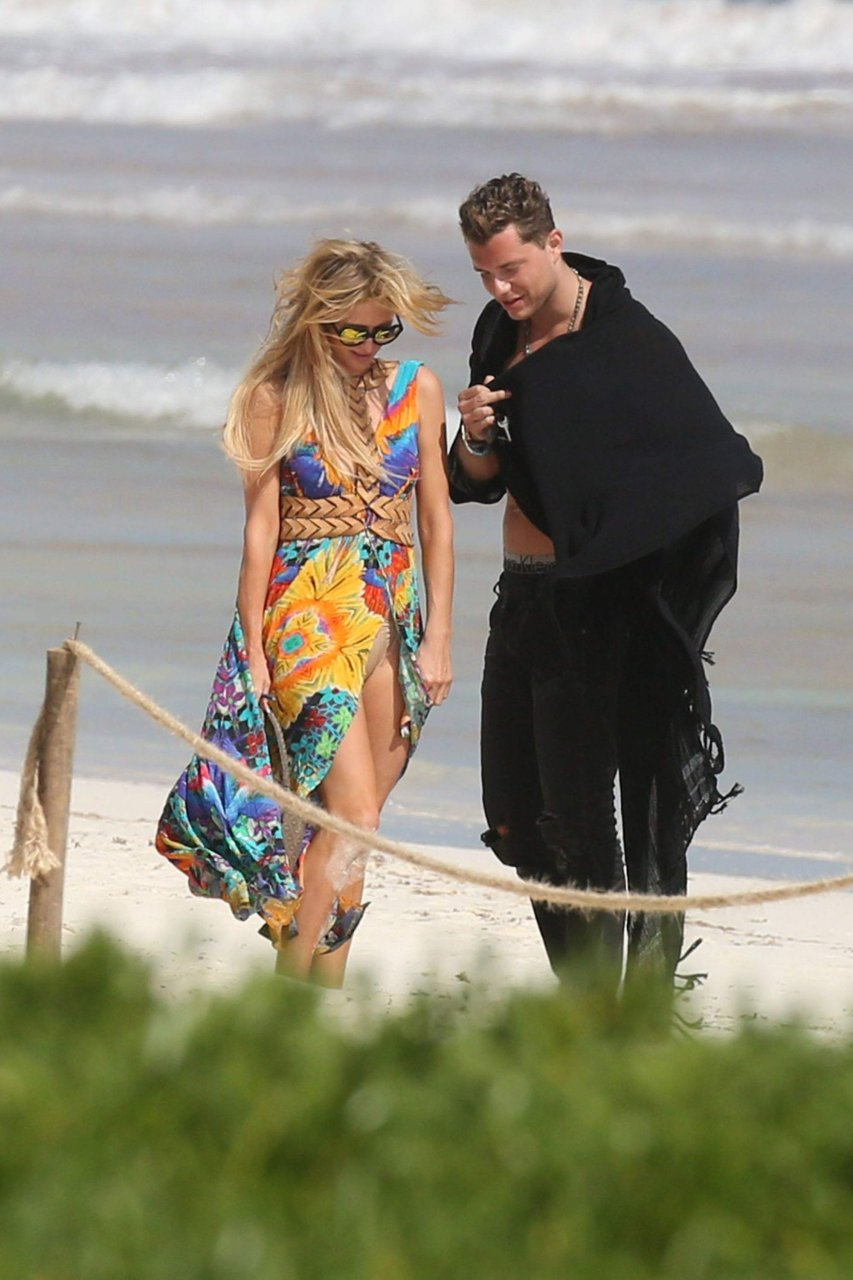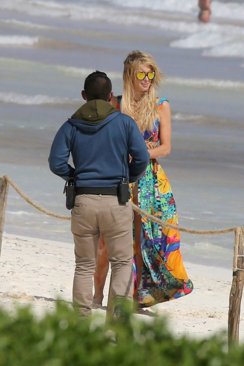 Paris Hilton montre ses fesses et son vagin sur la plage avec un homme non identifié à Tulum, 01/10/2017. Paris Whitney Hilton est une actrice et mannequin américaine. Âge : 35 ans, 17 février 1981.