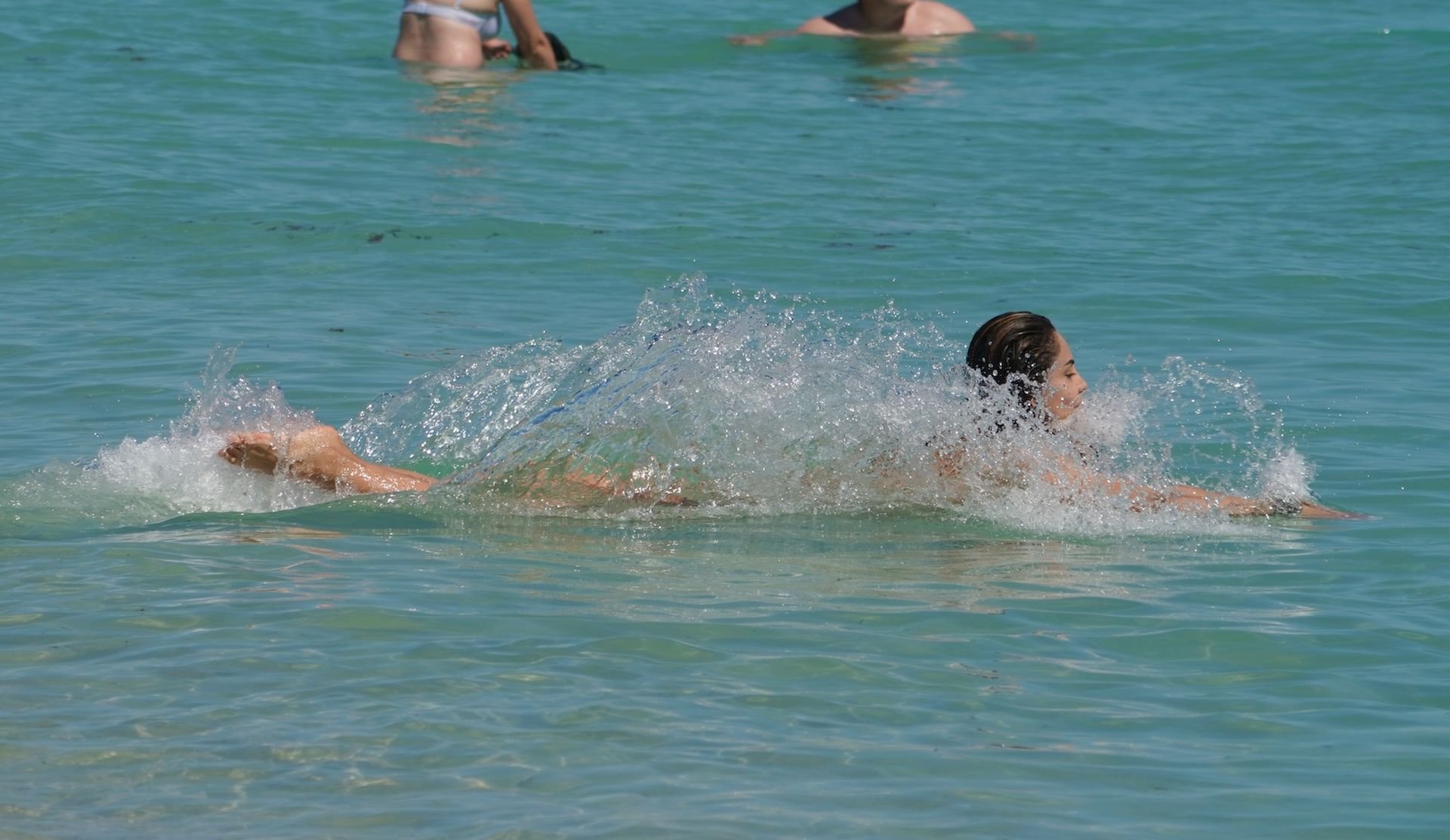 L’actrice Patricia Gloria Contreras a été vue en bikini string sur la plage de Miami Beach, le 28/02/2019. Elle a failli dévoiler ses seins en nageant.