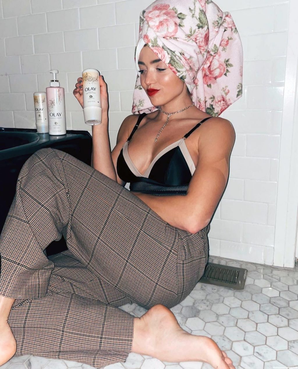 She posed in a sexy floral dress and a white jumpsuit! She also showed us her cleavage and her nice tits!