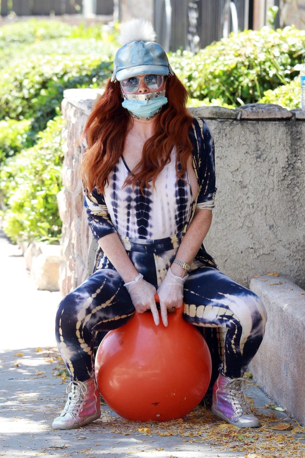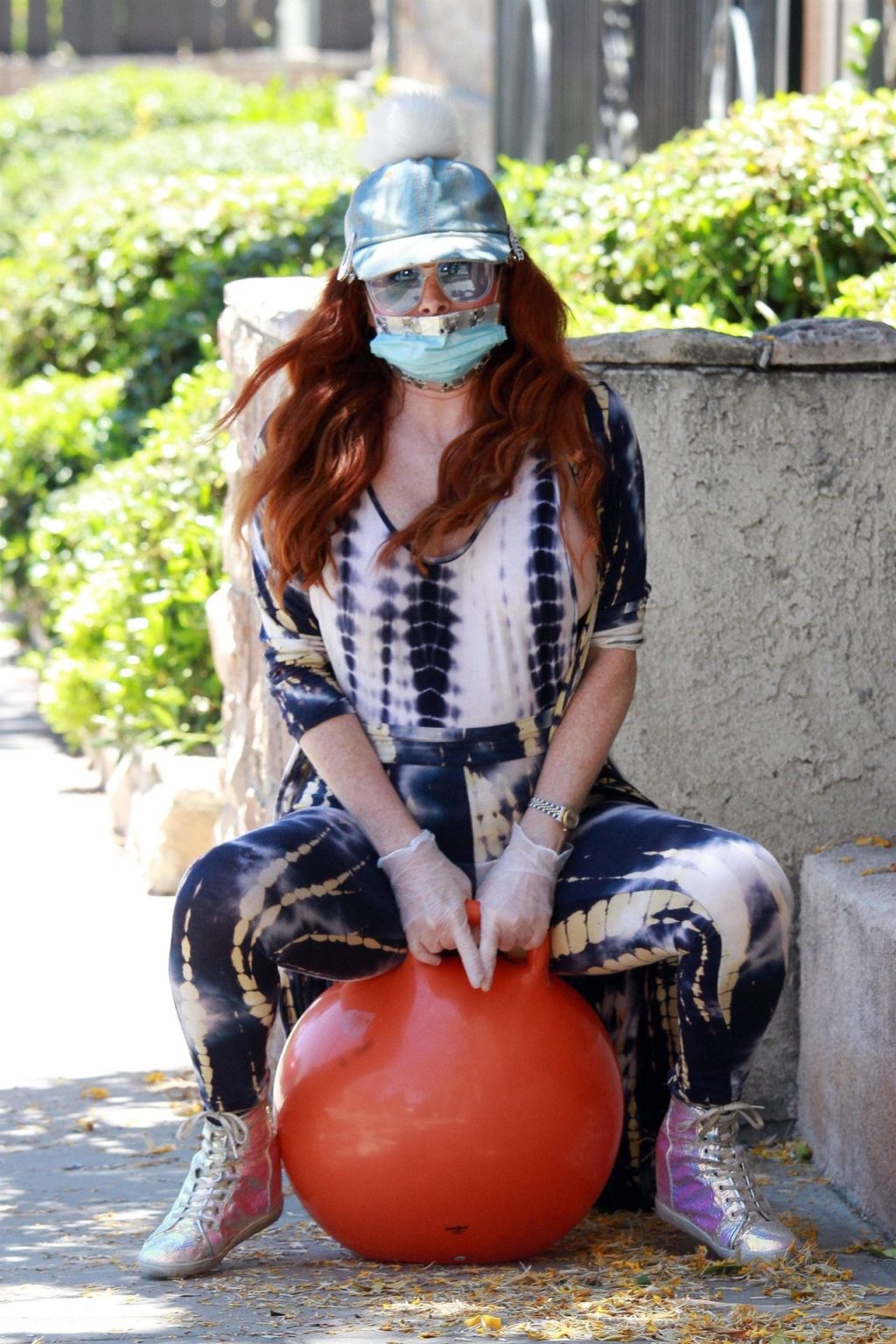 Phoebe Price pose pour des photos pendant son entraînement jeudi à Los Angeles. Elle tombe de son ballon d’exercice à un moment donné, mais elle continue.