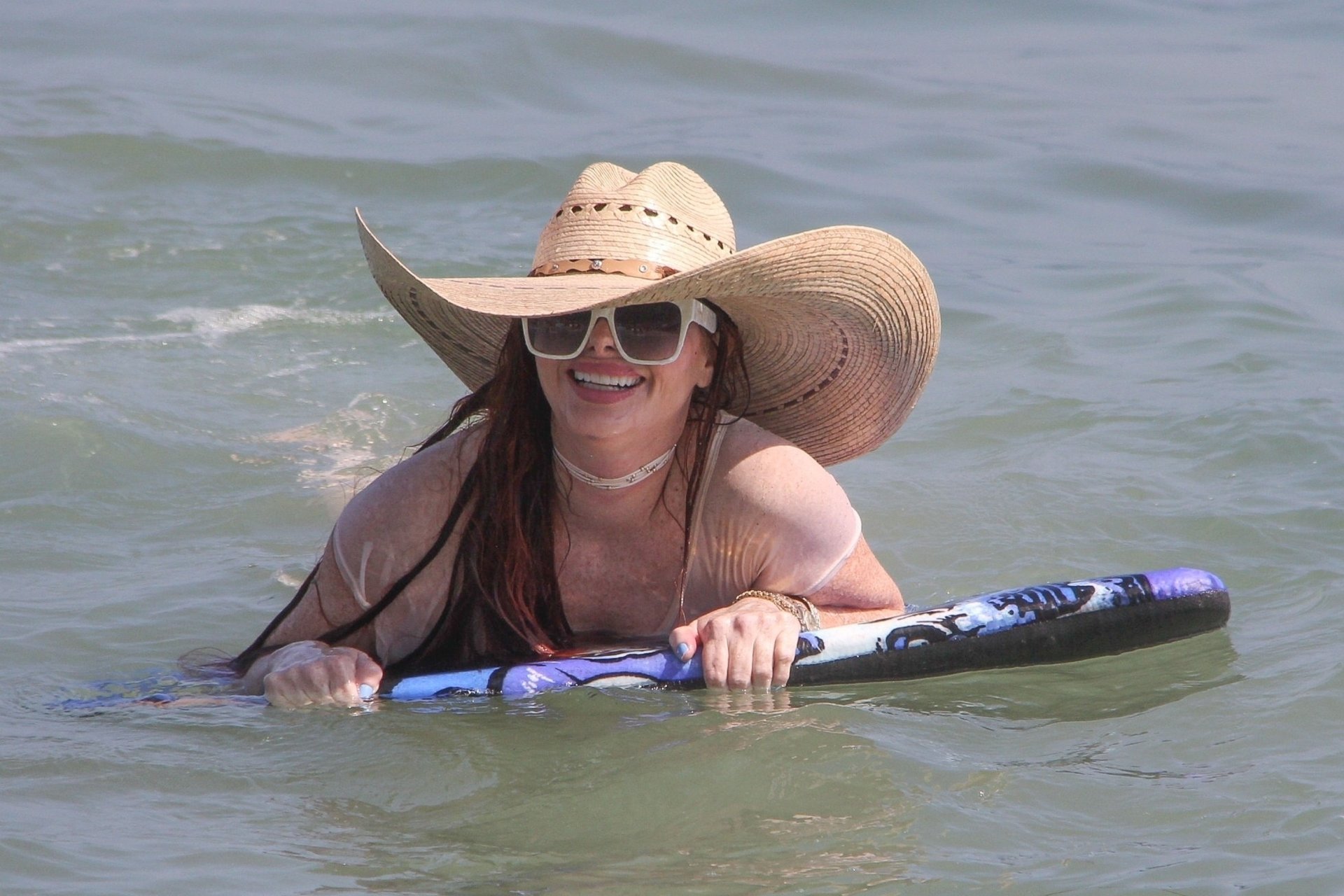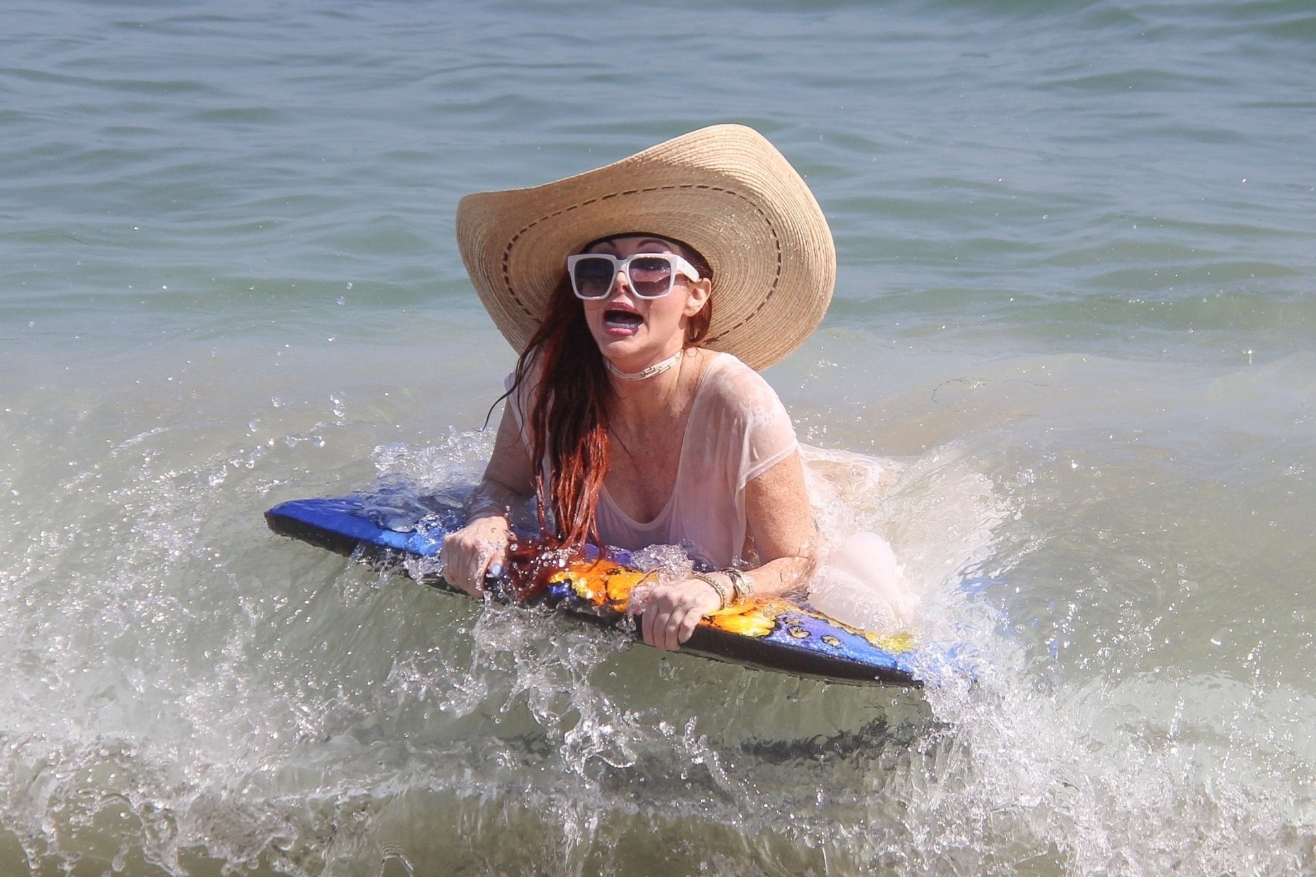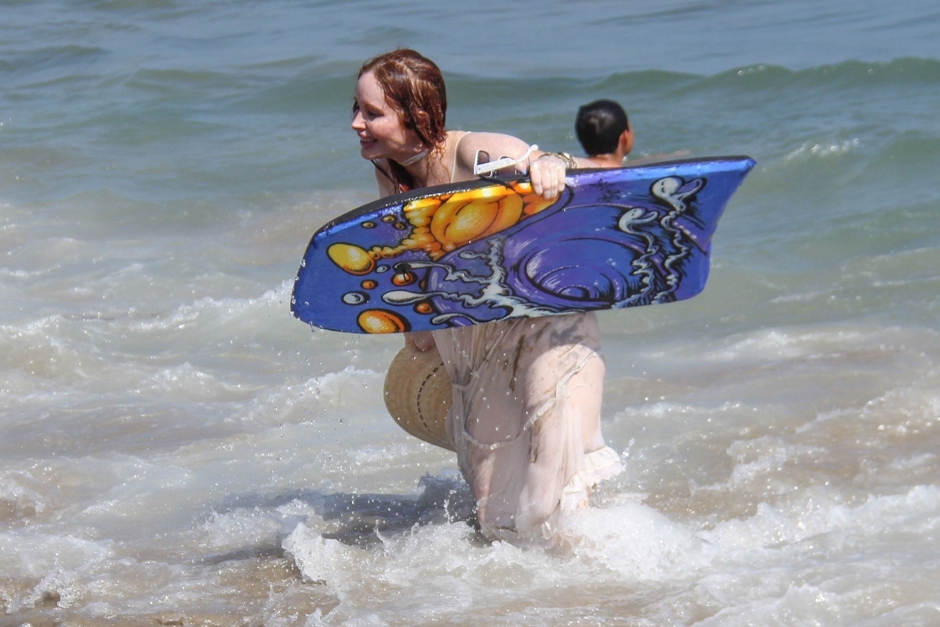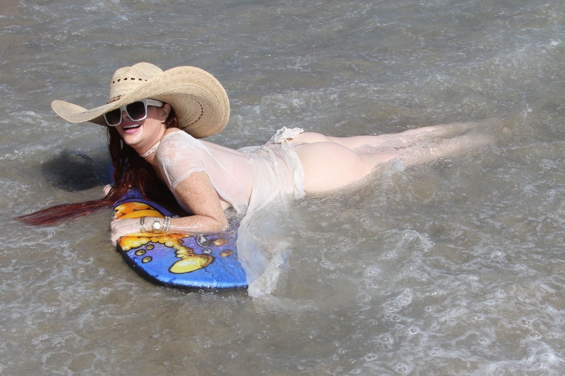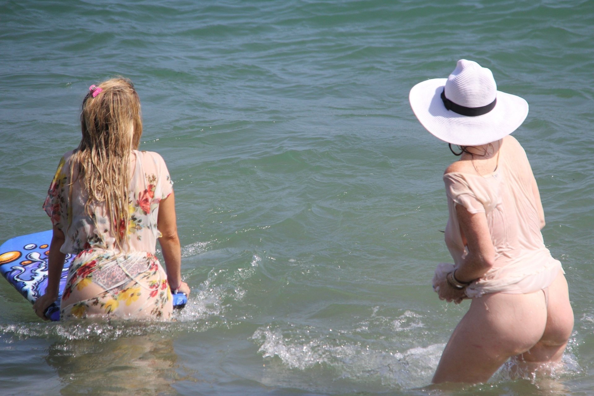L’actrice Phoebe Price et son amie Marcela Iglesias profitent d’une journée folle à la plage ensemble, 20/08/2018.
