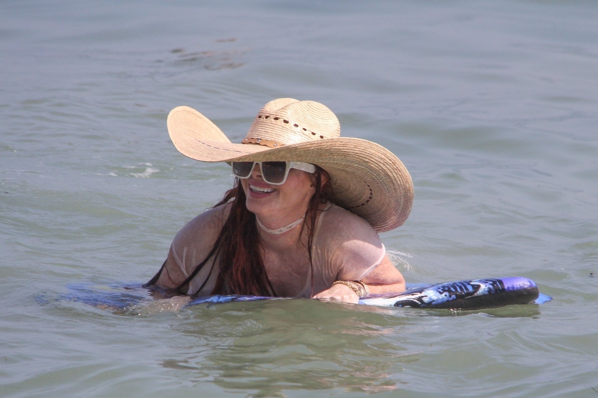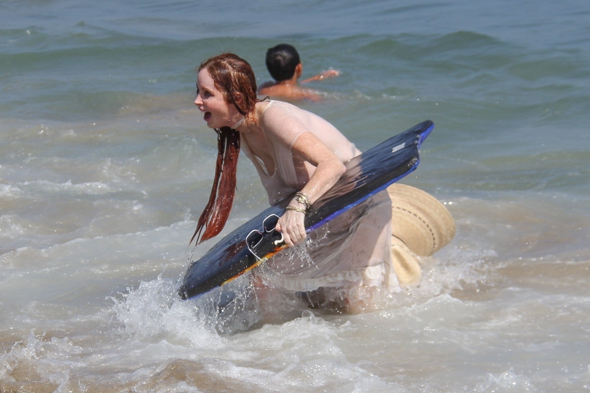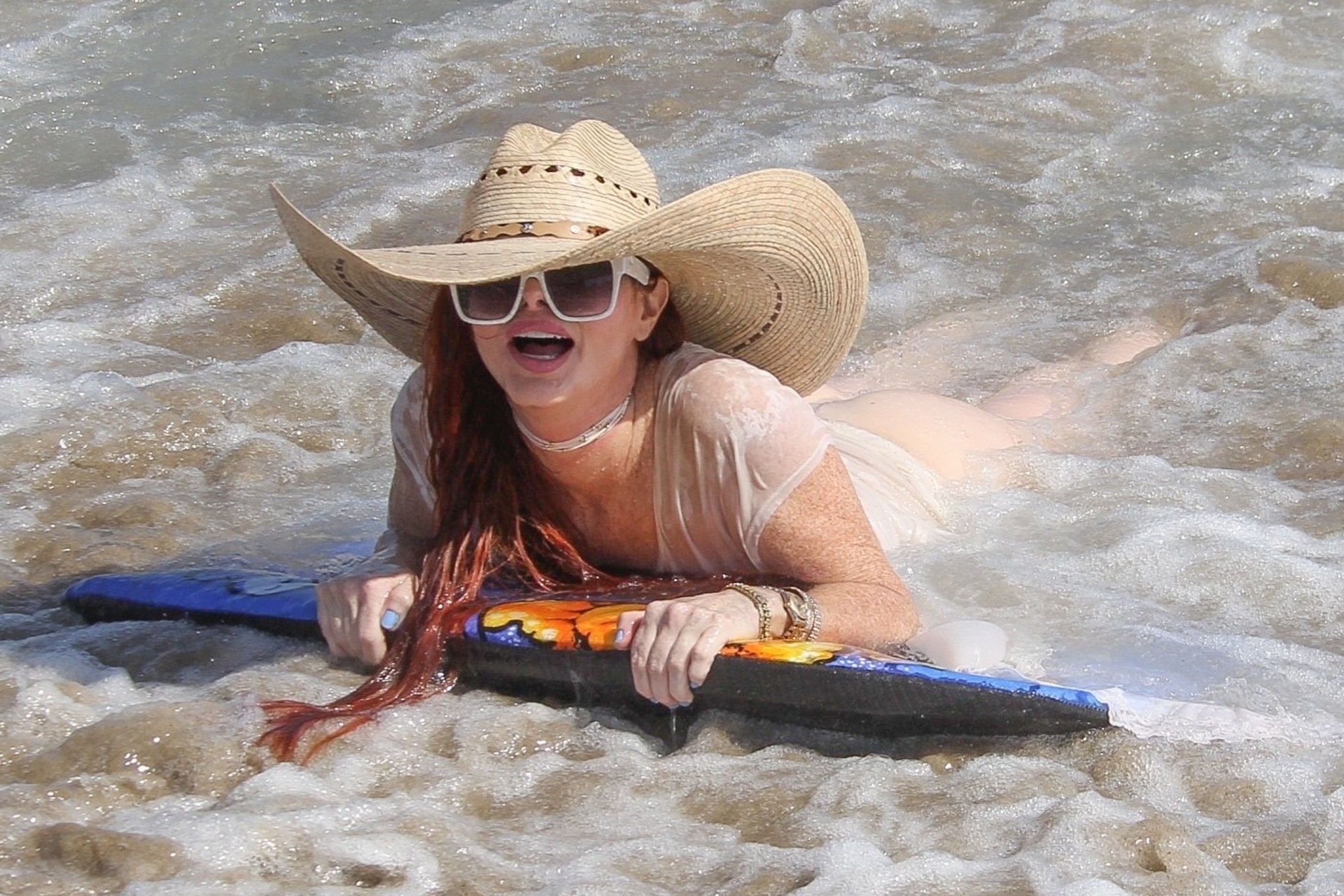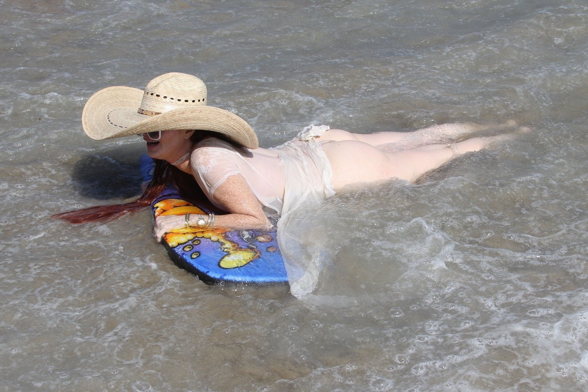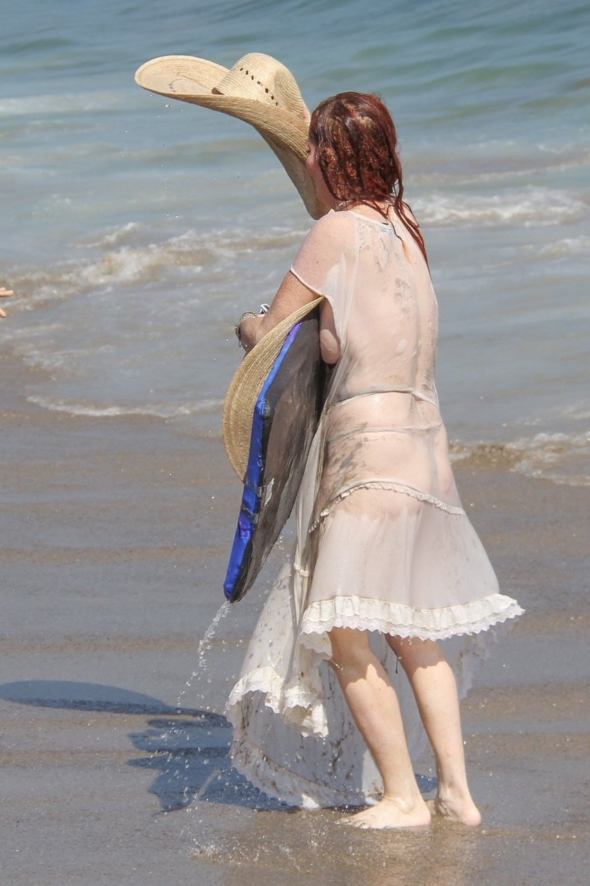 L’actrice Phoebe Price et son amie Marcela Iglesias profitent d’une journée folle à la plage ensemble, 20/08/2018.