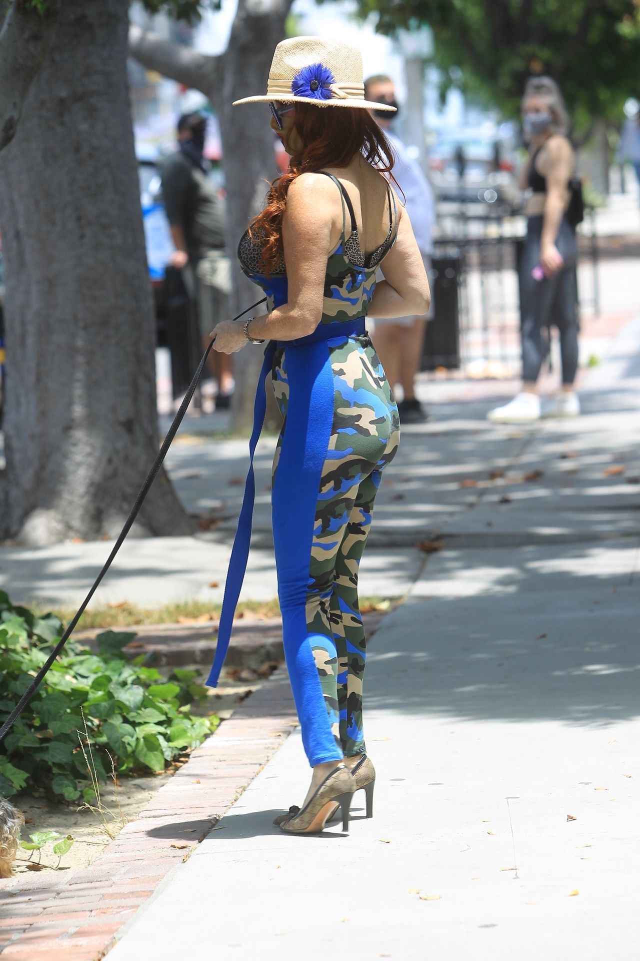 L’actrice pulpeuse Phoebe Price promène son chien à Hollywood, 25/06/2020.