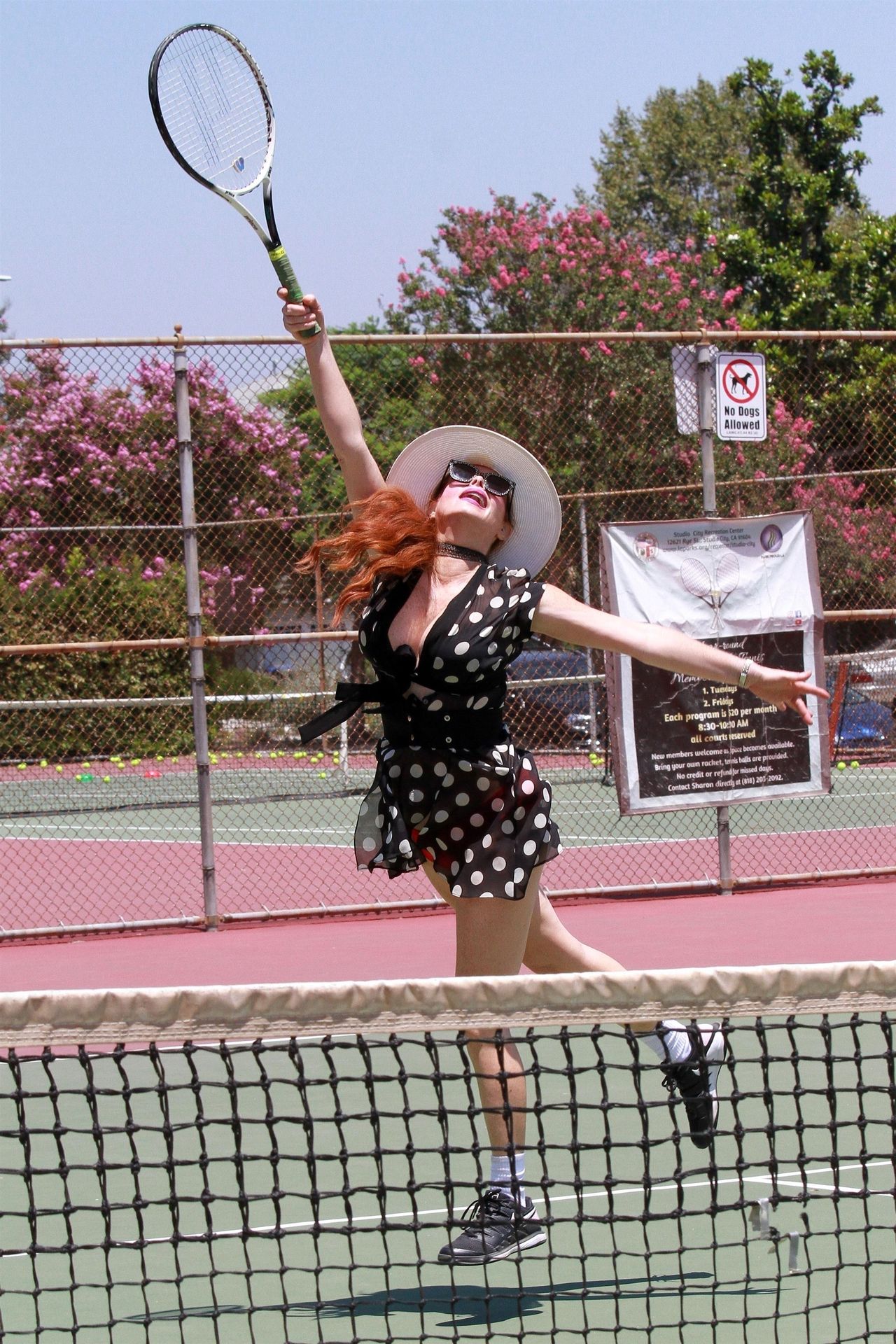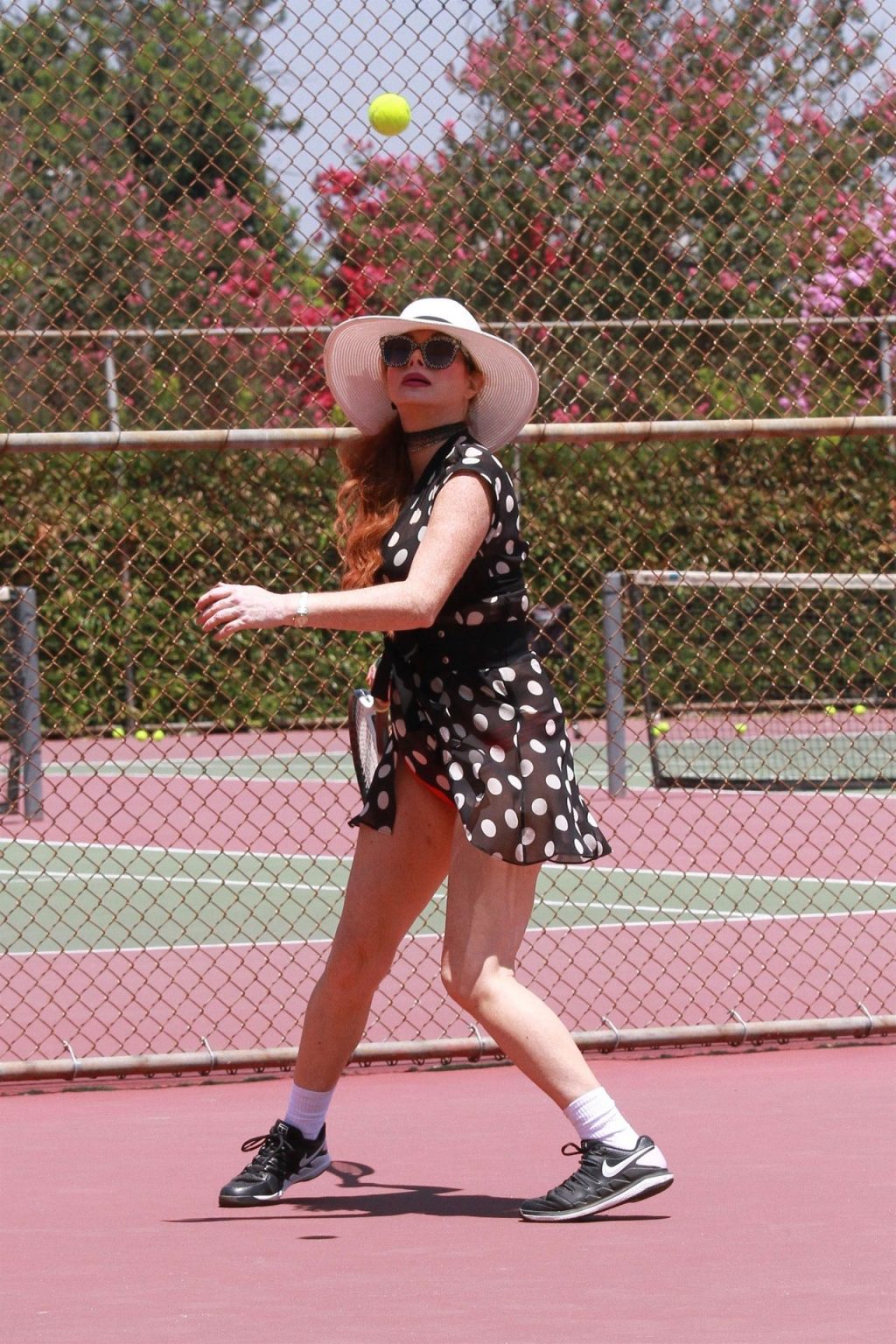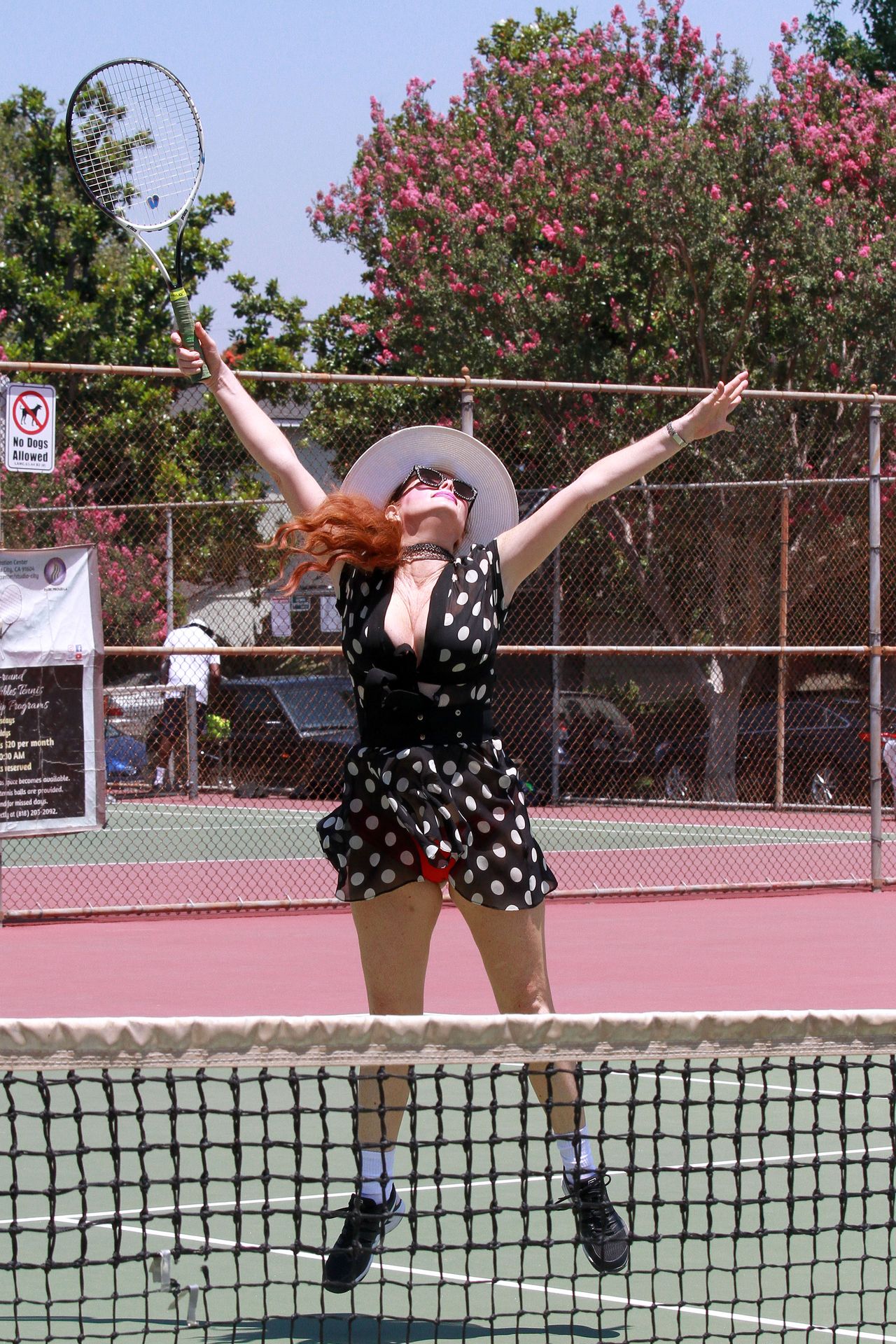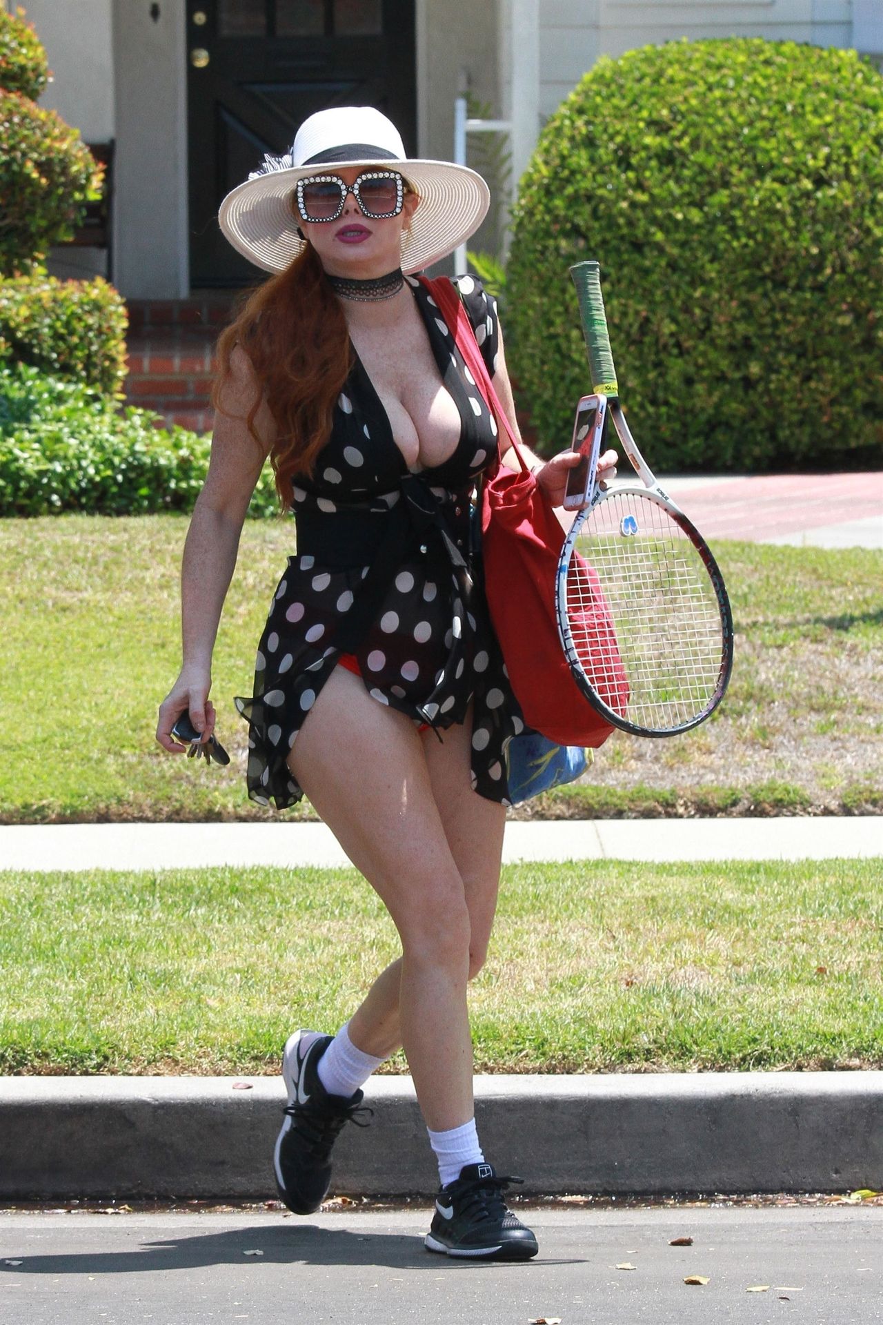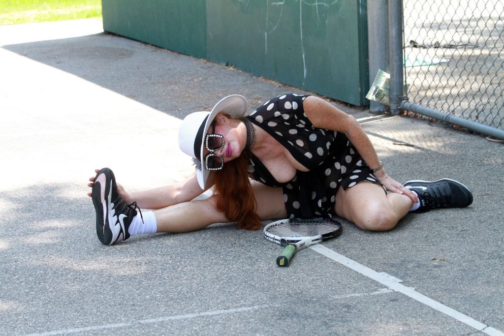 L’actrice exhibe une nouvelle tenue pour les courts et un décolleté prononcé. Elle s’amuse à frapper des balles et fait son entraînement.