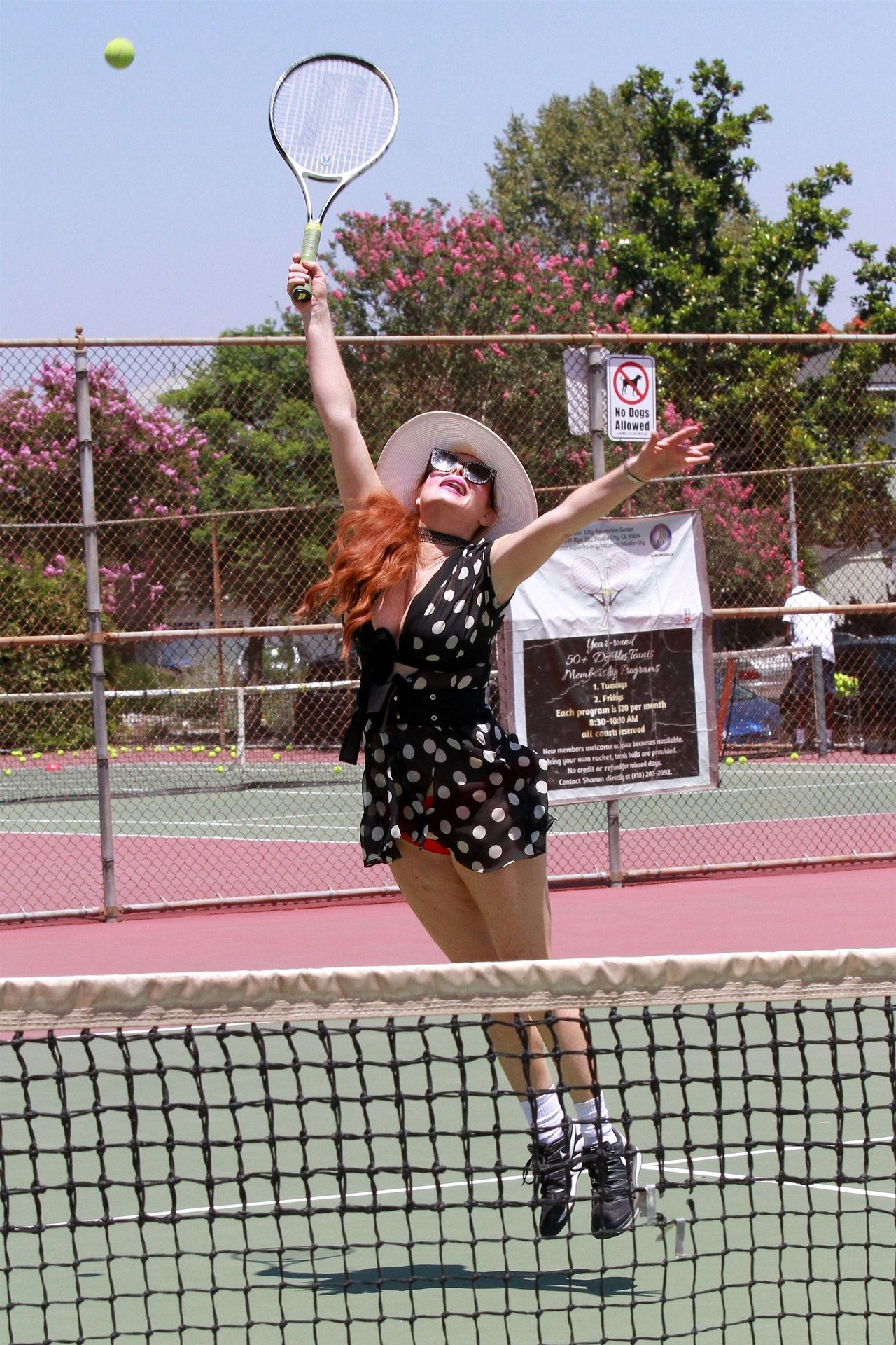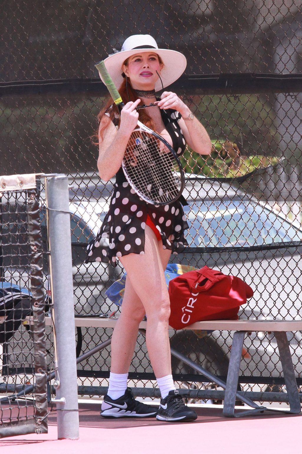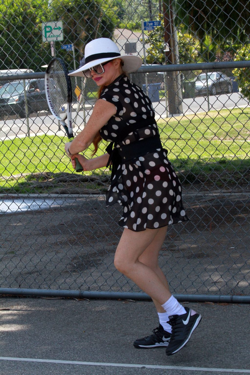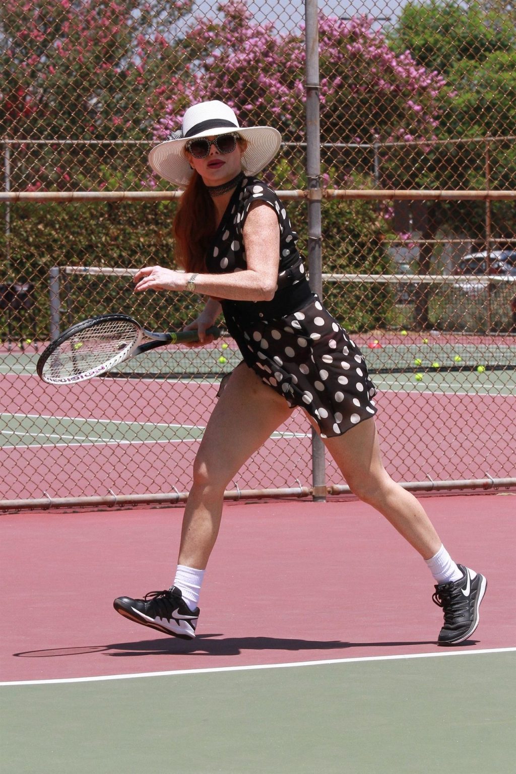 L’actrice exhibe une nouvelle tenue pour les courts et un décolleté prononcé. Elle s’amuse à frapper des balles et fait son entraînement.