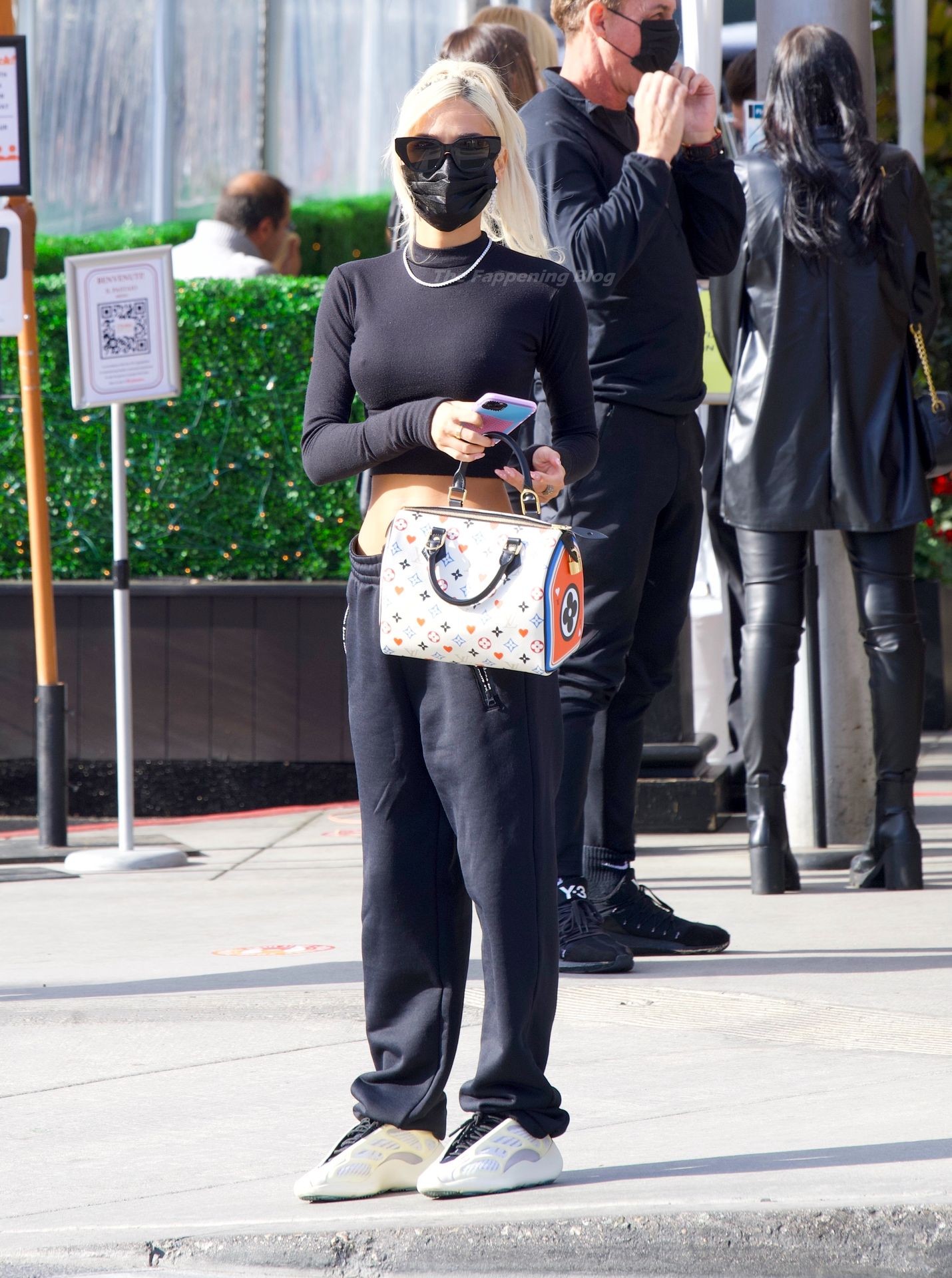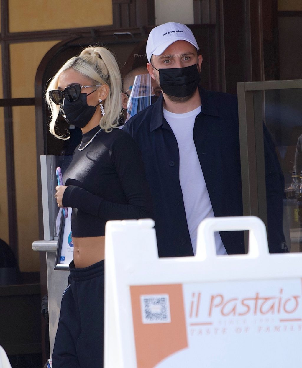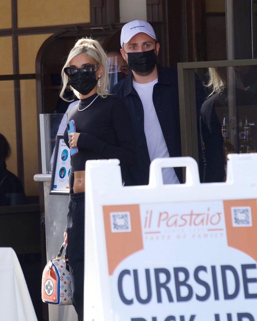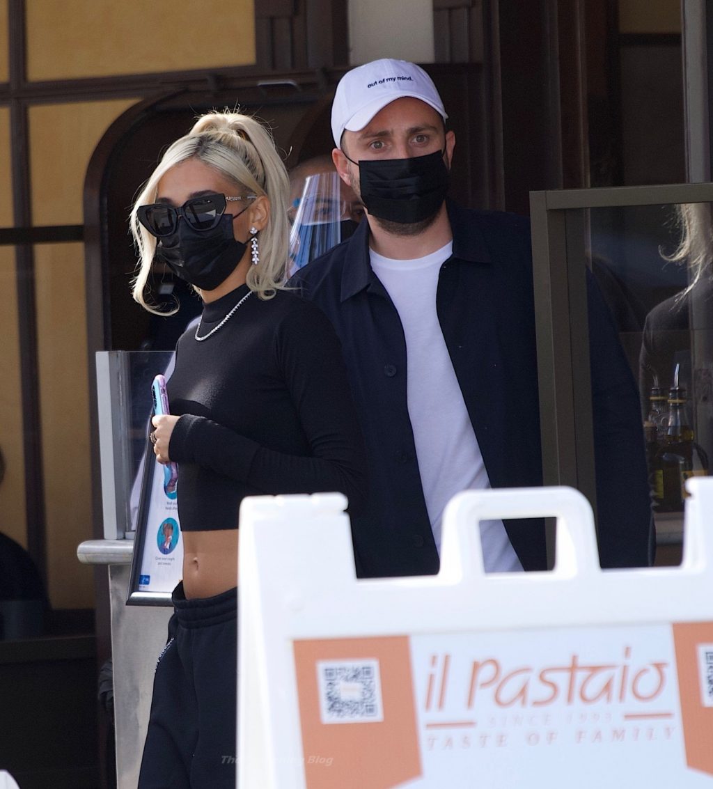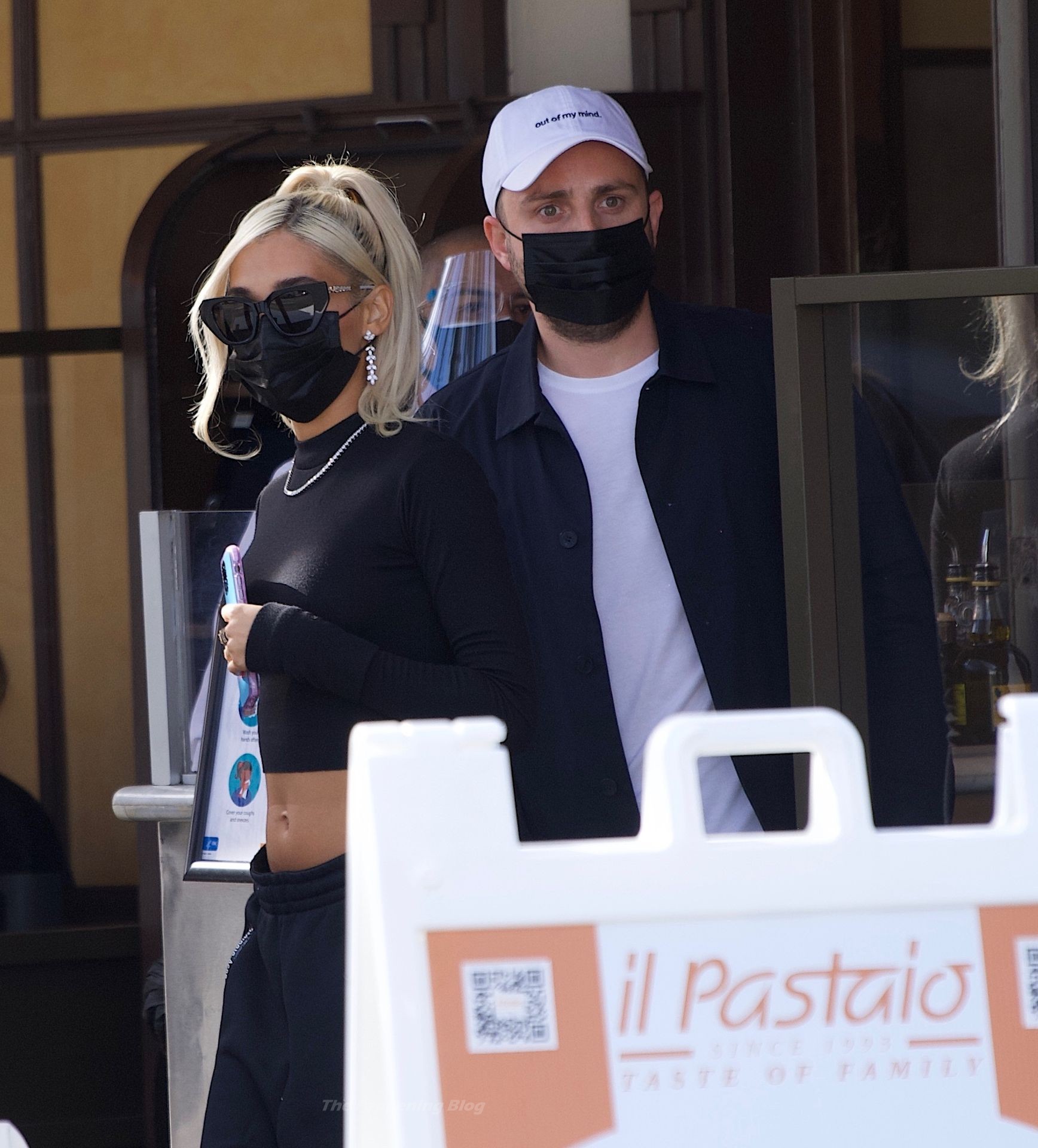 Mannequin/chanteuse Pia Mia exhibe ses abdos toniques après un déjeuner avec un homme mystérieux à Il Pastaio, 02/04/2021.