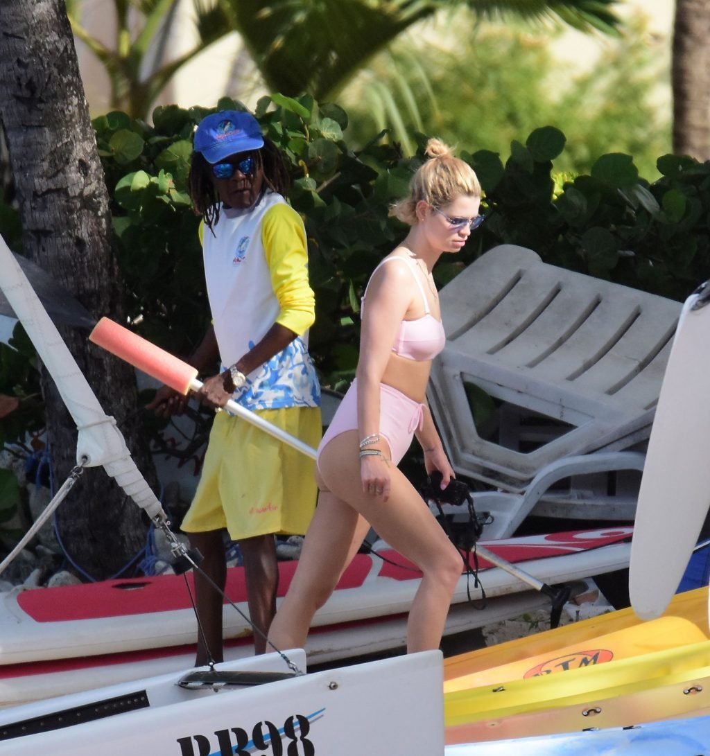 Le mannequin et chanteuse Pixie Geldof (28 ans) est photographiée en train de faire du paddle à la plage de la Barbade, 12/07/2018.