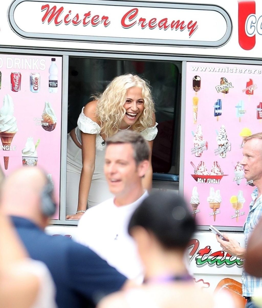 Pixie Lott fait une apparition très audacieuse en risquant un accident de garde-robe tout en servant des glaces en direct dans The One Show pendant l’heure de grande écoute – Londres, 25/07/2019.