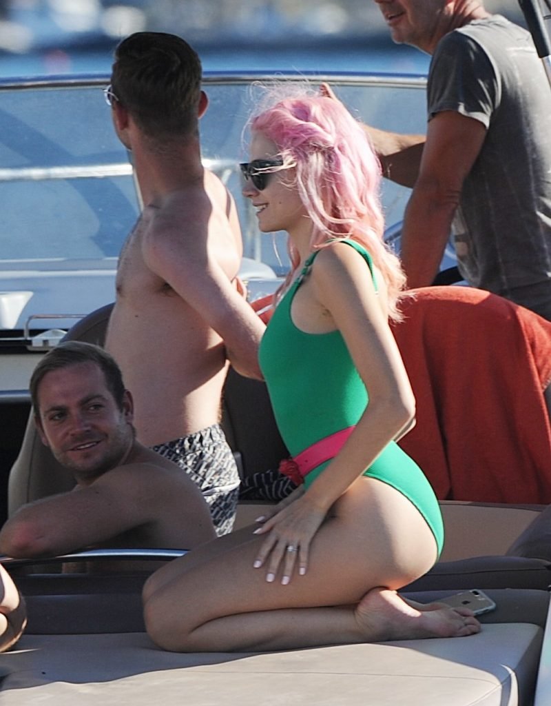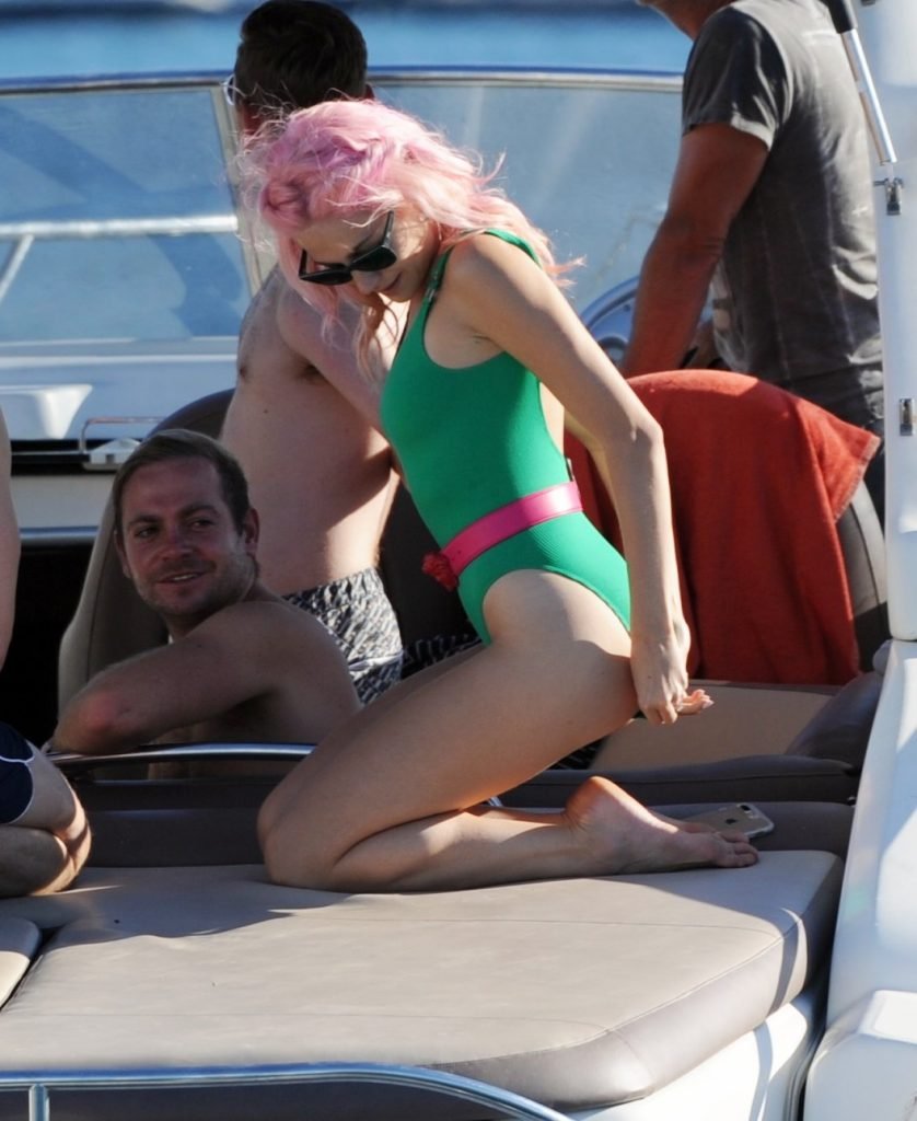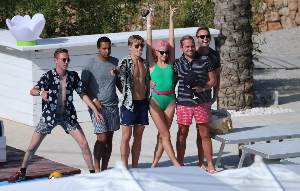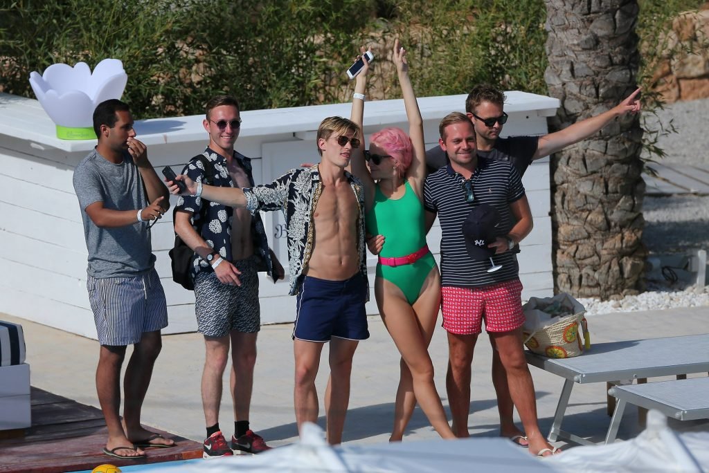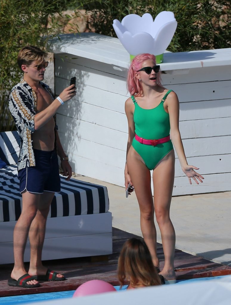 Pixie Lott porte un maillot de bain vert en vacances à Ibiza, 01/07/2017. Pixie Lott est une chanteuse/auteure-compositrice, actrice de Londres. Âge : 26 ans.