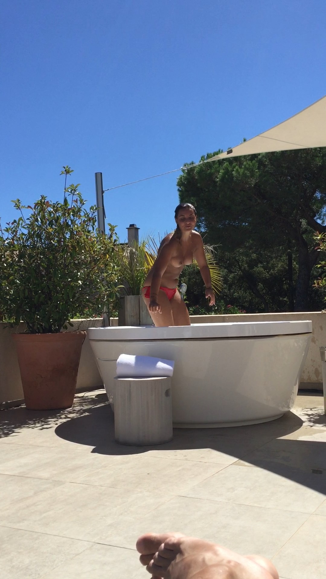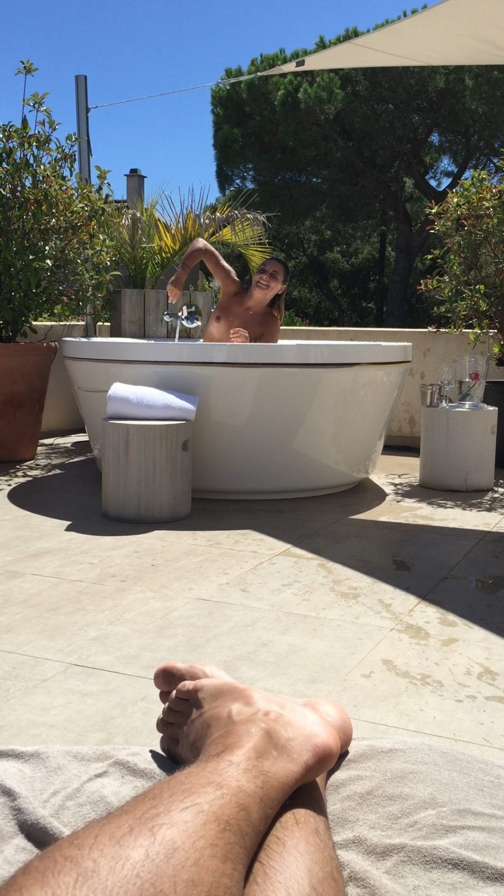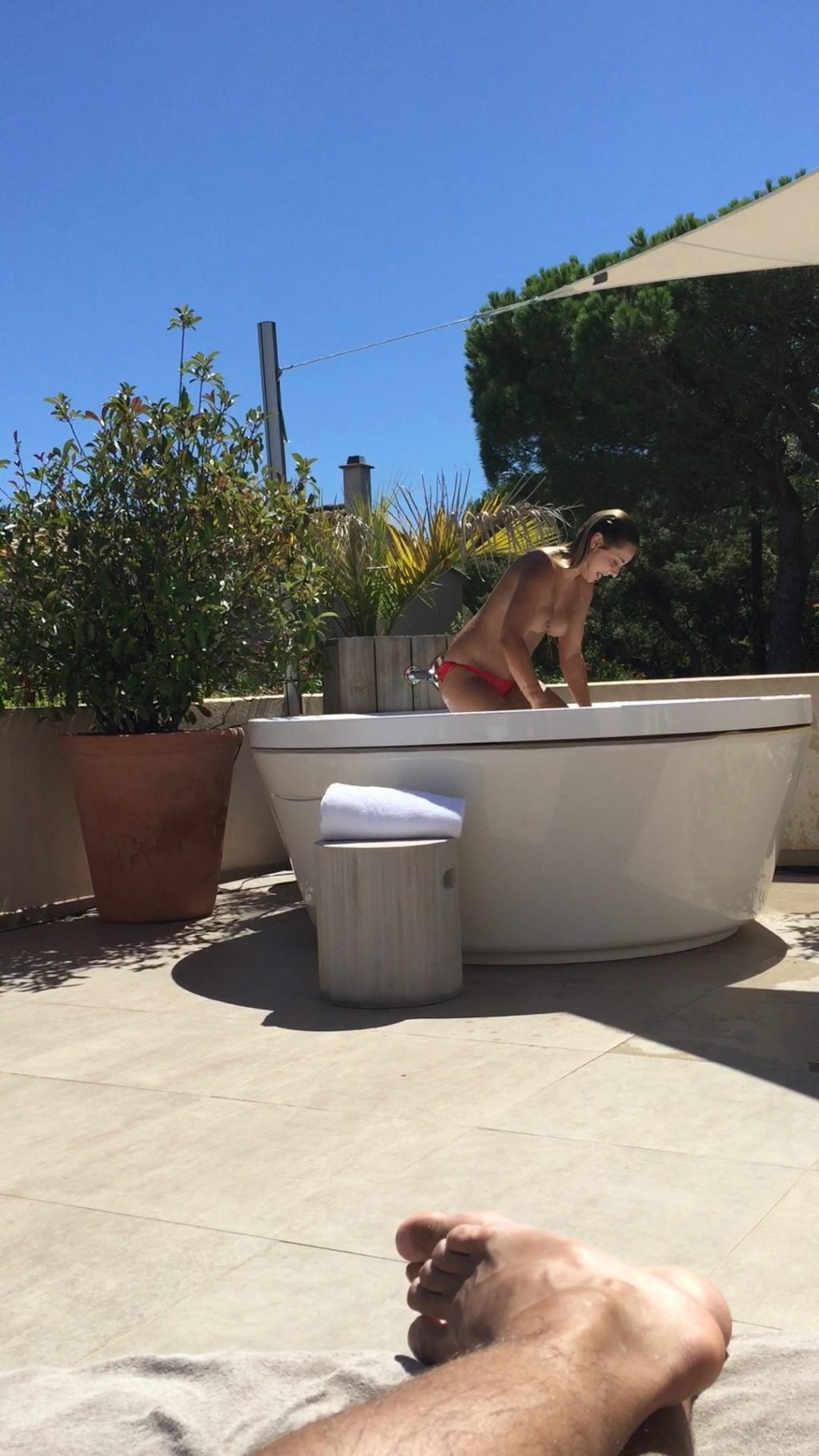 Découvrez les photos nues de Priscilla Betti (captures d’écran) et la vidéo fuitée du Fappening. Cette femme joyeuse a montré ses seins et ses fesses magnifiques tout en s’amusant dans le bain en plein air.