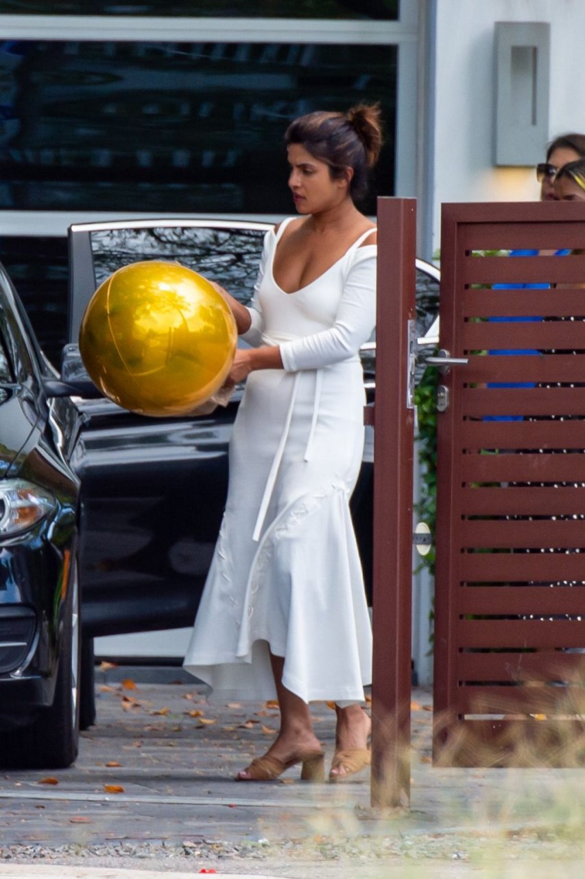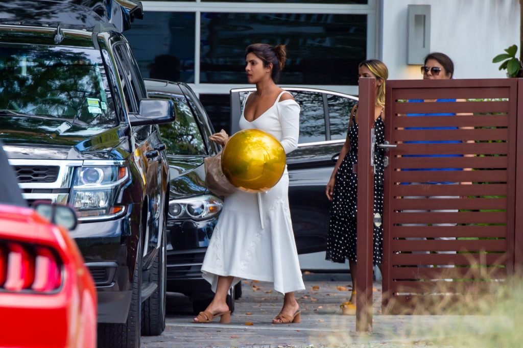 L’actrice Priyanka Chopra dit au revoir à sa famille après avoir célébré son 37e anniversaire à Miami, le 20/07/2019. La star du grand écran, qui a épousé le chanteur Nick Jonas l’année dernière, a passé quelques jours à faire la fête avec ses proches avant de partir avec des ballons et d’autres cadeaux.