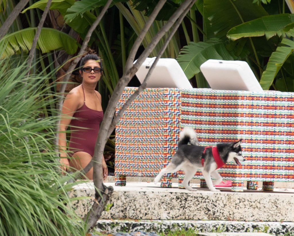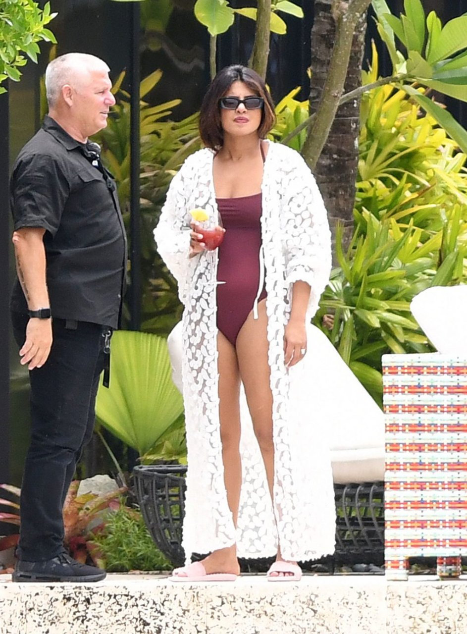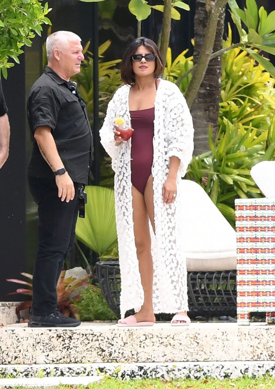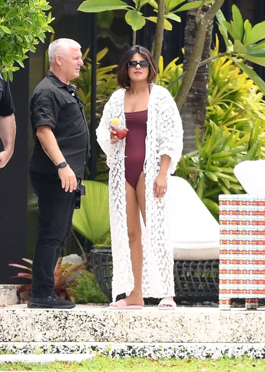 Priyanka Chopra, Sophie Turner, et des amis profitent d’une journée à la piscine après leur arrivée à Miami avec The Jonas Brothers, 08/03/2019.