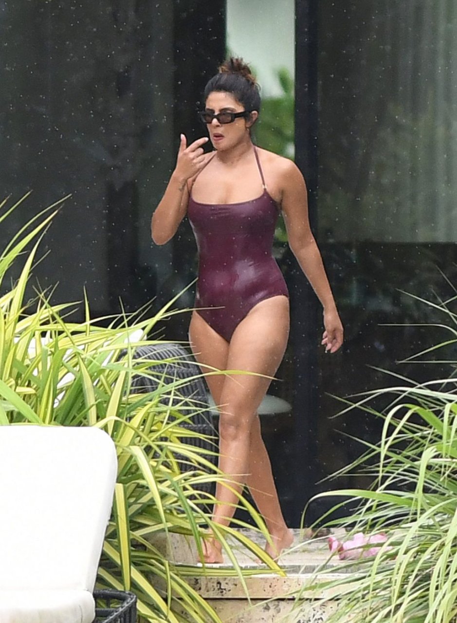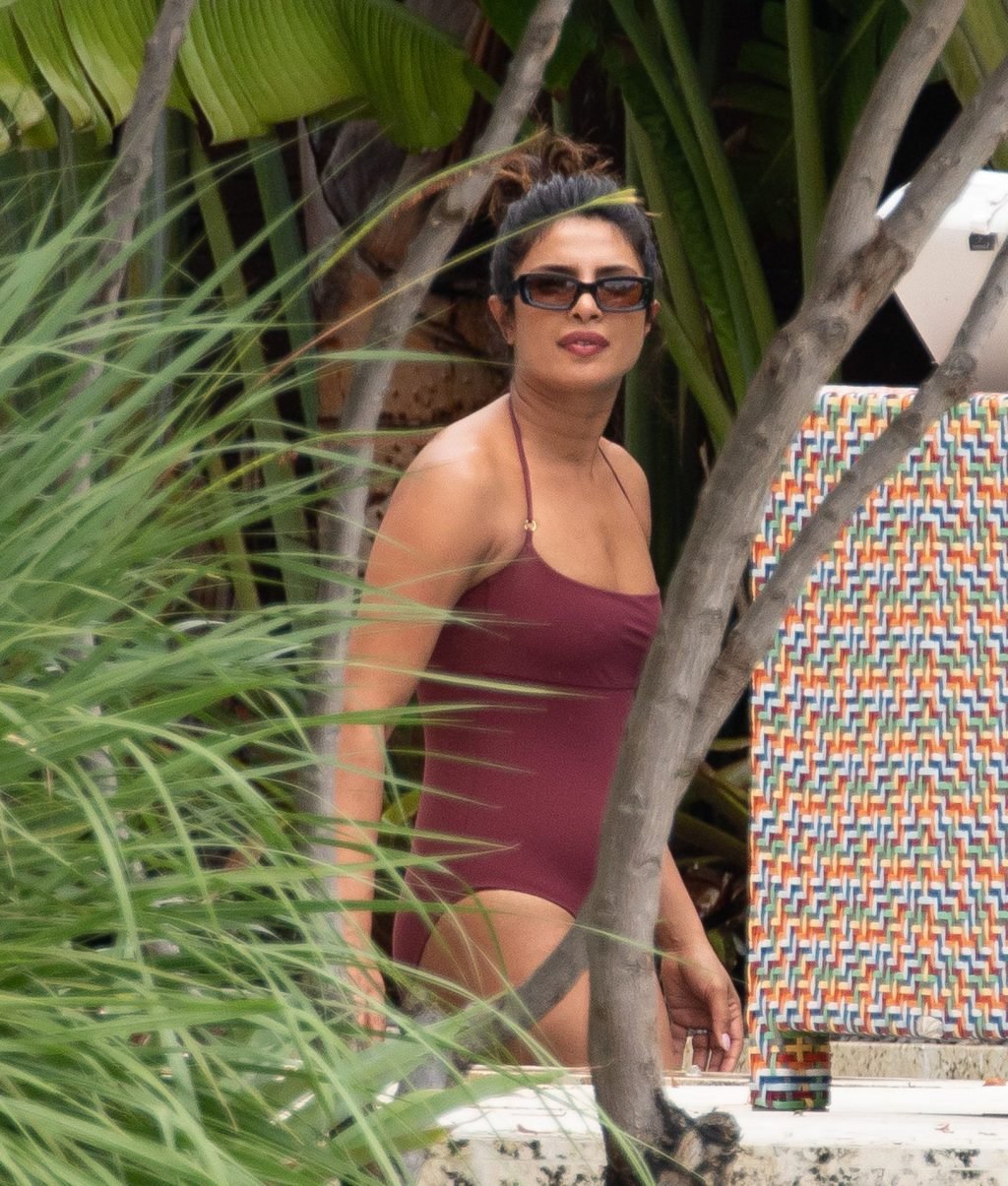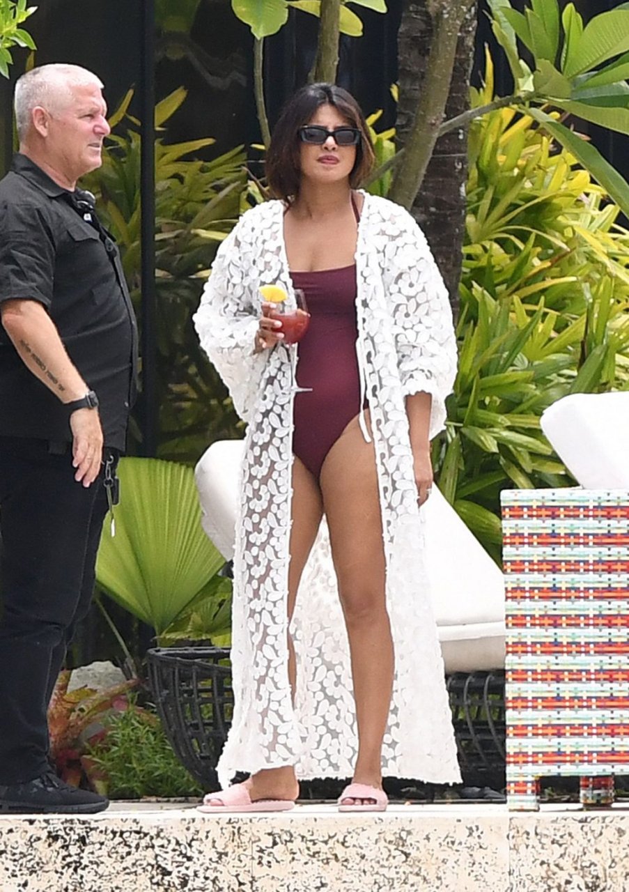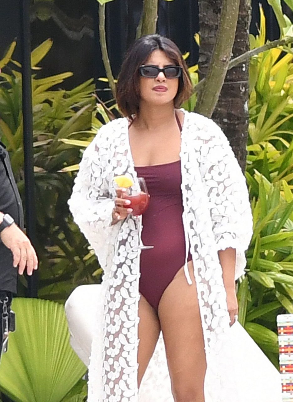Priyanka Chopra, Sophie Turner, et des amis profitent d’une journée à la piscine après leur arrivée à Miami avec The Jonas Brothers, 08/03/2019.