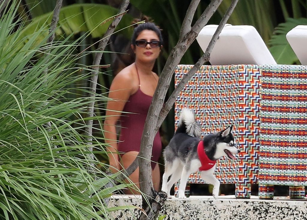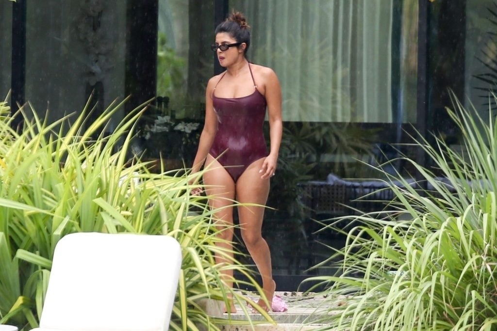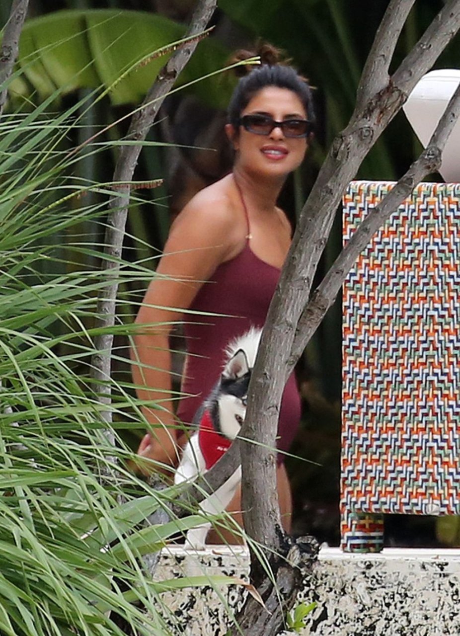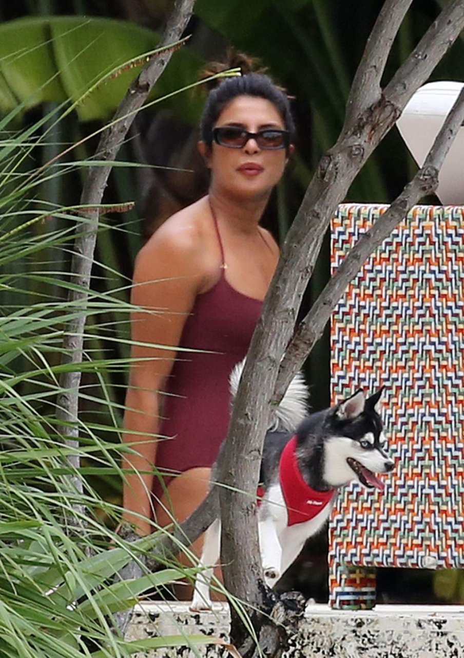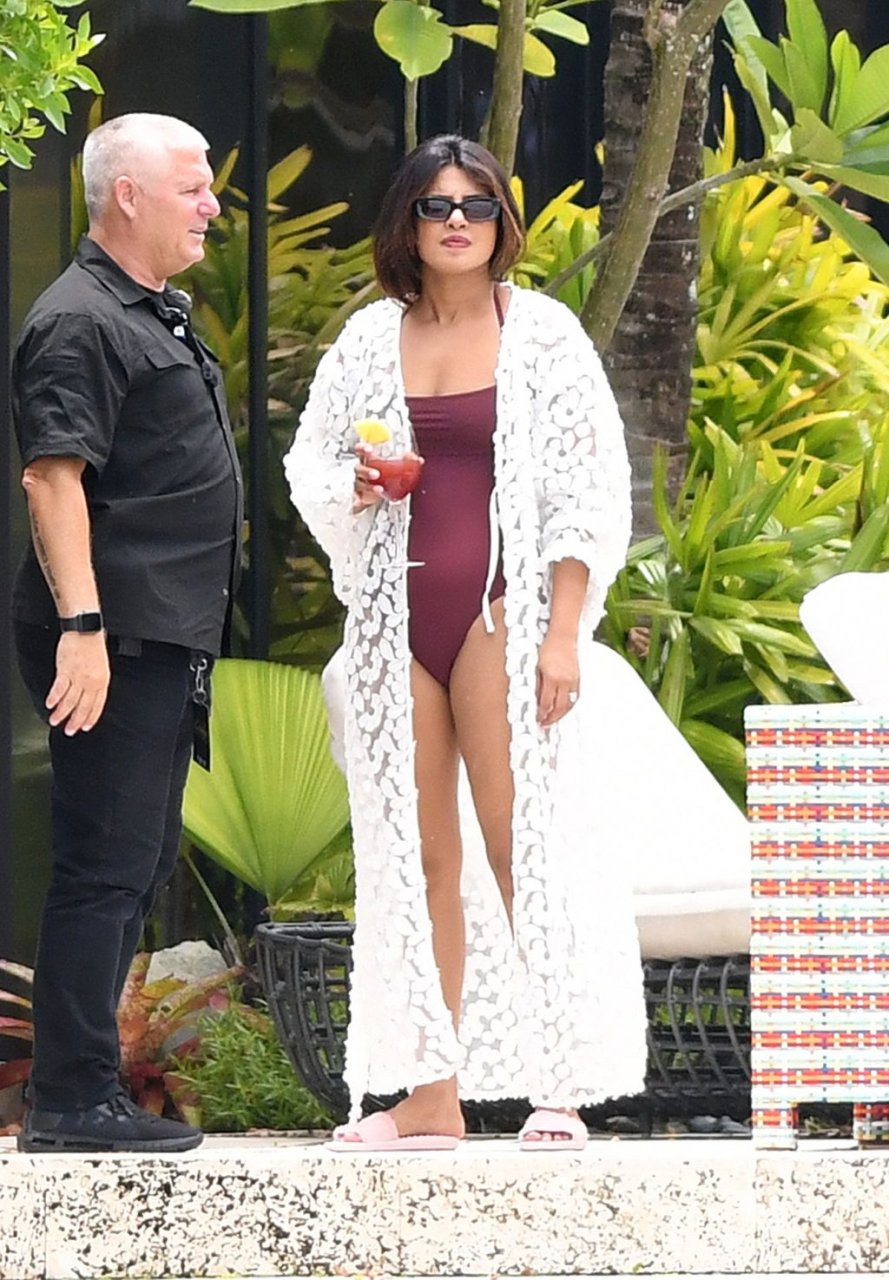 Priyanka Chopra, Sophie Turner, et des amis profitent d’une journée à la piscine après leur arrivée à Miami avec The Jonas Brothers, 08/03/2019.
