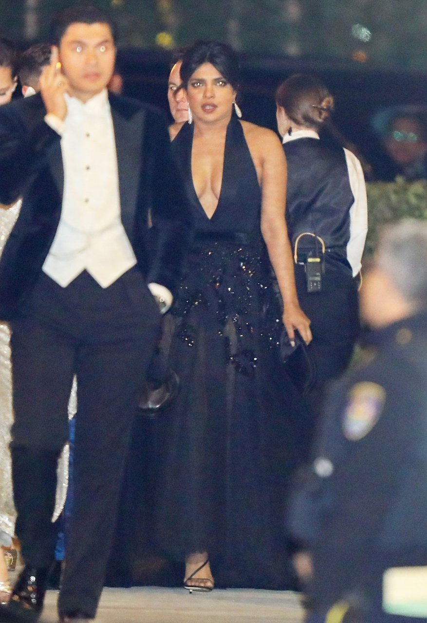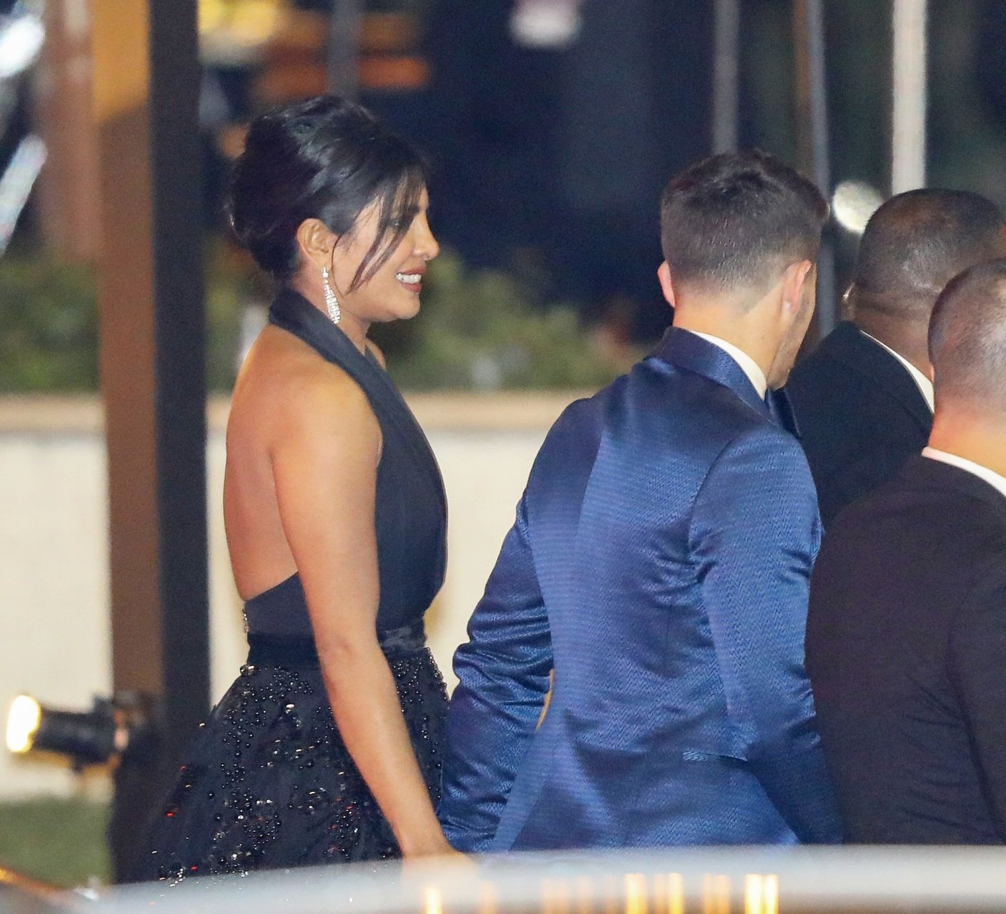 L’actrice Priyanka Chopra porte une robe sexy décolletée tout en étant accompagnée de son mari Nick Jonas à la Soirée Vanity Fair Oscar 2019 à Beverly Hills, le 24/02/2019. L’événement s’est tenu au Wallis Annenberg Center for the Performing Arts.