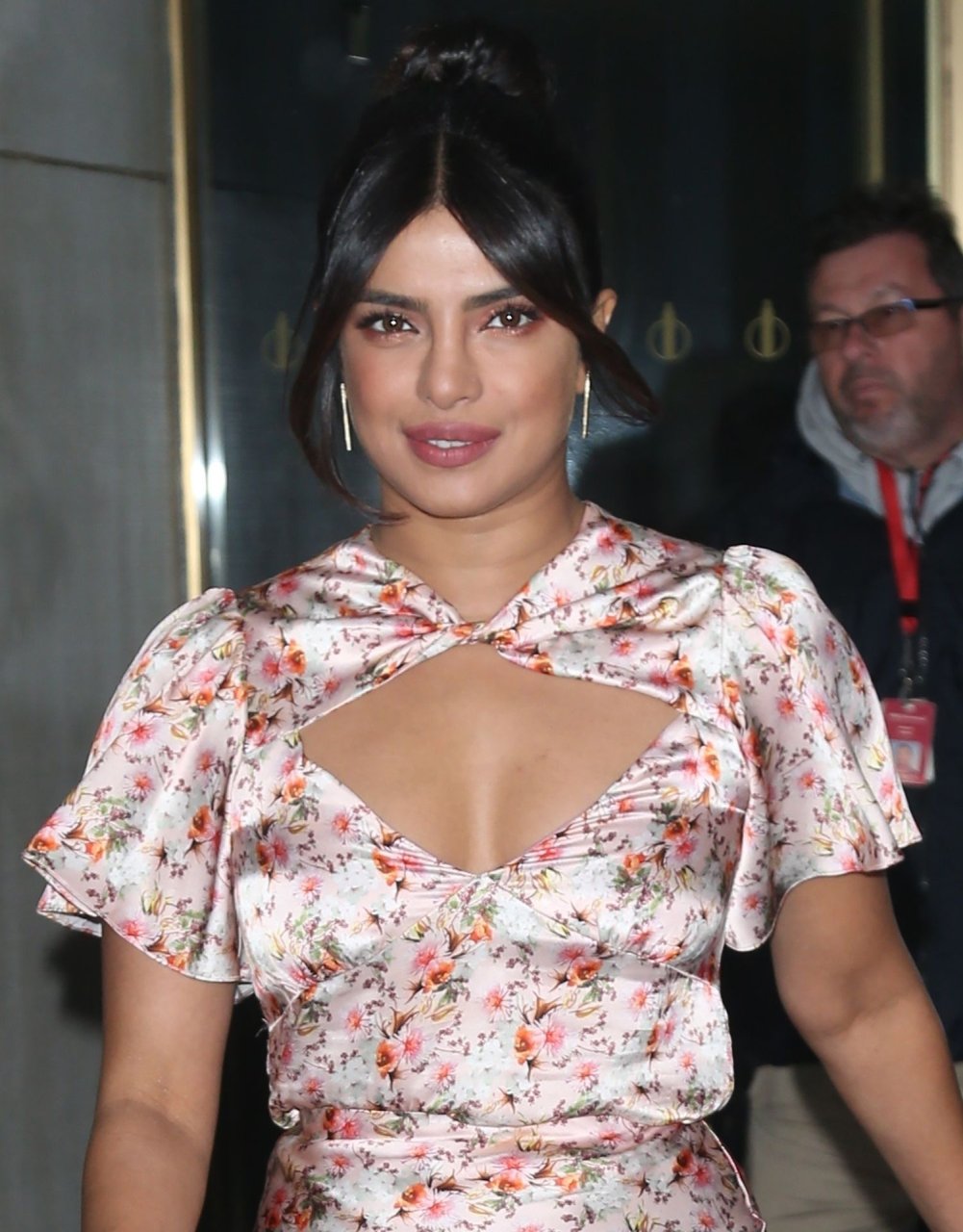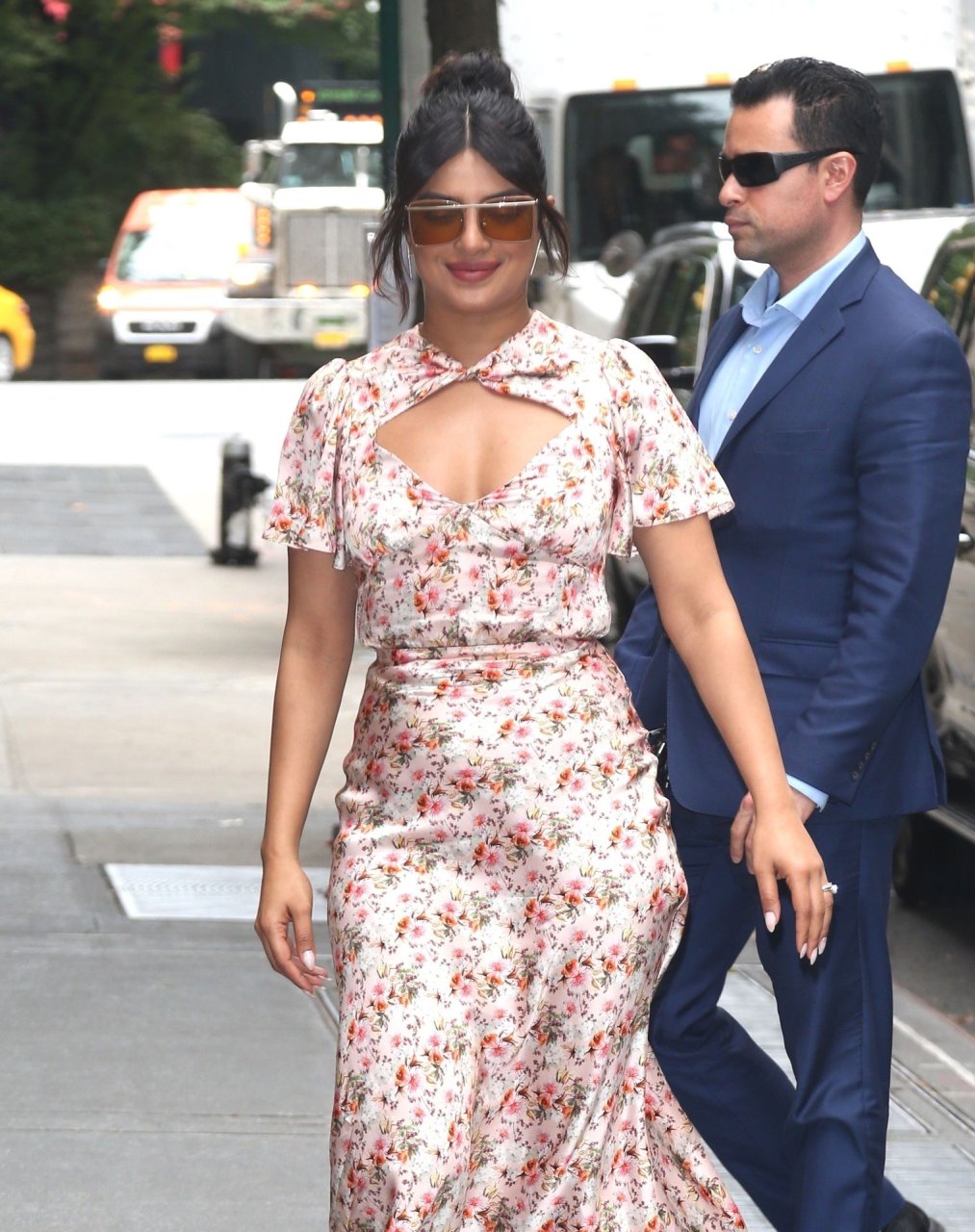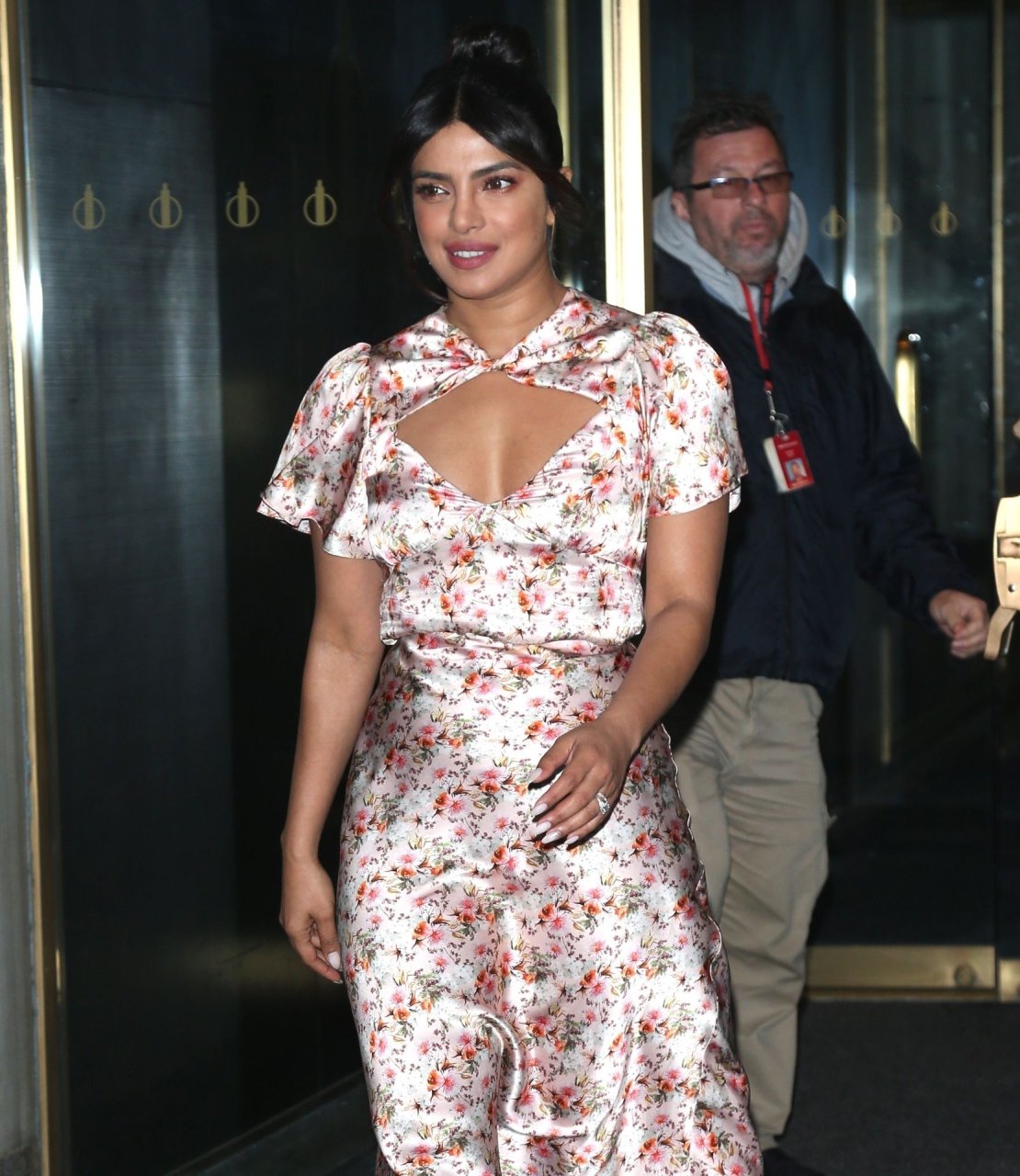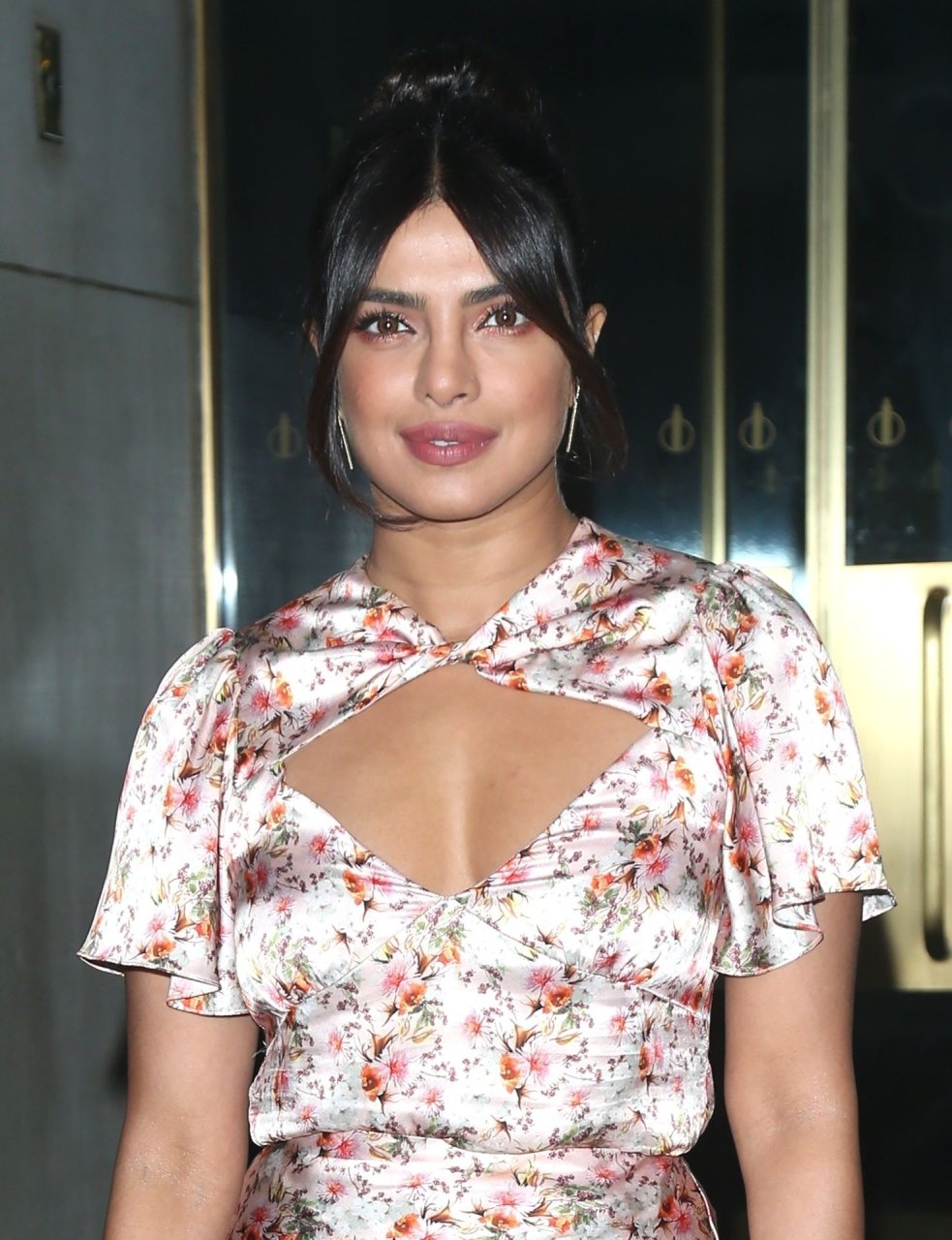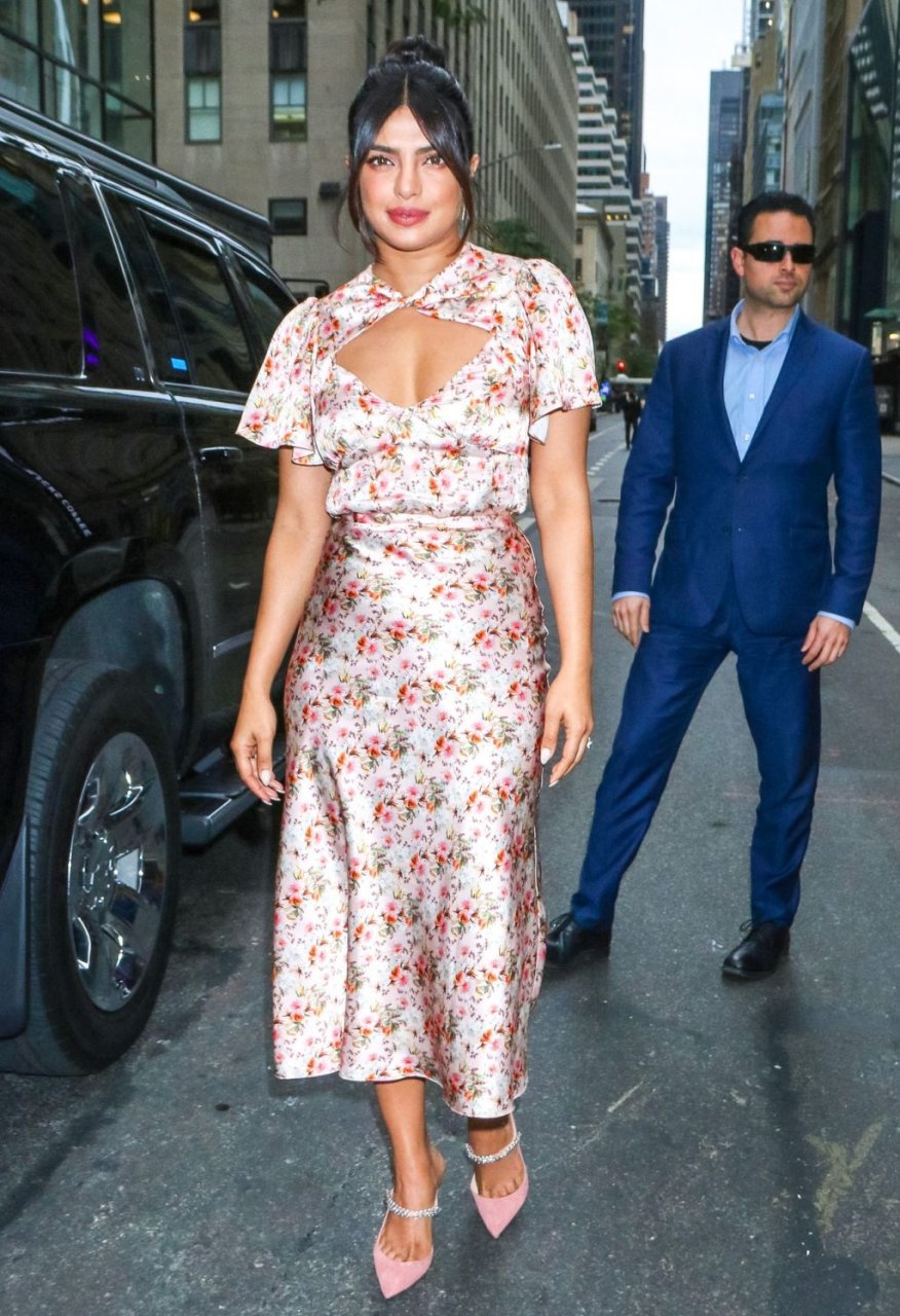 L’actrice Priyanka Chopra est magnifique dans une robe fleurie rose alors qu’elle est vue après avoir visité The View à New York, le 08/10/2019.