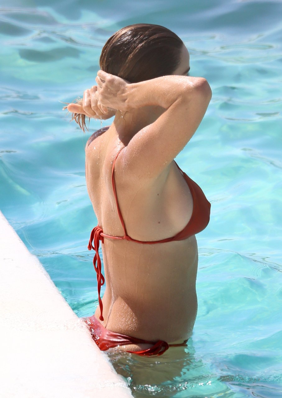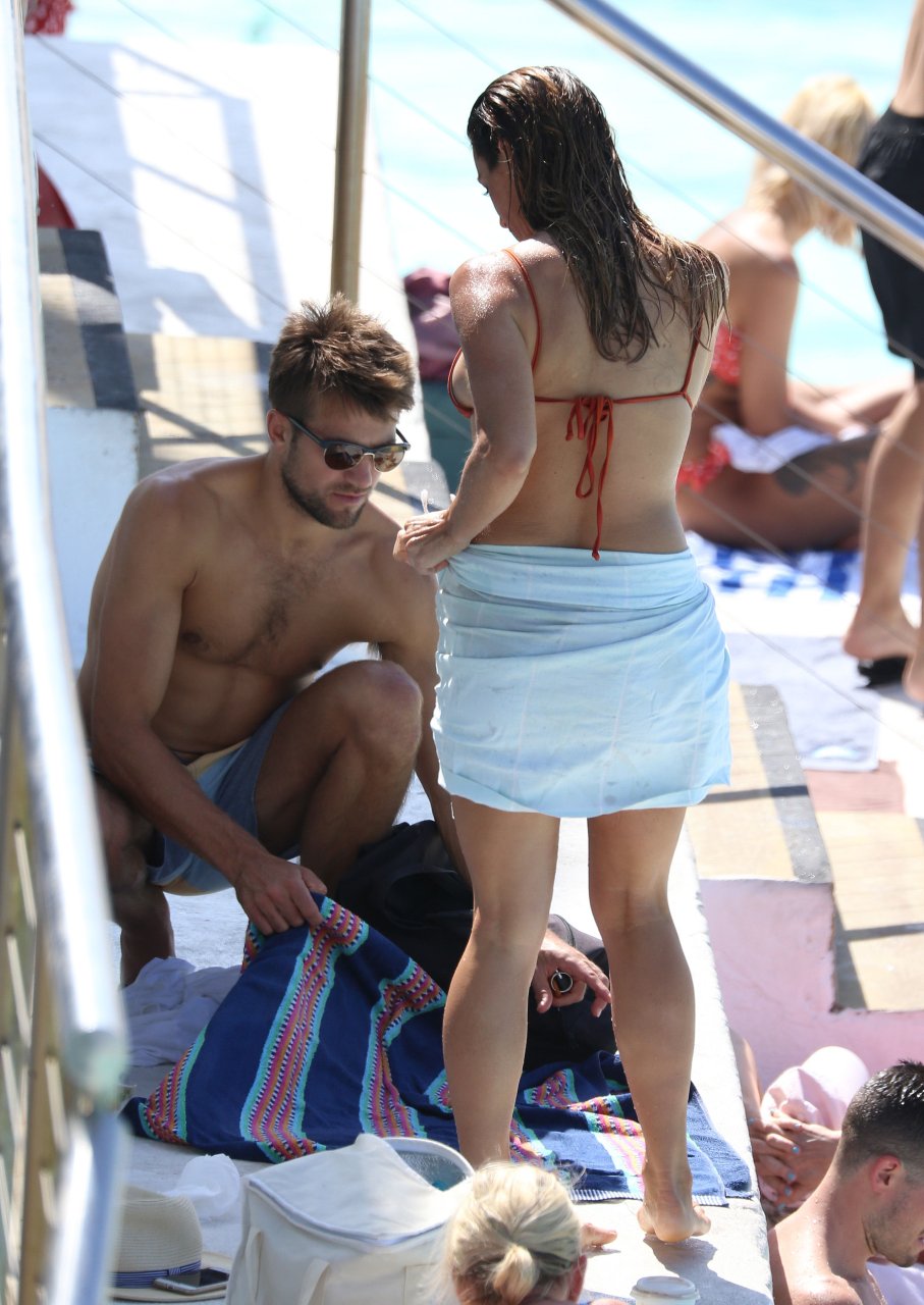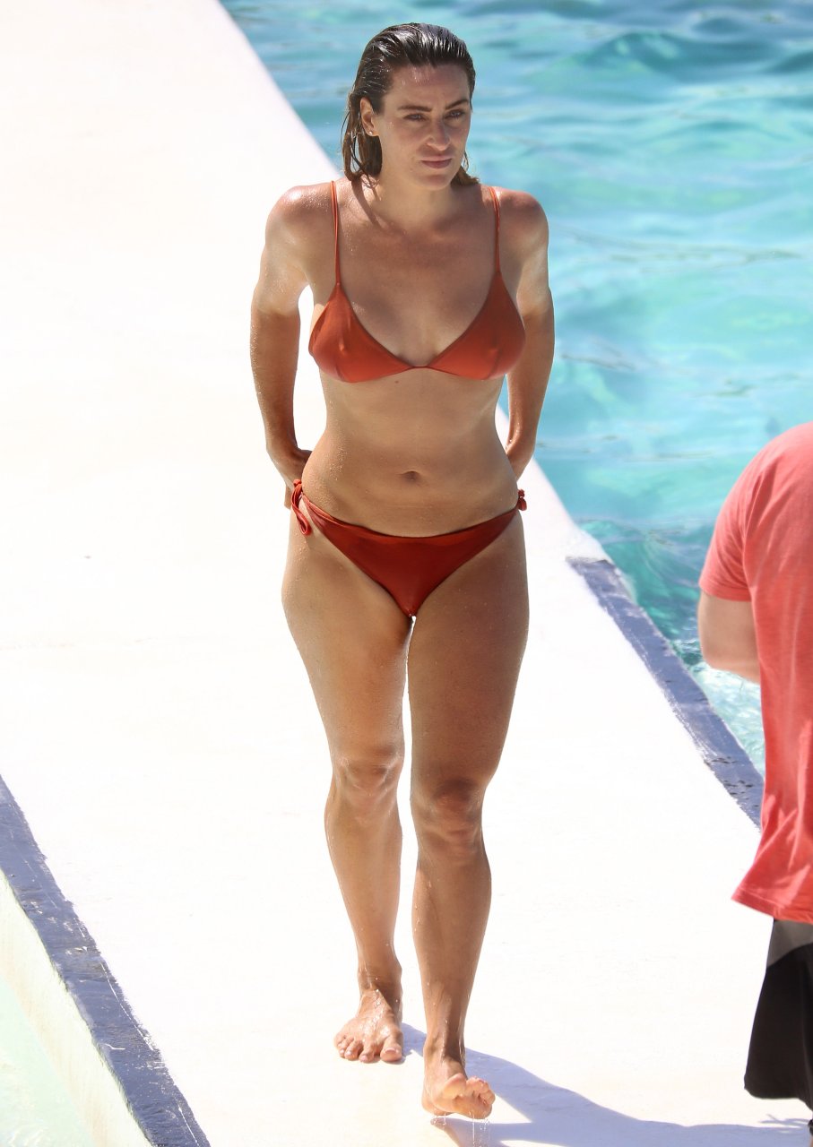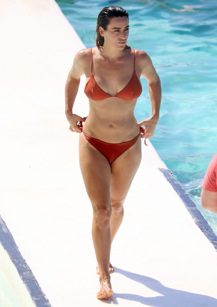 ‘La candidate de « The Bachelor » Rachael Gouvignon exhibe son corps sexy dans un bikini orange lors de ses vacances avec son homme à la piscine Bondi Icebergs à Sydney, le 16/03/2018. Vous pouvez voir ses tétons durs et son gros fessier mouillé.