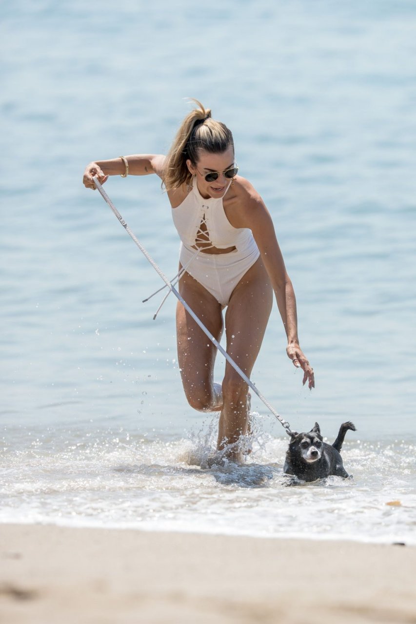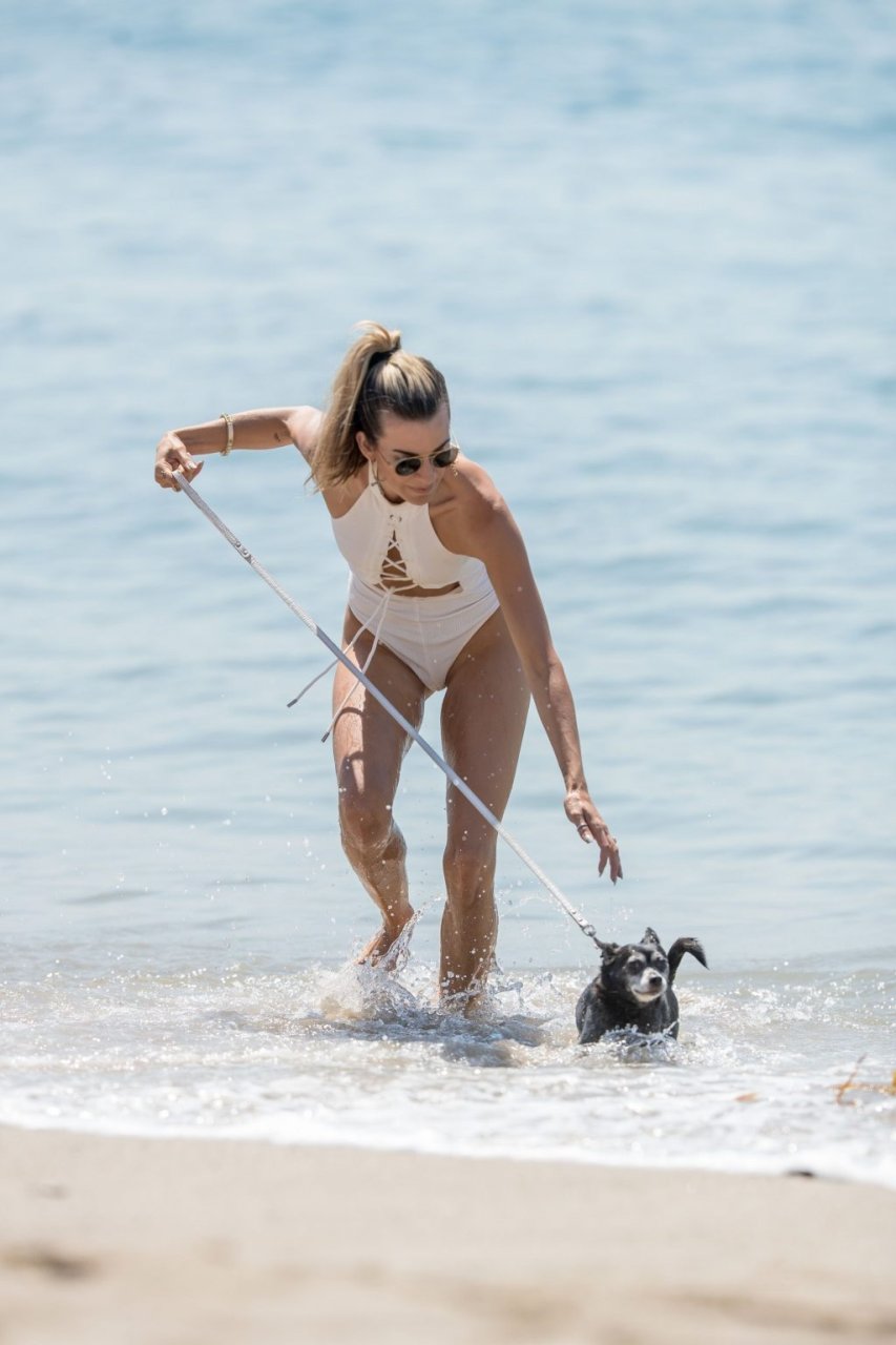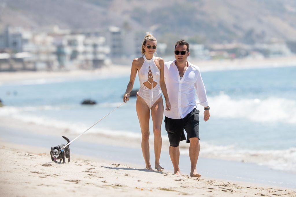 Blonde Rachel McCord s’est rafraîchie dans l’océan pendant qu’elle était à Malibu avec Rick Schirmer et son chien. Elle était heureuse sous le soleil de Malibu après une longue semaine de travail, 03/08/2018.