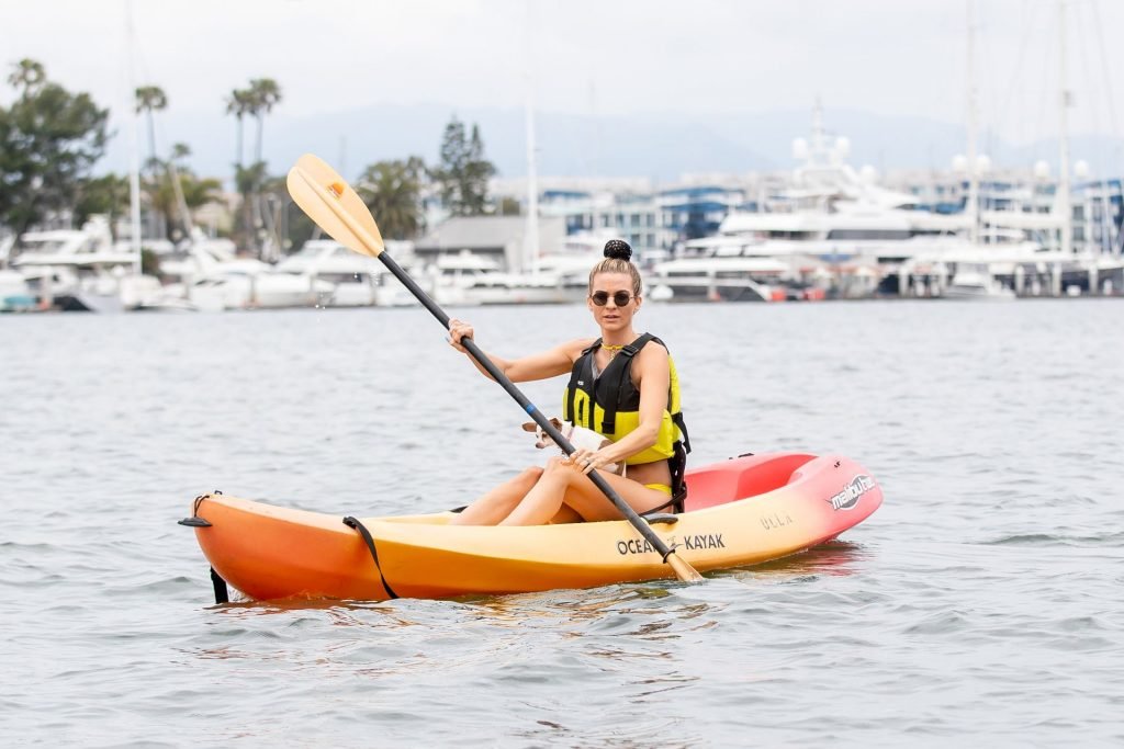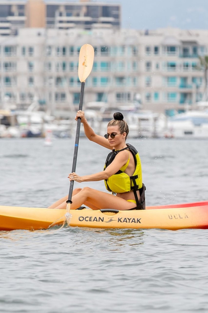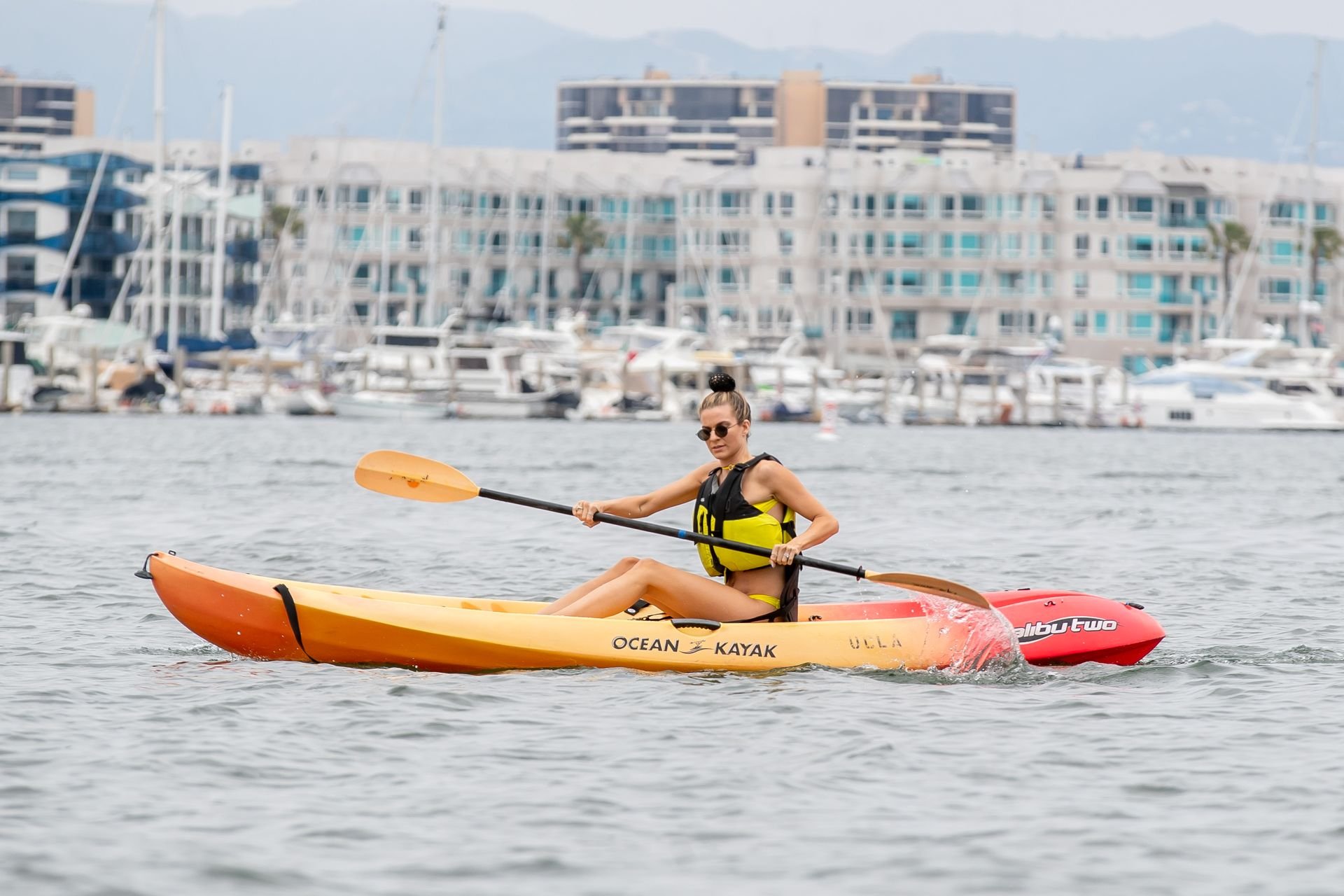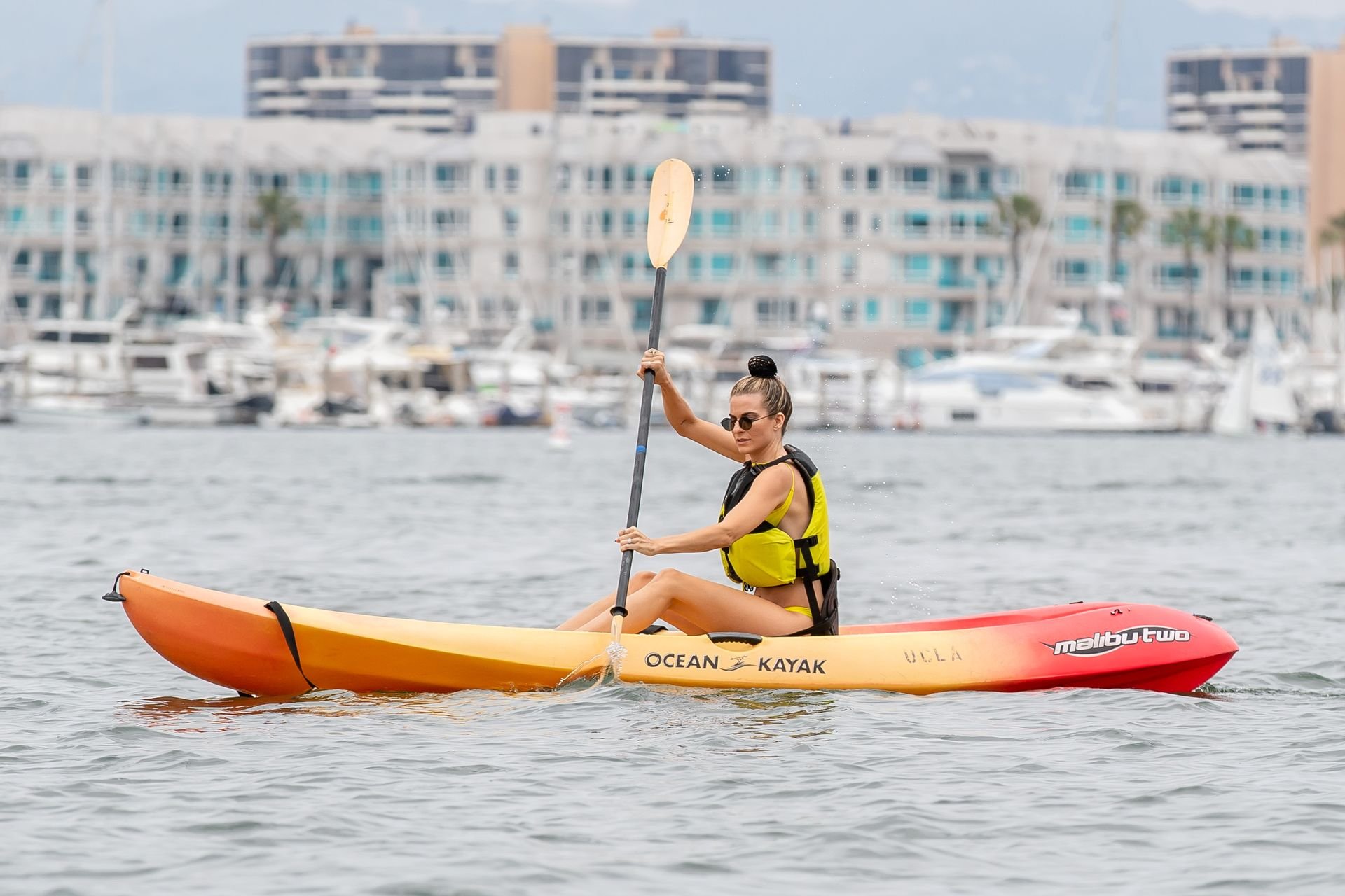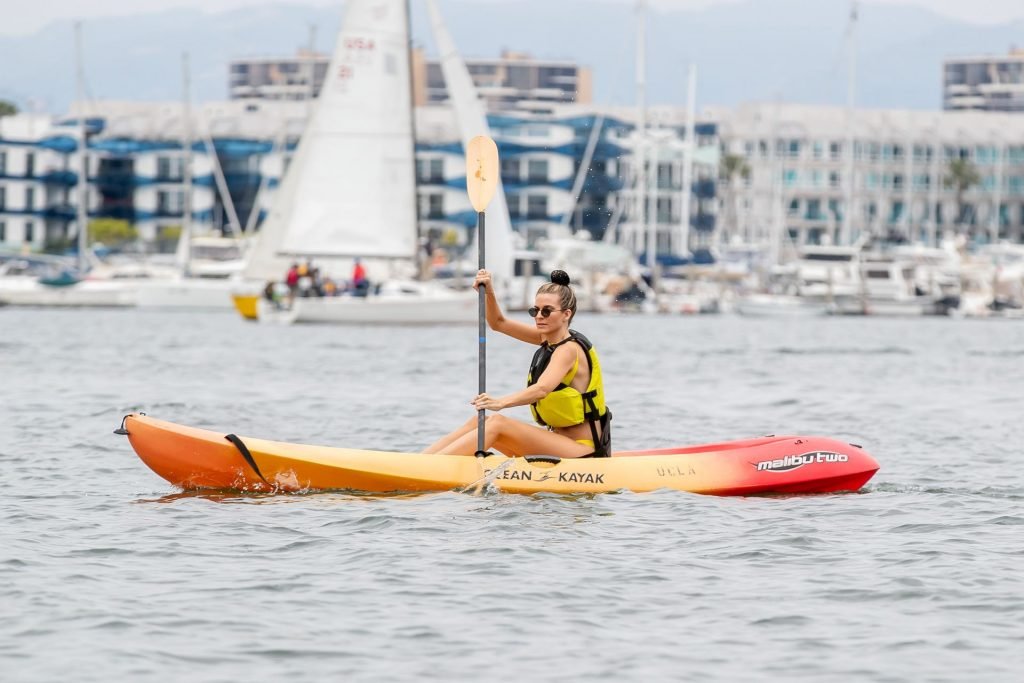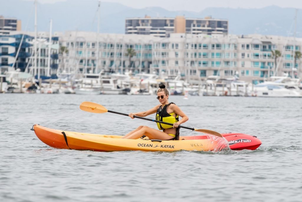 L’influenceuse américaine des réseaux sociaux Rachel McCord a été vue en kayak portant un bikini jaune à Marina Del Rey, le 20/04/2019.