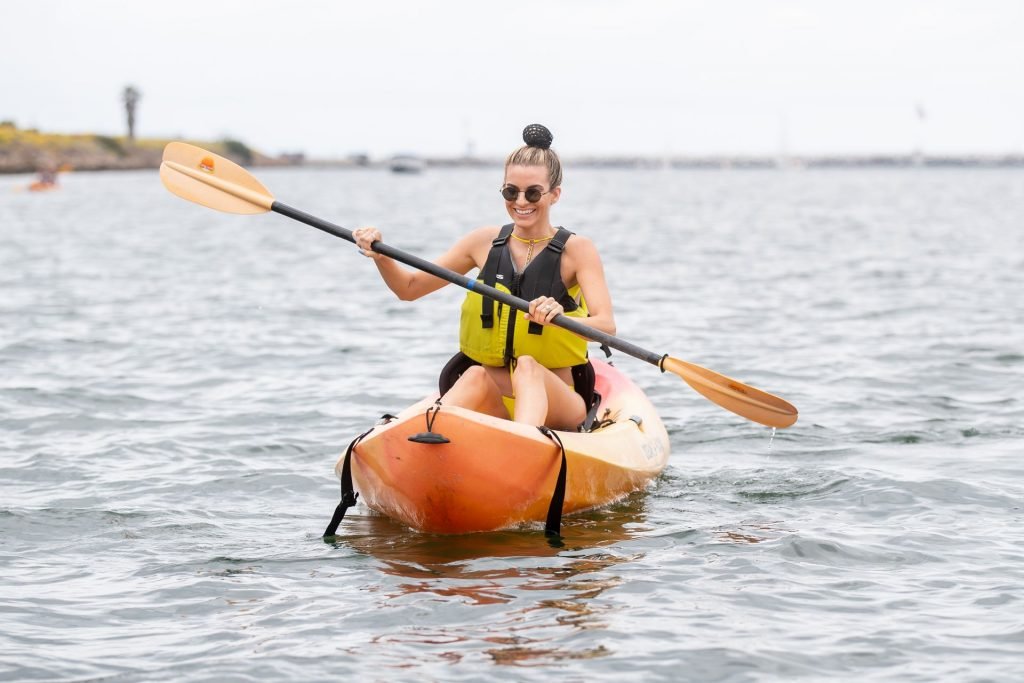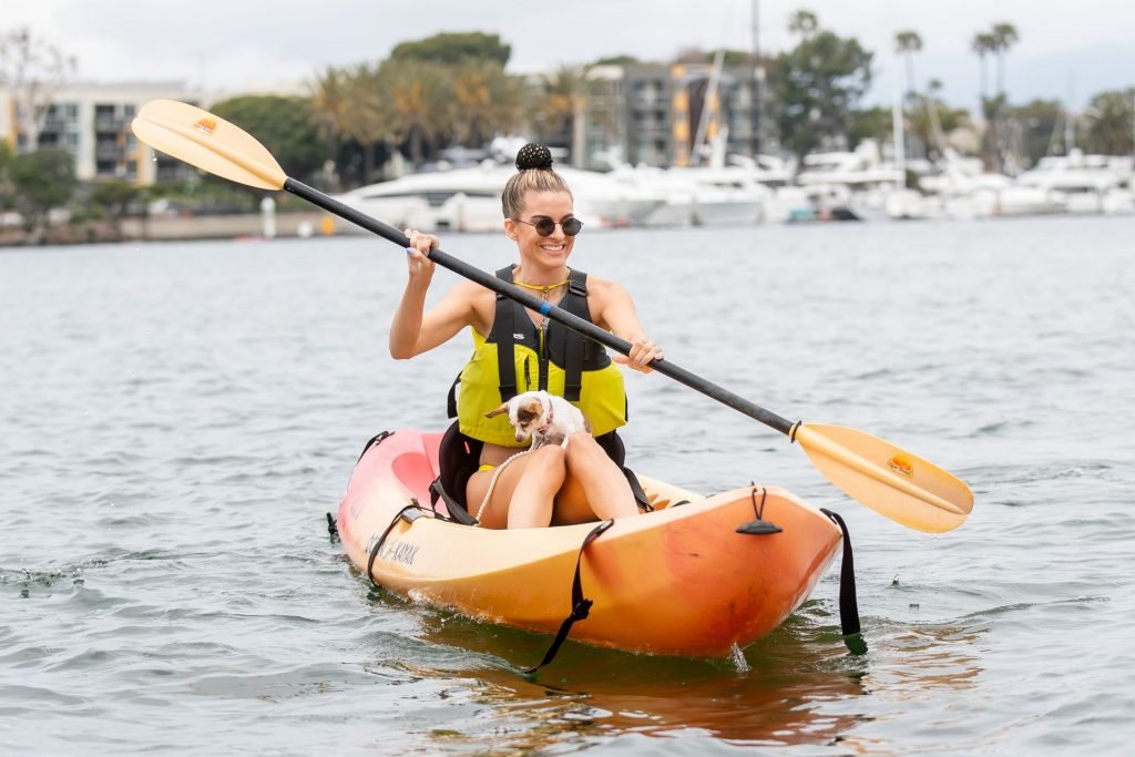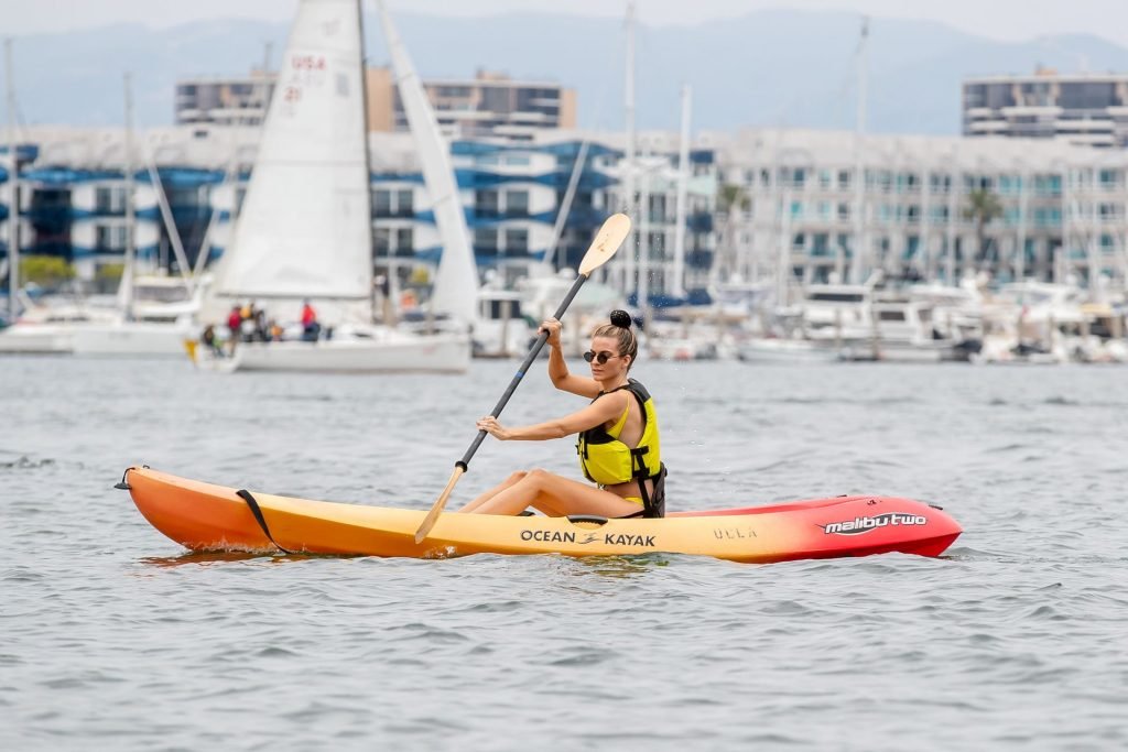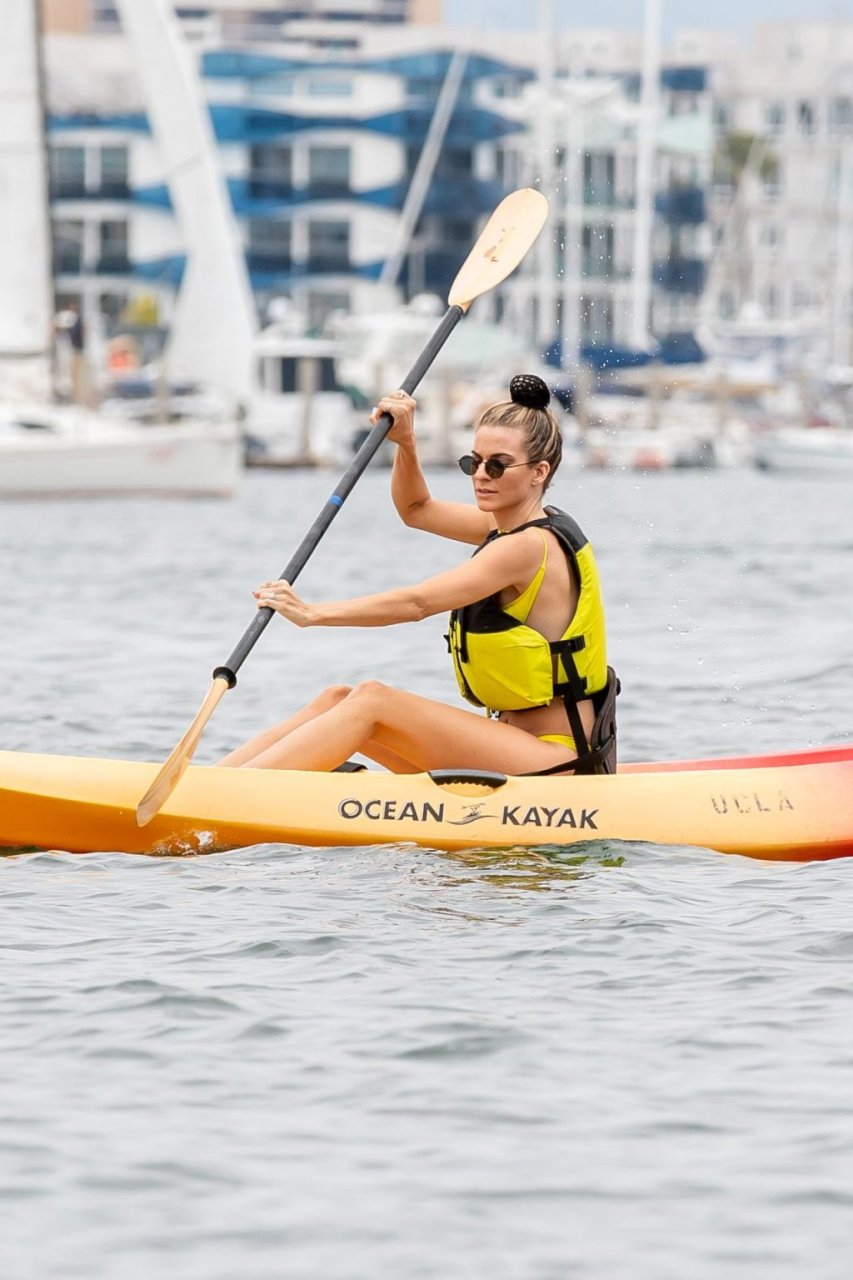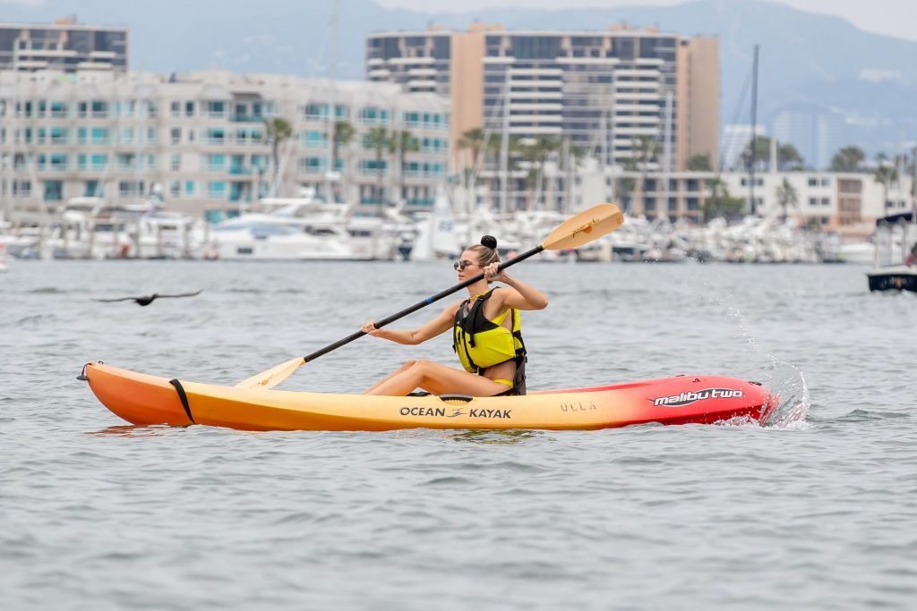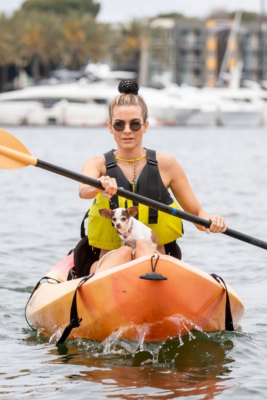 L’influenceuse américaine des réseaux sociaux Rachel McCord a été vue en kayak portant un bikini jaune à Marina Del Rey, le 20/04/2019.