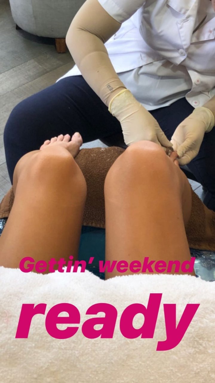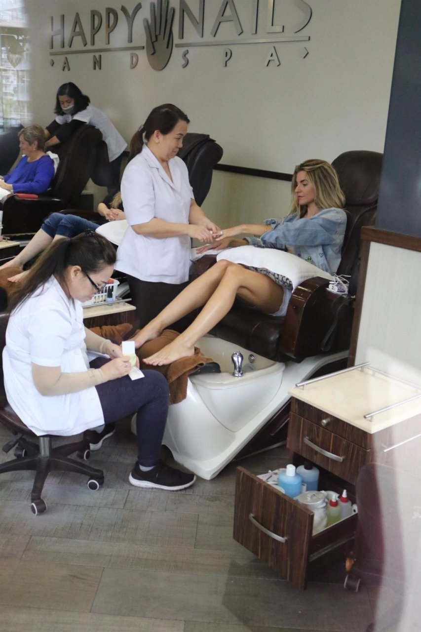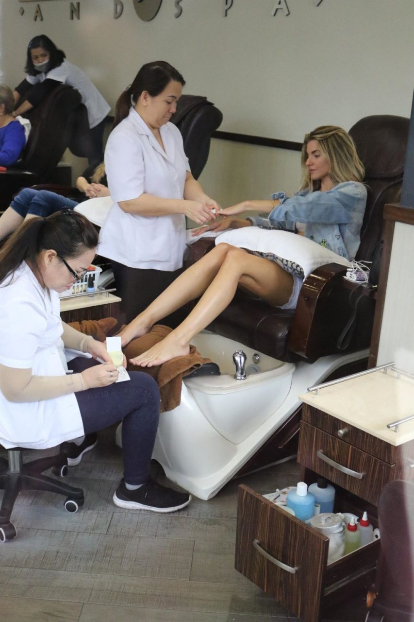 Rachel McCord aux longues jambes se prépare pour le week-end avec un peu de soin et une manucure à Beverly Hills, 19/04/2019.