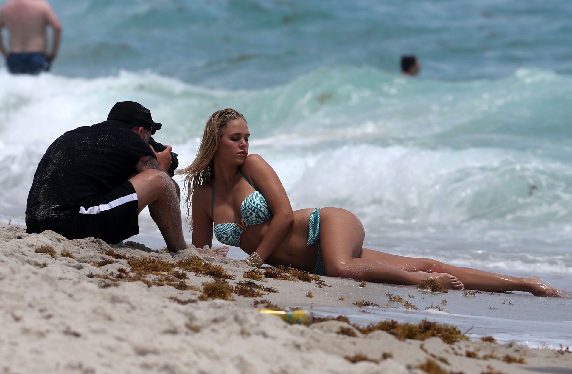 Rachel Vallori et Holly Graves posent sur la plage à Miami, 19/04/2017.