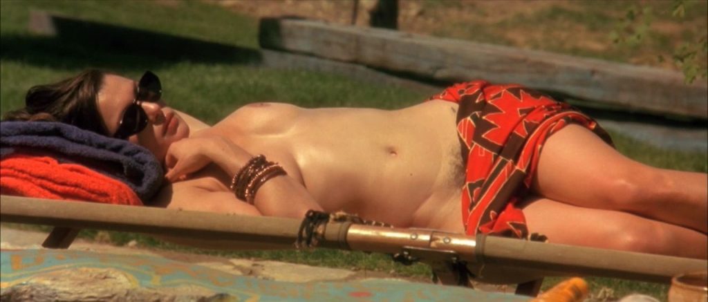 Rachel Weisz is sunbathing topless beside a swimming pool as Liv Tyler steps into the pool in a swimsuit and begins to swim past Rachel before talking to her. Rachel also shows a bit of her bush as she leis on her side with a dress partially draped over her hip. After Rachel and Liv talk for a while, a guy shows up and Rachel sits up before eventually covering up.