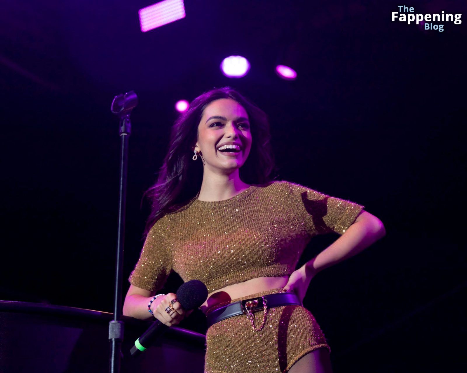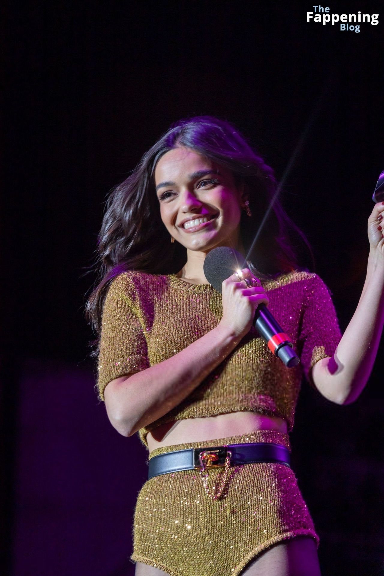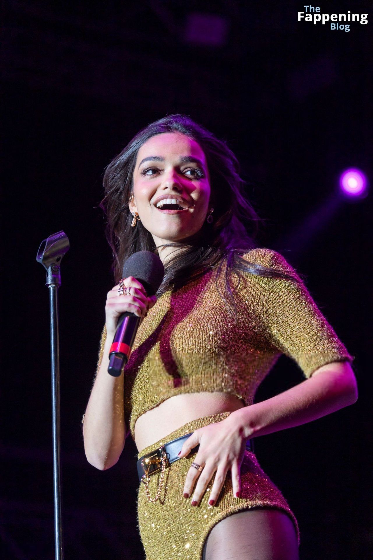 L’actrice et chanteuse américaine Rachel Zegler est photographiée en short sexy et collants noirs lors de l’Elsie Fest à New York.