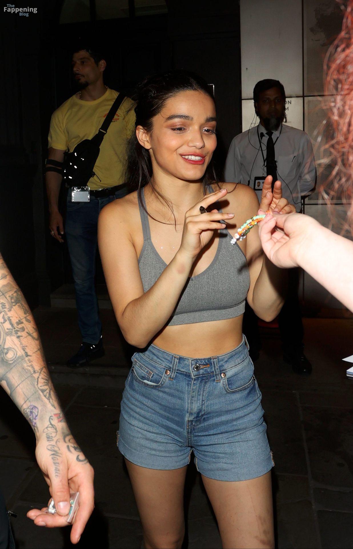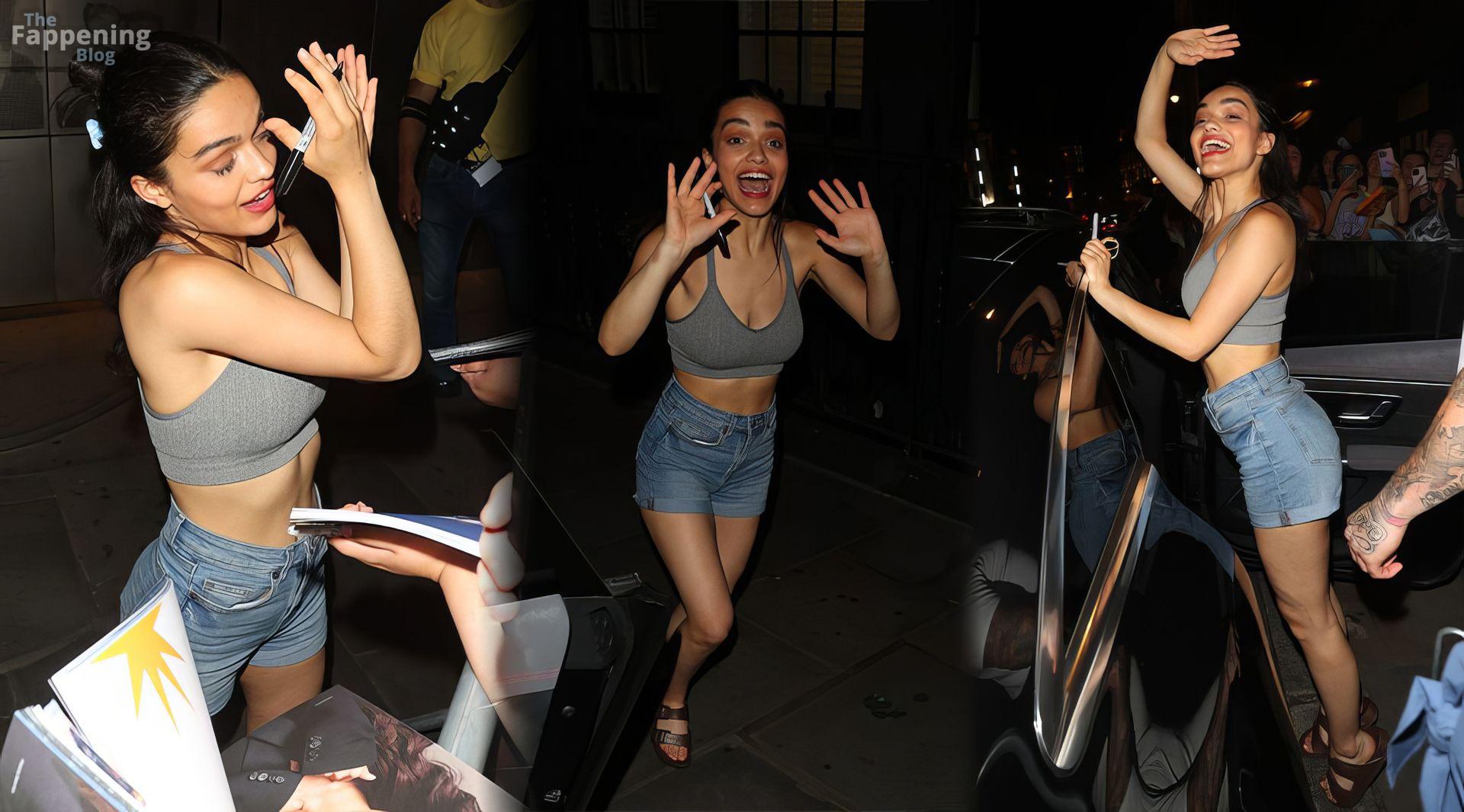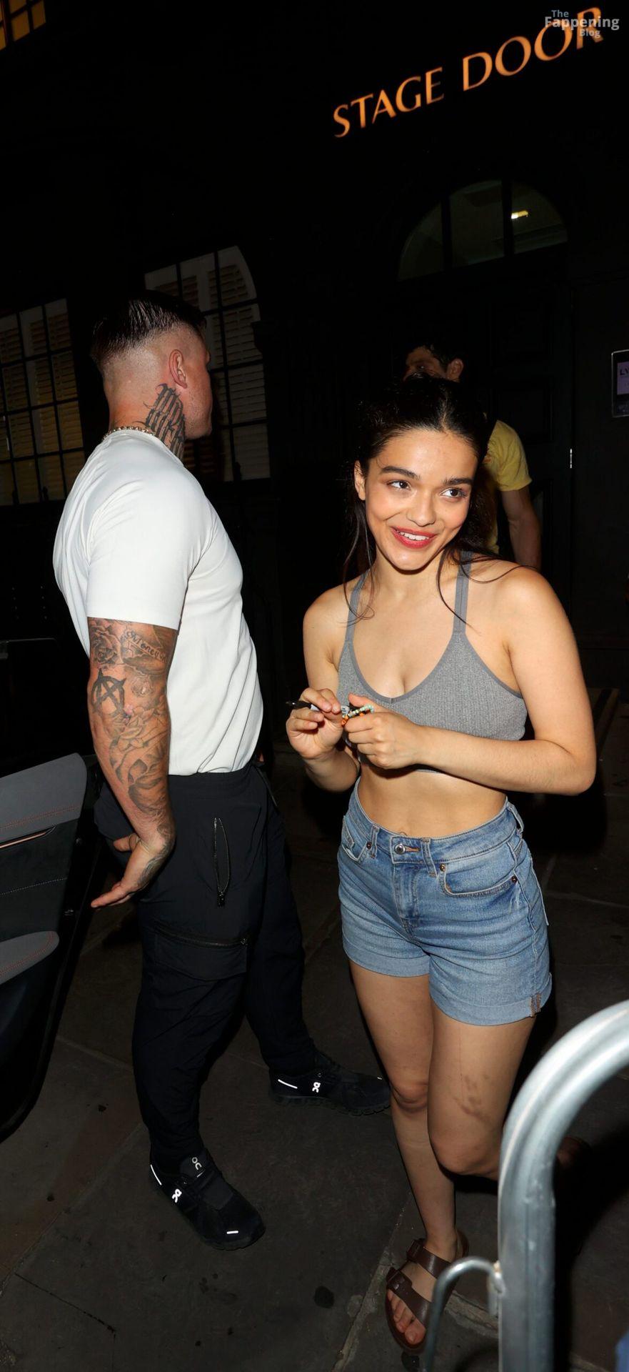 Rachel Zegler affichait un large sourire alors qu’elle quittait le London Palladium après sa performance dans la comédie musicale Evita. L’actrice a gracieusement signé des autographes pour ses nombreux fans qui l’attendaient dehors, s’arrêtant pour poser pour des photos et partager un moment de joie avec la foule.