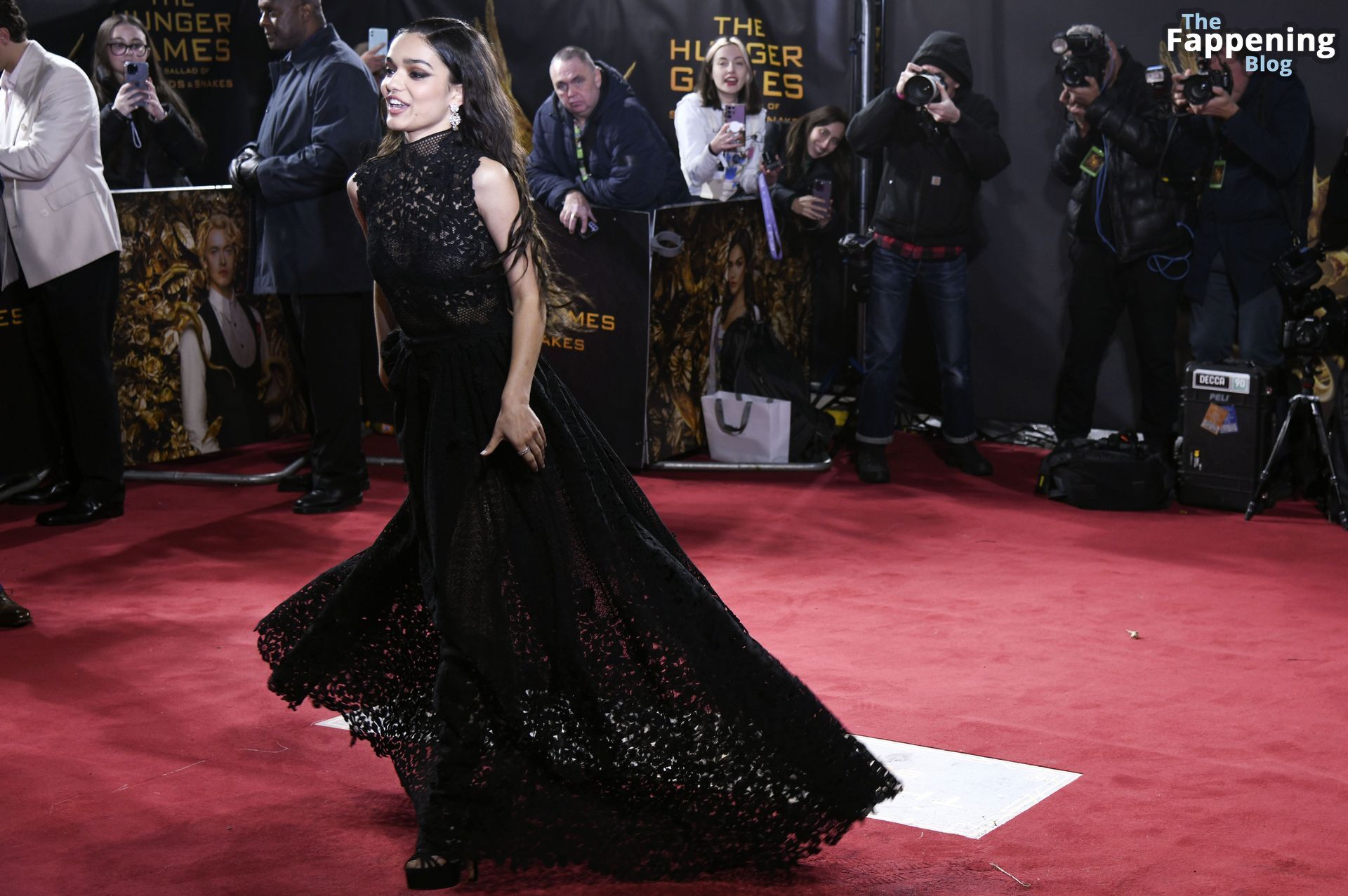 Envolez-vous dans le glamour alors que Rachel Zegler capte tous les regards dans une robe noire éblouissante lors de la première du nouveau film Hunger Games à Londres.
