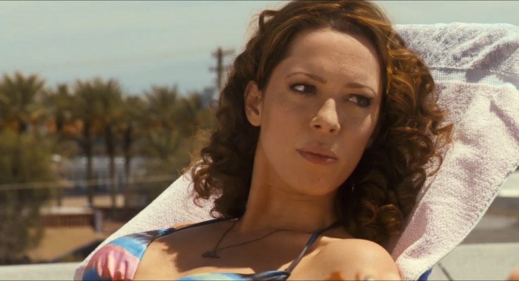 Rebecca Hall est allongée nue sur le ventre dans le lit avec ses fesses nues en vue tandis qu’un homme se réveille à côté d’elle. Nous voyons ensuite l’homme faire plusieurs retours en arrière où il a des relations sexuelles avec Rebecca, montrant ses seins dans ces flashbacks.