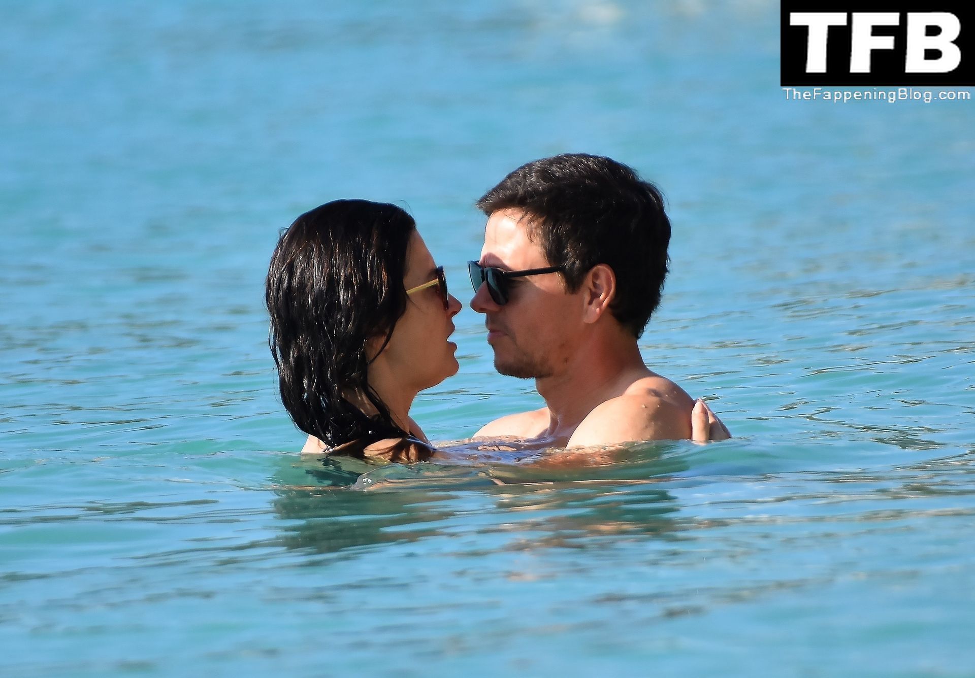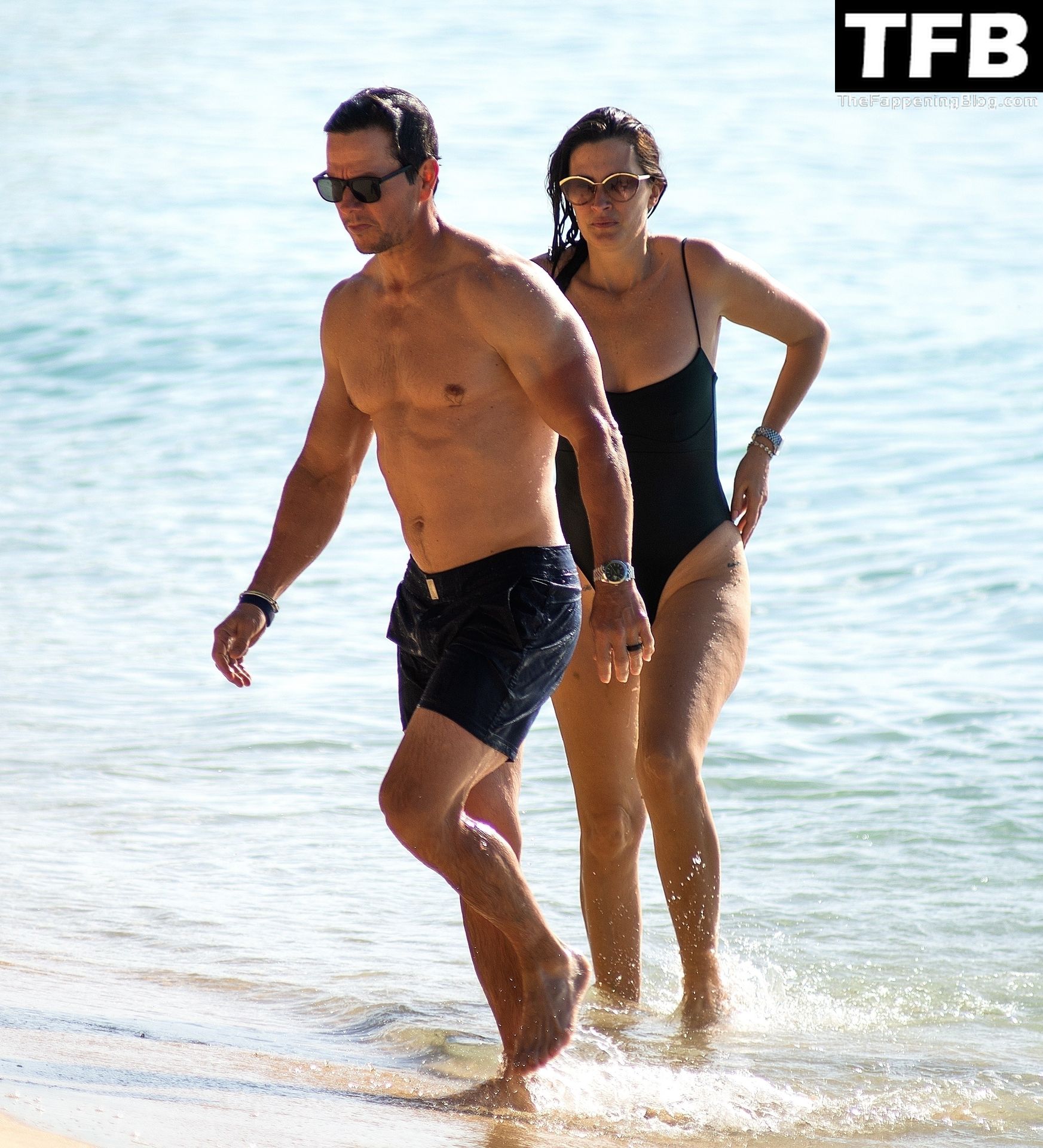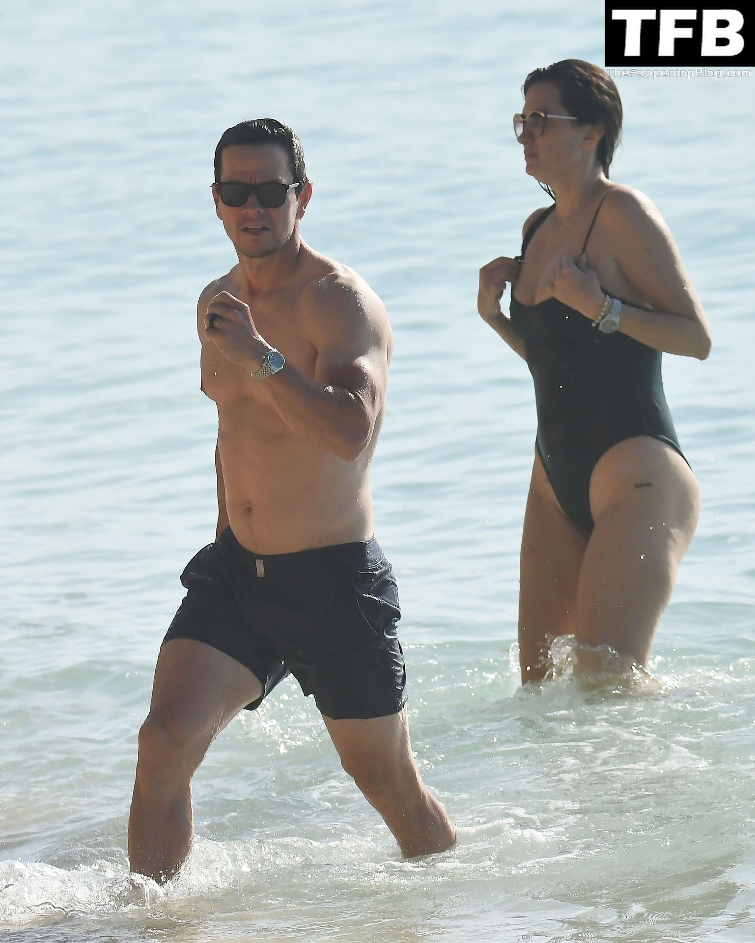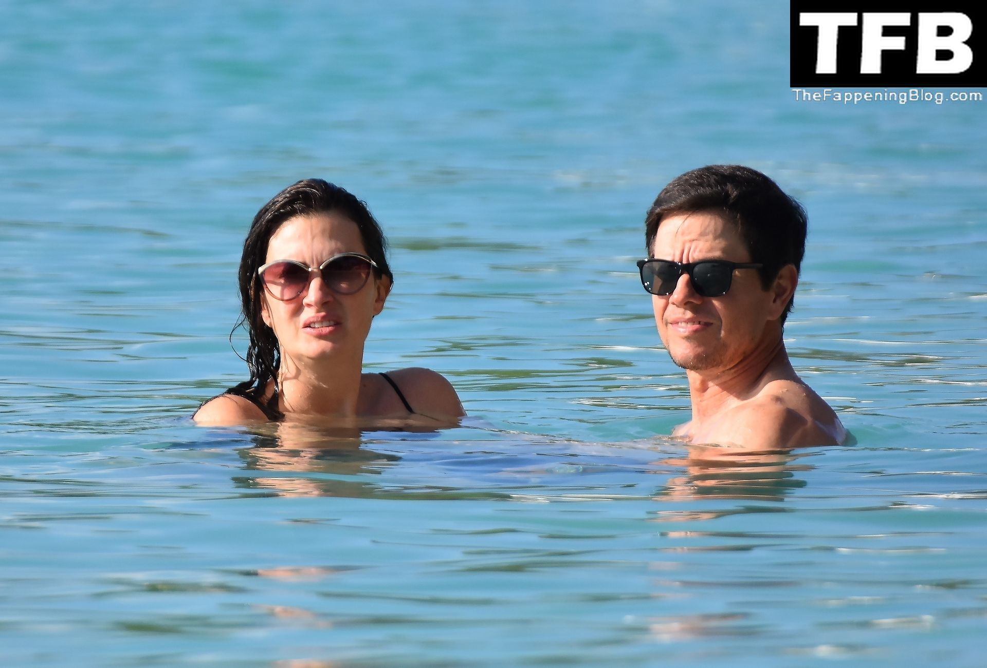 L’acteur américain Mark Wahlberg et sa femme Rhea Durham affichent leur amour et leur affection en se baignant dans la mer lors de vacances en famille sur la magnifique île des Caraïbes de la Barbade, sur la plage de l’hôtel Sandy Lane, le 22/12/2022.