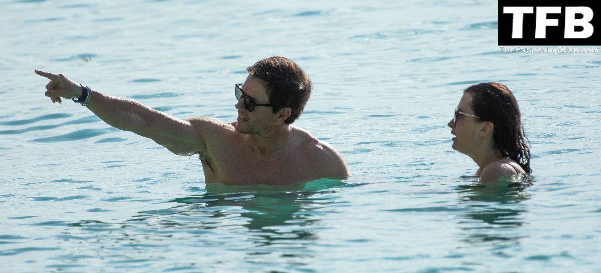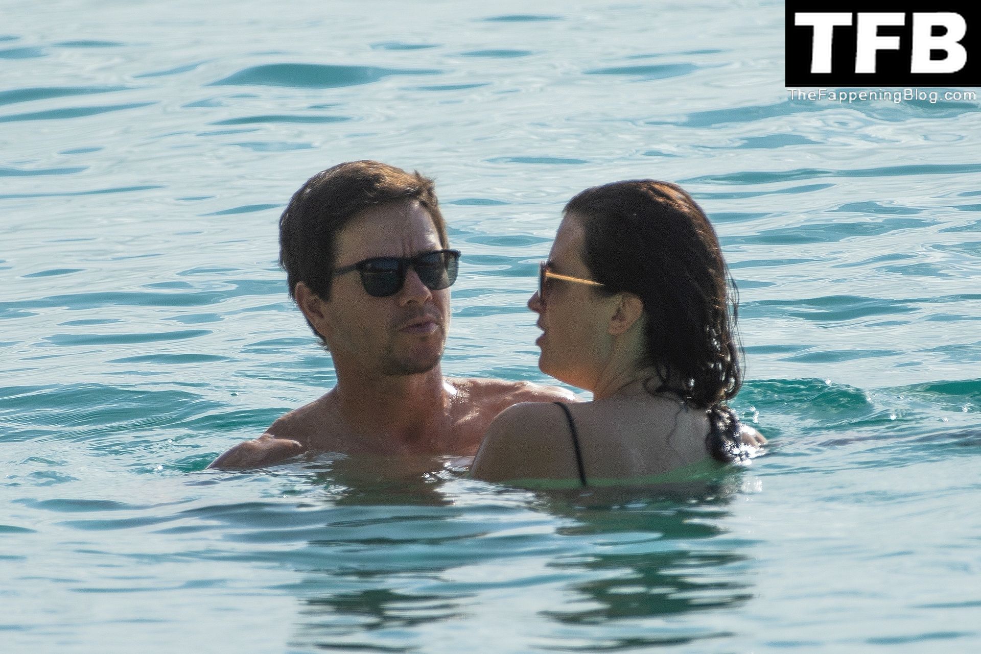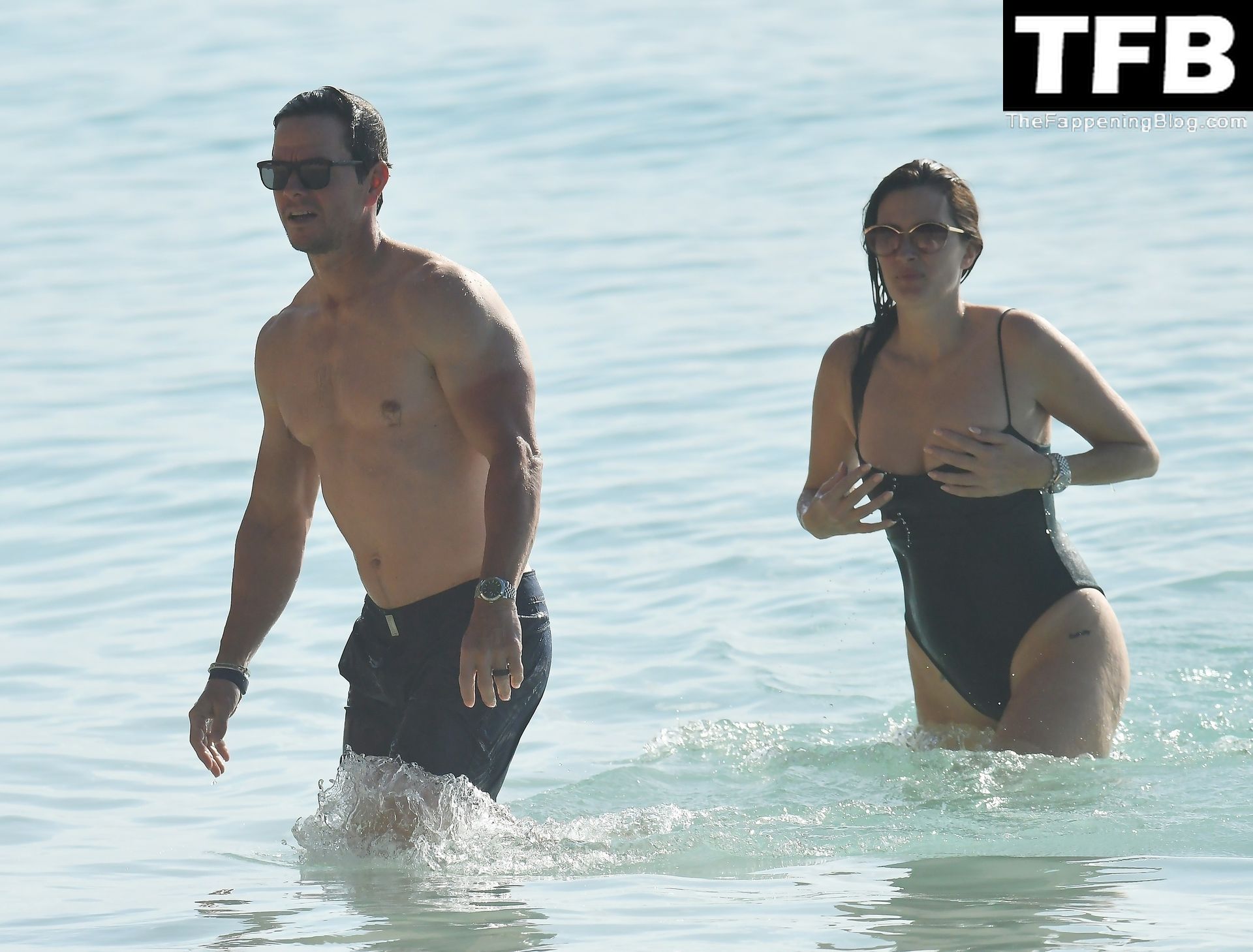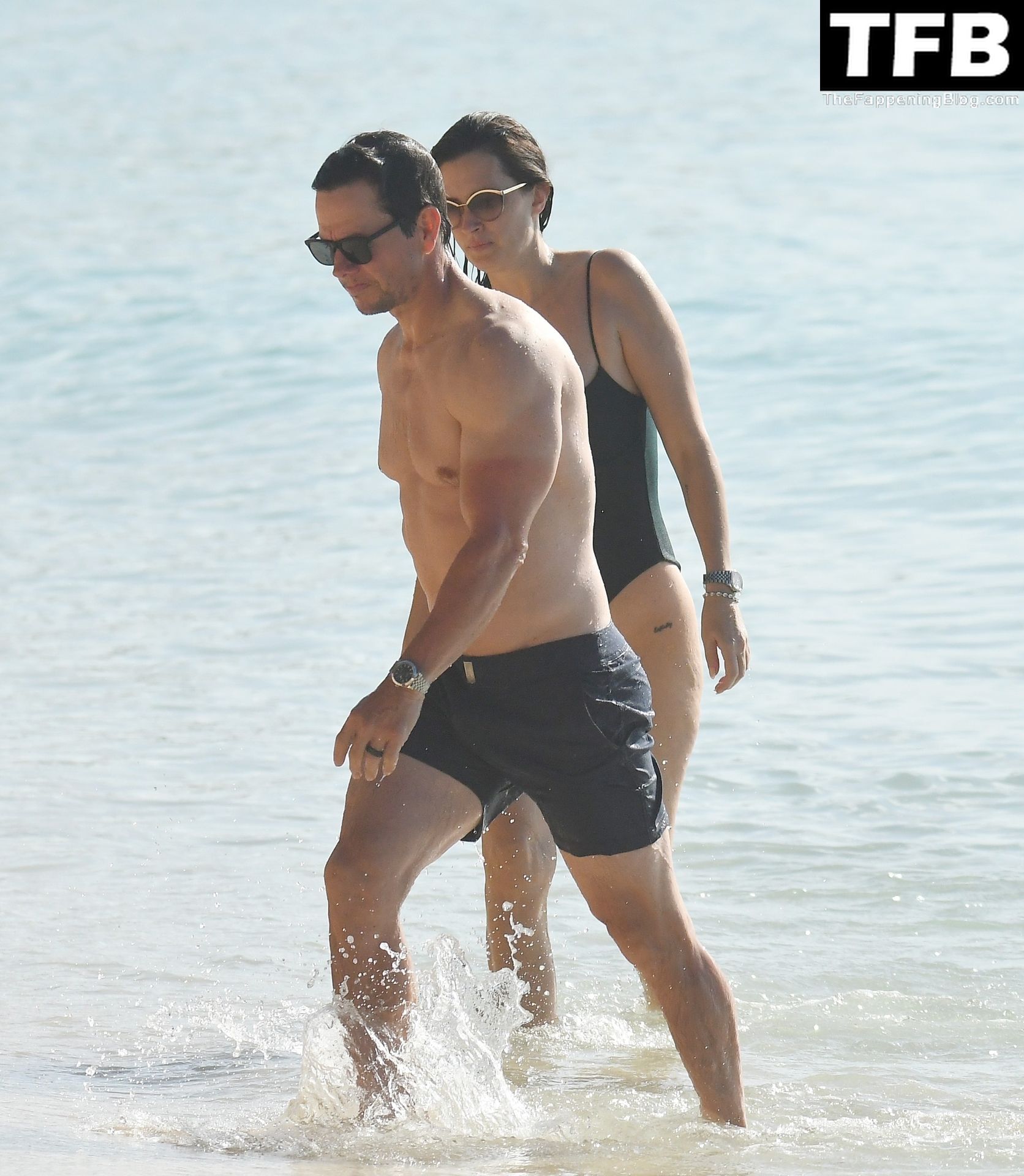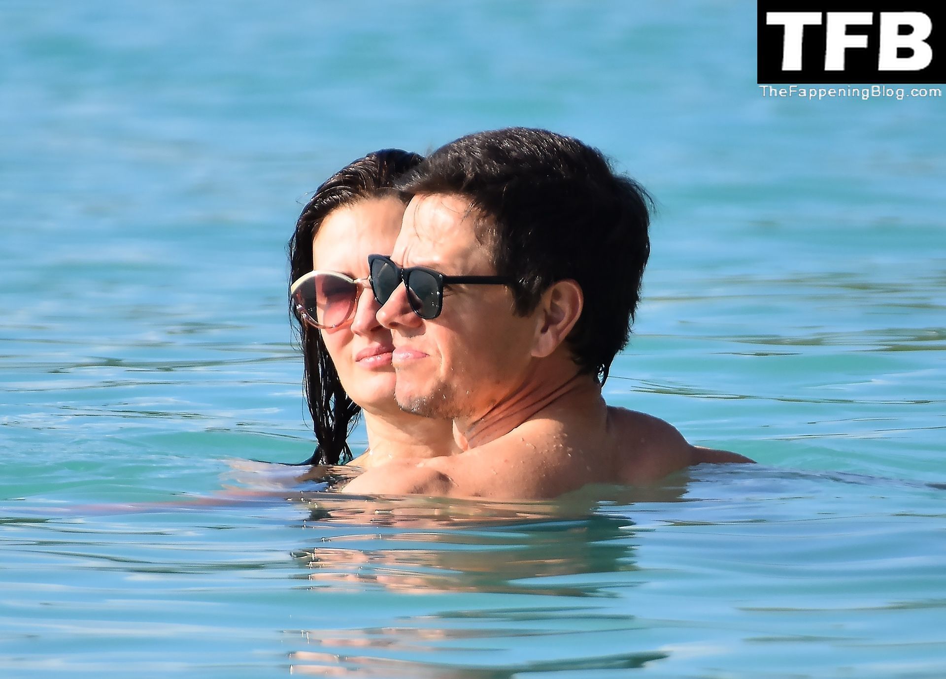 L’acteur américain Mark Wahlberg et sa femme Rhea Durham affichent leur amour et leur affection en se baignant dans la mer lors de vacances en famille sur la magnifique île des Caraïbes de la Barbade, sur la plage de l’hôtel Sandy Lane, le 22/12/2022.